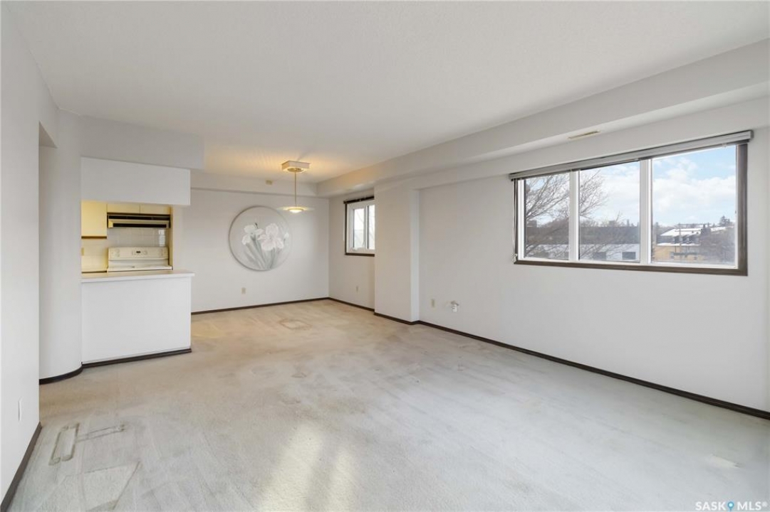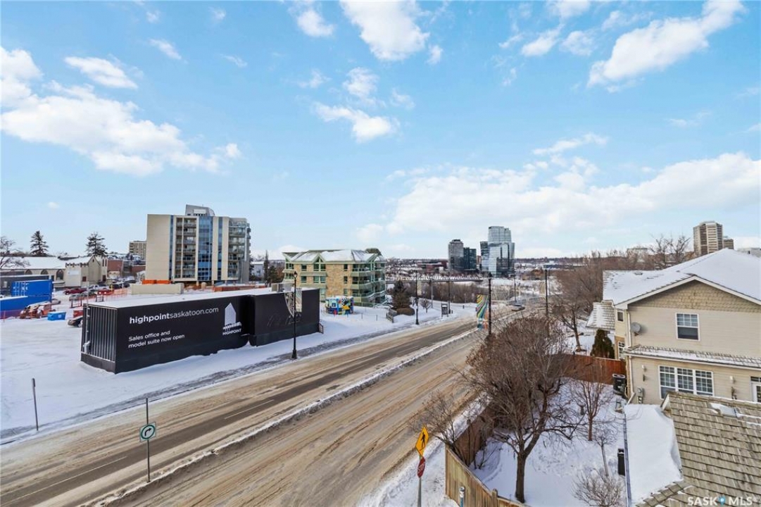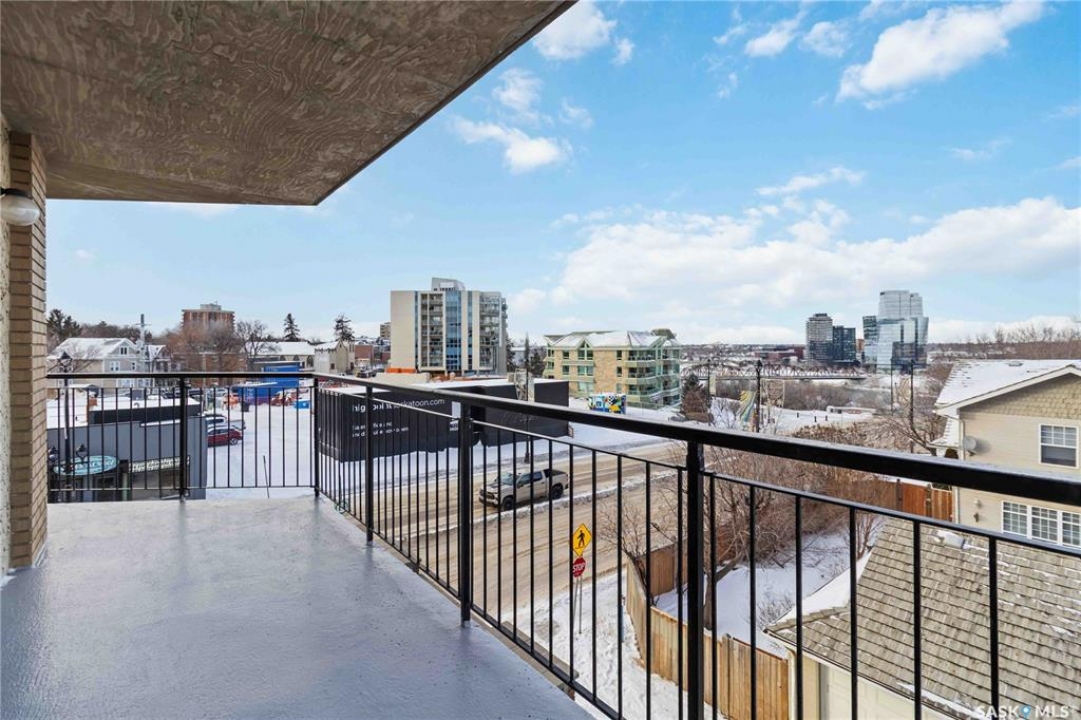 Elevated above the city on the 3rd floor at the top of the iconic Broadway Bridge, this refined two-bedroom, one-bathroom condo offers a rare fusion of sophisticated urban living and serene riverfront beauty. From the moment you arrive, the setting feels exclusive—where the energy of the city meets the calm of Saskatoon's most picturesque natural landscape. Step outside and immerse yourself in one of the city's most coveted neighbourhoods. Downtown's boutiques, acclaimed dining, and charming cafés are just moments away, while Broadway's vibrant pubs, live music venues, and artistic spirit unfold at your doorstep. Inside, the residence is thoughtfully designed for both elegance and comfort. The expansive living area flows seamlessly onto the balcony, creating an inviting space to entertain or unwind while taking in sweeping river and skyline views. A dedicated dining room sets the stage for intimate dinners and memorable gatherings, while the generously sized primary bedroom offers a peaceful retreat. The second bedroom provides flexibility for guests, a home office, or additional living space. The four-piece bathroom is both stylish and functional, and the well-appointed kitchen is perfectly suited for everything from morning espresso rituals to inspired evening meals. Beyond your private suite, residents enjoy access to an amenities room ideal for hosting larger gatherings or connecting with neighbors. This is not simply a condominium; it is a refined lifestyle in one of Saskatoon's most iconic and sought-after locations.