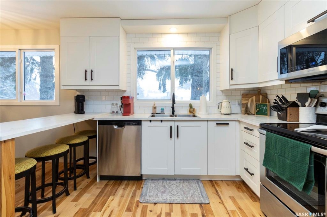 Welcome to this beautifully updated 1,198 sq. ft. bungalow located on a quiet crescent in the heart of family-friendly Brevoort Park. This bright, open-concept main level offers a seamless flow between the living, dining, and kitchen areas, making it ideal for both everyday living and entertaining. Three spacious bedrooms are located on the main floor, along with a full bathroom, providing a highly functional family-friendly layout. The home has seen numerous upgrades throughout and has been exceptionally well maintained, making it truly move-in ready. The fully developed basement adds valuable additional living space and includes a second bathroom and a generous den, which could be converted into an additional bedroom with the addition of a window. Outside, enjoy a gorgeous and private backyard designed for low-maintenance living, featuring artificial turf, stamped concrete patio, stamped concrete/exposed aggregate driveway, and a good sized deck. Upgrades: heated garage (24 x 24) (2024), kitchen, bathrooms, flooring, main floor windows, furnace, shingles (2019), interior paint (2025), a/c (2020), backyard/patio/fence (2023), driveway (2019), newer water heater. Ideally situated close to schools, parks, and amenities, this home offers the perfect blend of quiet crescent living, modern updates, and an established east-side neighbourhood.