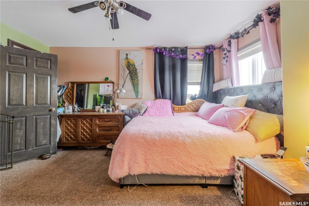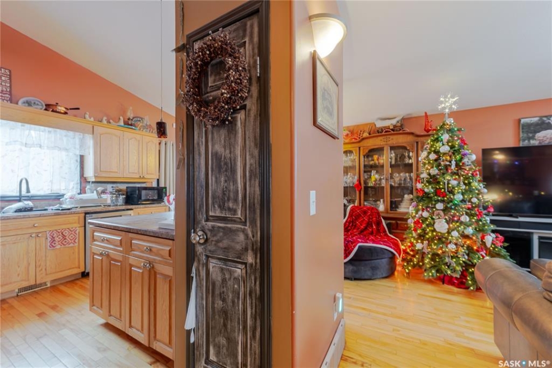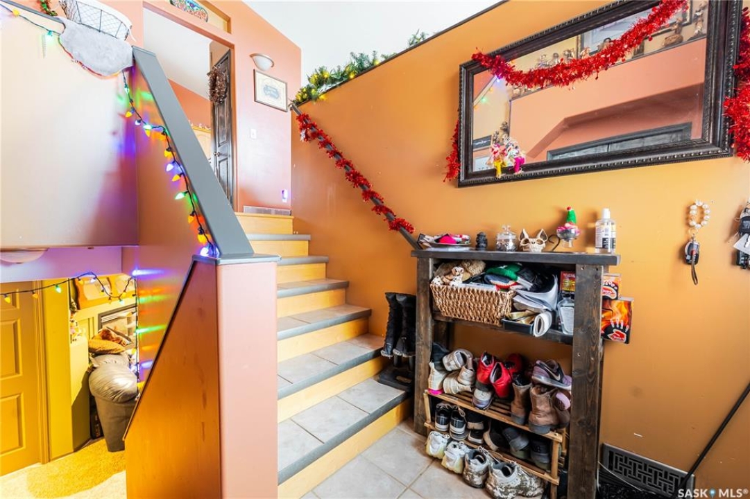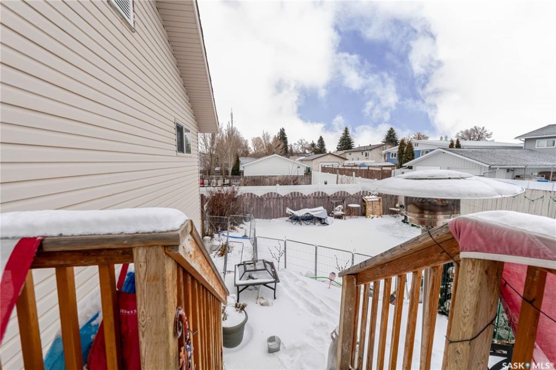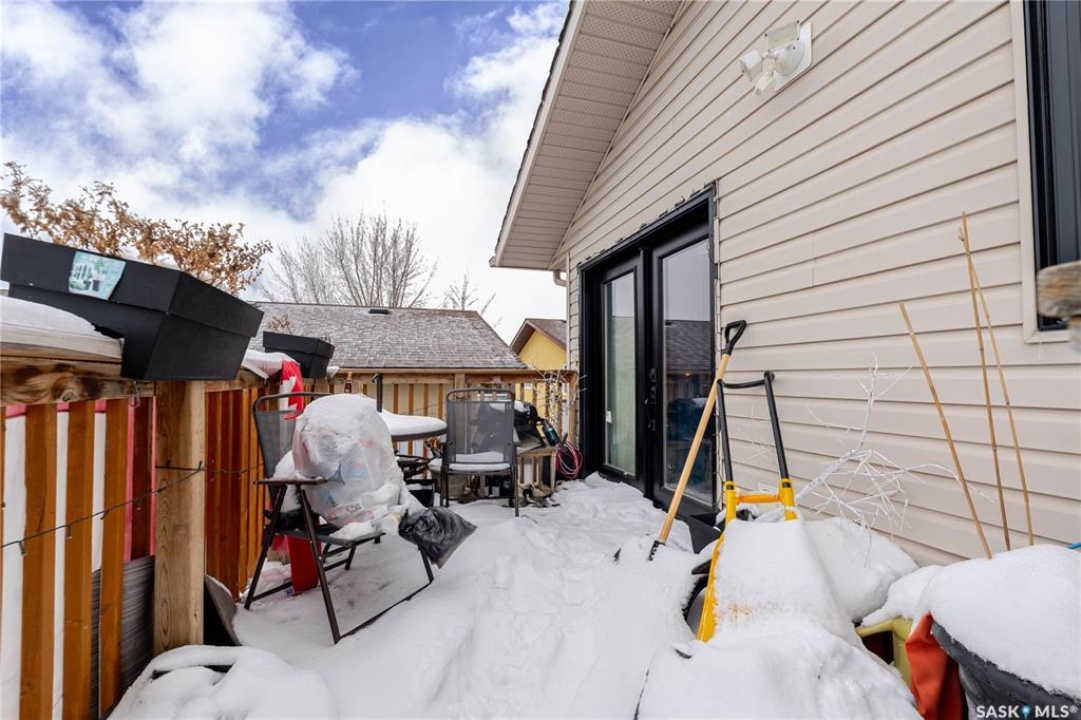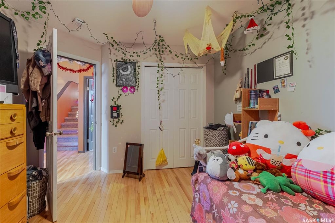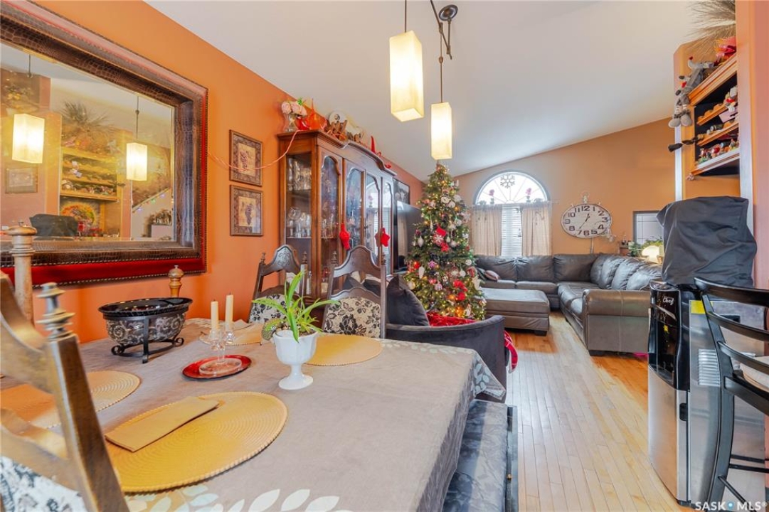 This innovatively designed four-bedroom bi-level with a double attached garage offers outstanding street appeal and a well-planned layout. An inviting tiled entry leads to vaulted ceilings over the main living area and stairwell, creating a bright, open feel. The open-concept living and dining spaces feature arched windows and hardwood floors, while the kitchen offers ample cabinetry, a wine rack, and a functional island—ideal for everyday living and entertaining. Two bedrooms and a four-piece bath complete the main level. The private primary suite occupies its own level and includes a walk-in closet and ensuite. All bathrooms feature in-floor heating for added comfort. The fully developed lower level provides a spacious family room, a flexible area suitable for a small bedroom or office, a three-piece bath, a generous fourth bedroom, and laundry/utility space. Newer garden doors off the dining area lead to a two-level deck overlooking a turfed and zero-scaped backyard—perfect for low-maintenance living. Additional features include central air conditioning, a gas fireplace, underground sprinklers, and low-maintenance landscaping.