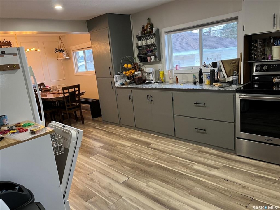 Here is your new property?? This nice bungalow sits just under 1000 sqft but it feels bigger than that when you are inside. The property has newer shingles, a nice heated 18x20 shed, added kitchen cabinets, newer vinyl windows, a greenhouse in the backyard and much more. Situated in the beautiful Town of Gravelbourg which offers a Hospital, grocery store, retail shops, rink, English or French schools, churches, RCMP detachment, Credit Union bank, gas station, bakery and so much more. Please book your private viewing today!!!