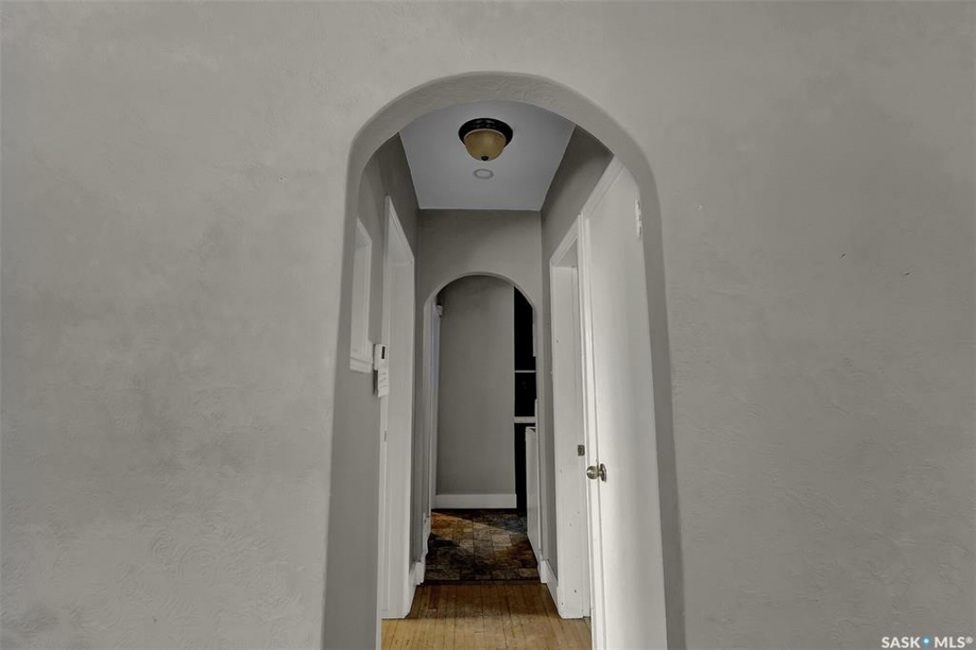With the character style exterior, this two-bedroom bungalow offers a functional, well-laid-out floor plan with a thoughtful blend of contemporary décor and classic character. The home features light grey walls, crisp white trim and doors, original hardwood floors, and some updated windows. The updated kitchen includes modern cabinetry, ample storage, and a clean, practical layout that works well for everyday living. Subtle architectural details, such as curved hallway openings, reflect the charm of the era, while the bright living room adds warmth and natural light. The bedrooms are a good size and the bathroom is updated and bright. The basement is open for development. Situated on a nice-sized yard in a very desirable neighbourhood close to the park and the university, this home is a great opportunity for buyers who value location, comfort, and long-term potential. High efficiency furnace, fridge, stove, washer, dryer and built-in dishwasher included. Great location in the desirable Arnhem Area, convenient to Wascana Park, Candy Cane Park, The Science Centre, University of Regina and public transit. Quick possession is available. You'll want this one on your list!