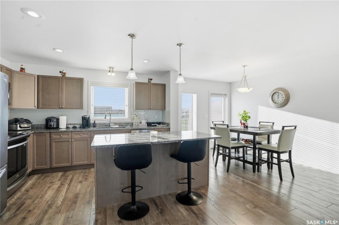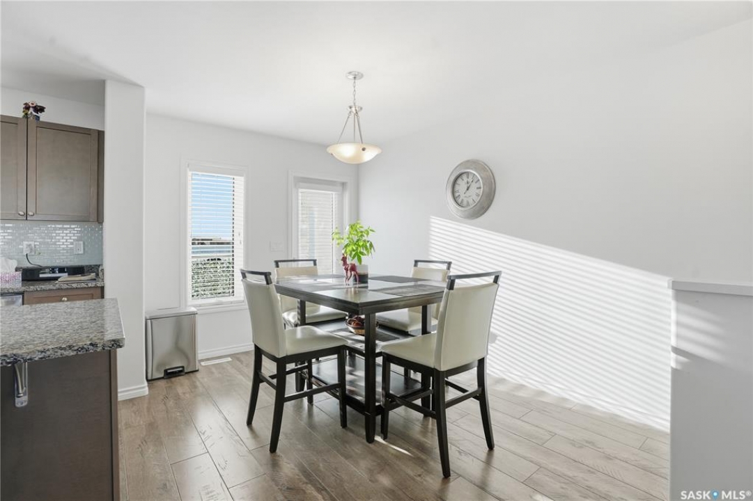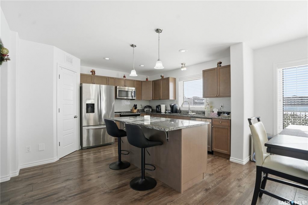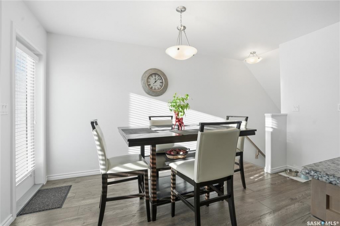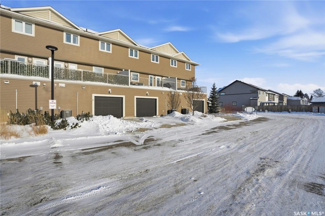 Beautifully maintained 3-bedroom, 3-bath townhouse located in the desirable neighborhood of Kensington. Thoughtfully cared for and move-in ready, this home is an excellent choice for buyer's seeking both functionality and style. Upon entry, you're welcomed by a spacious foyer with direct access to the oversized single attached garage. Measuring an impressive 29'x13', the garage offers exceptional versatility—ideal not only for parking but also as a home gym or additional storage space. There is room to expand the length of the garage if necessary to over 40ft long. The heart of the home is the large kitchen, designed to impress and perfect for cooking and entertaining. It flows seamlessly into a generous living room and the patio doors off the dining area open to a large, south-facing balcony—a wonderful space for outdoor dining, relaxing, or soaking in the sun. Upstairs, you'll find three well-appointed bedrooms and two full bathrooms. The spacious primary bedroom has a walk-in closet and 4 piece bathroom. Located just minutes from shopping centers, grocery stores, restaurants, gas stations, and hardware stores, this home offers unmatched convenience. Schools, parks, and other everyday amenities are also nearby, making this an exceptional opportunity to enjoy comfortable living in one of Saskatoon's newest neighborhoods..