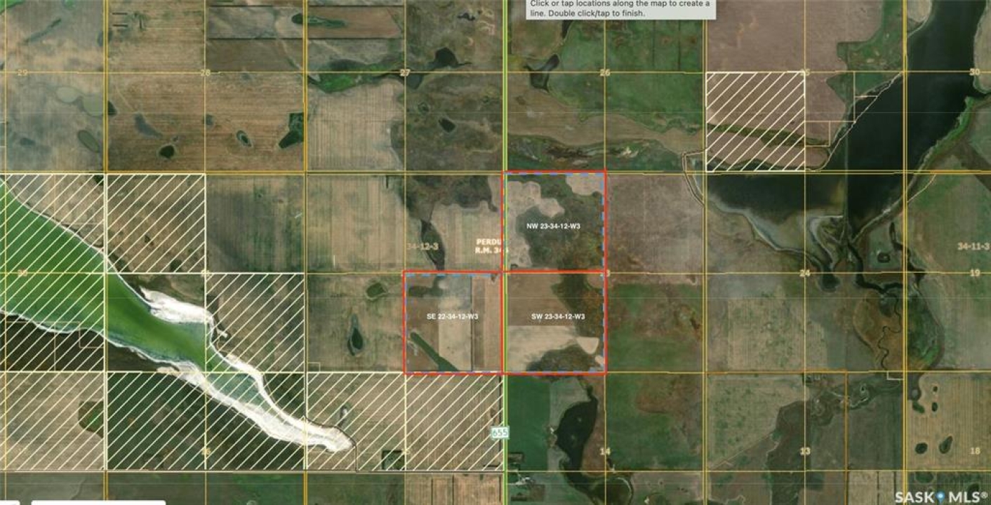 RM of Perdue Farmland - 475.82 Acres | Mixed Farm | 3 Quarters Productive 475.82 acres of MIXED FARMLAND for sale in the RM of Perdue No. 346, located approximately 18 km south of Perdue along Hwy 655 and about 50 minutes west of Saskatoon. This LAND-ONLY offering consists of three quarters: SE 22-34-12-W3 assessed at $360,000; SW 23-34-12-W3 assessed at 251,800; and NW 23-34-12-W3 assessed at $180,500. The land features a strong mix of cultivated cropland and pasture/native grass, suitable for grain, mixed, or cattle operations. SE 22 is the premium CULTIVATED QUARTER, SW 23 offers a balanced CROPLAND/PASTURE MIX, and NW 23 is primarily pasture-based. Flat topography with some bush and sloughs typical of the area. Detailed information package available. Mineral rights not included. Possession TBD. DIRECTIONS: 18 KM south of Perdue on HWY 655; OR 21 KM north of Harris on HWY 655