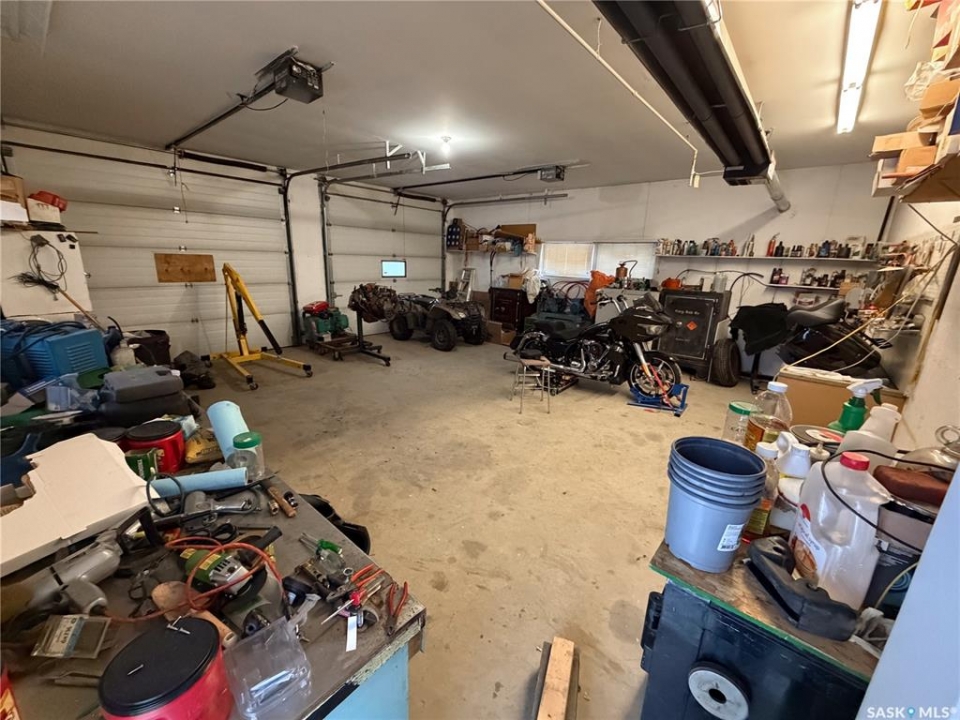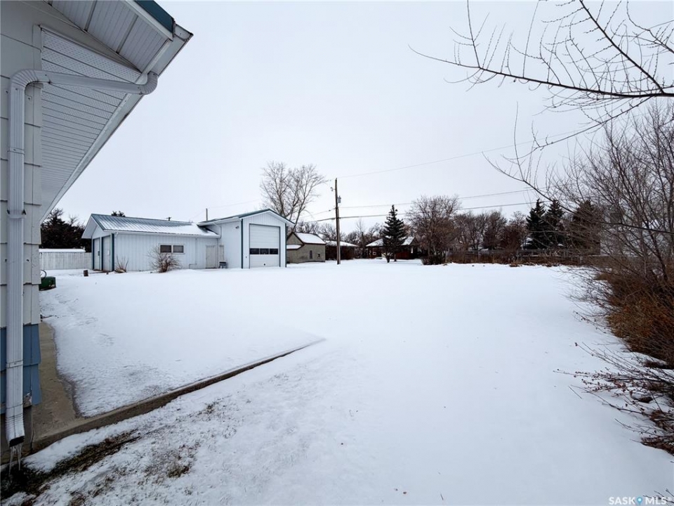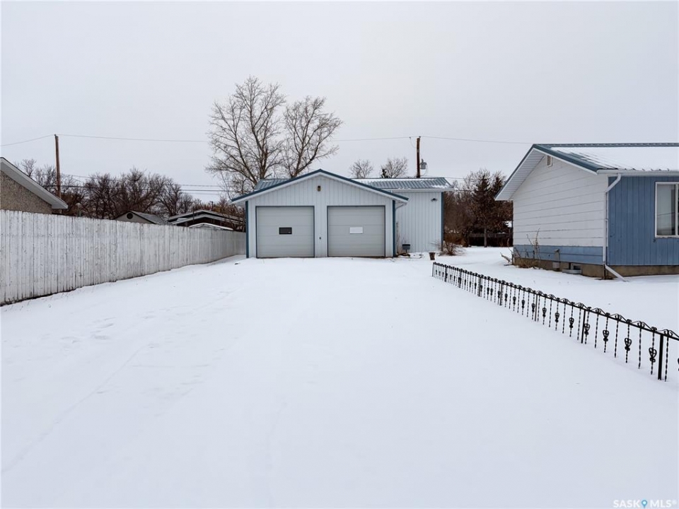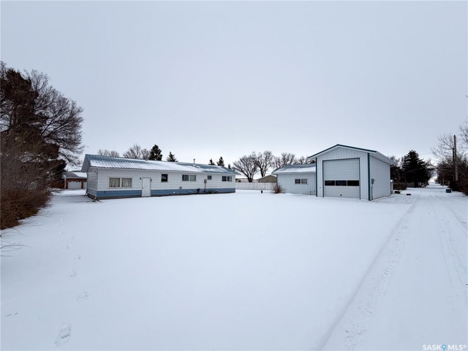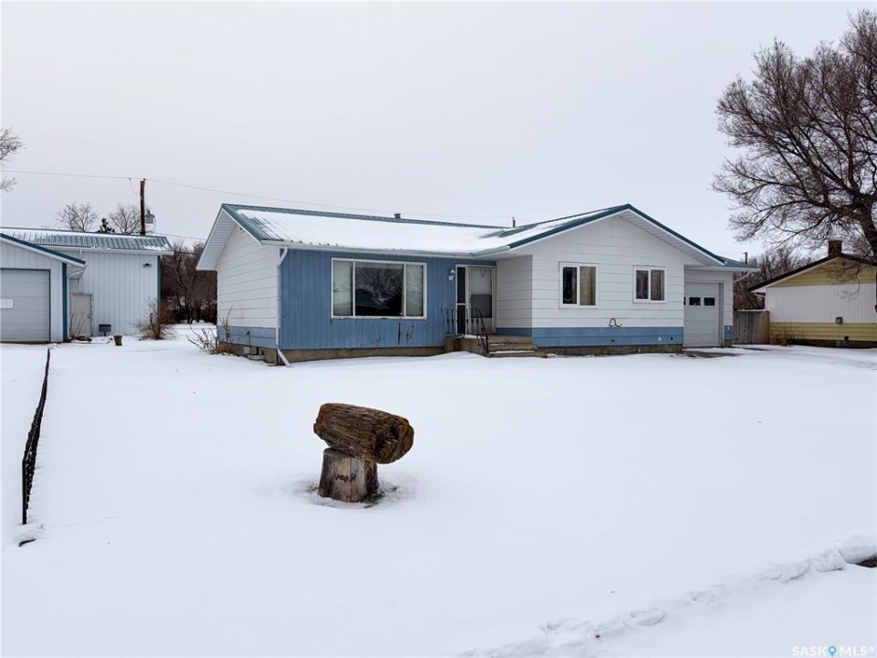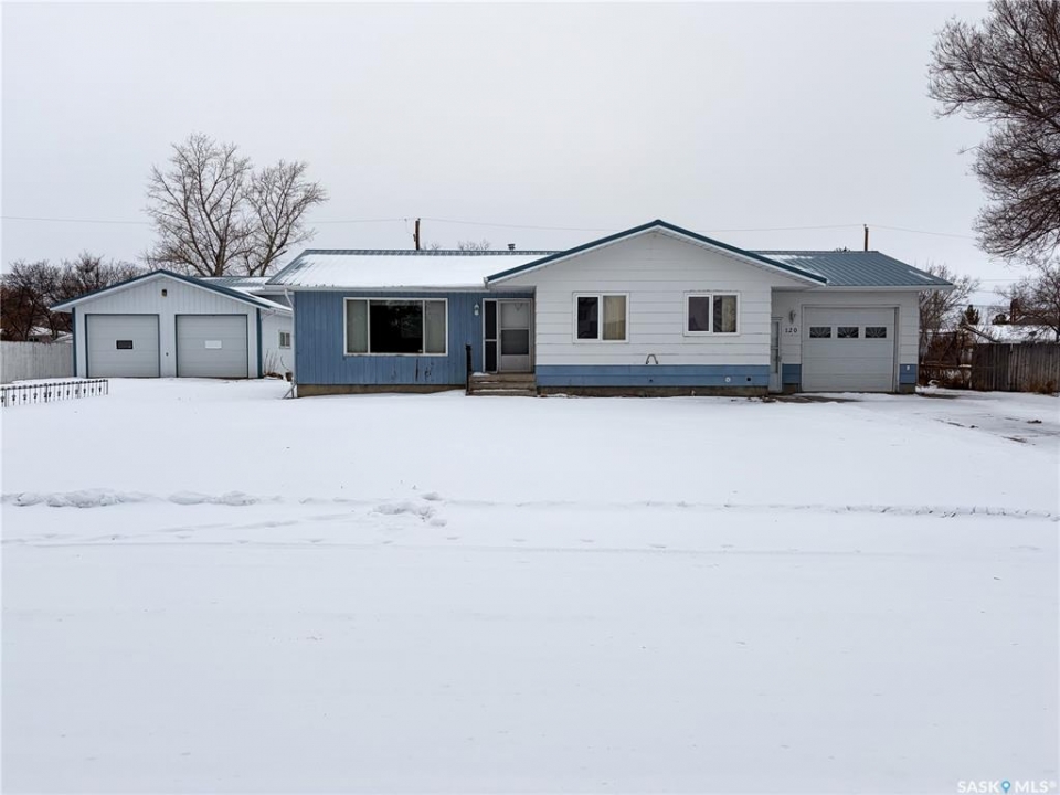 Welcome to 120 6th Street E in the welcoming community of Ponteix — a well-cared-for 1,628sqft bungalow with loads of practical features and room to grow. Sitting on a 9,600sqft lot with lane access, this home offers incredible garage and workshop space, plus multiple entries for added convenience. Step inside the front door and you're welcomed into a bright living room with triple-pane windows that flood the space with natural light. Just ahead is access to the two main floor bedrooms, each with comfortable layouts, 4-piece bathroom and a well-appointed main floor laundry room with a handy utility sink. To the right of the entry, the dining area features a built-in for display or storage, while the adjoining kitchen offers warm oak cabinetry and flows seamlessly to the back entry, which connects to the heated and insulated single attached garage(16x26). The basement is fully developed and ideal for extended family living, guests, or hobbyists. There's a family room with a cozy gas fireplace, a 4-piece bathroom, a dedicated cold storage room, and two additional rooms that can serve as a den, office, or extra bedrooms (buyer to confirm egress). There's also a utility room and loads of storage space. What truly sets this property apart is the garage setup: in addition to the attached garage, there's a heated and insulated double detached garage(26x26) with a long gravel drive from the street, and a massive unheated/uninsulated RV garage(16x40). The RV garage offers significant overhead storage, a manual door, 100 amp panel, and space for your largest toys or workshop plans. This home has been lovingly maintained and updated with key features such as a metal roof (approx. 2015), on-demand water heater (approx. 2020), HE furnace and water softener. A solid property with generous space inside and out — don't miss your chance to own a great home in the heart of Ponteix! Home sold is AS-IS condition, what you see is what you get.