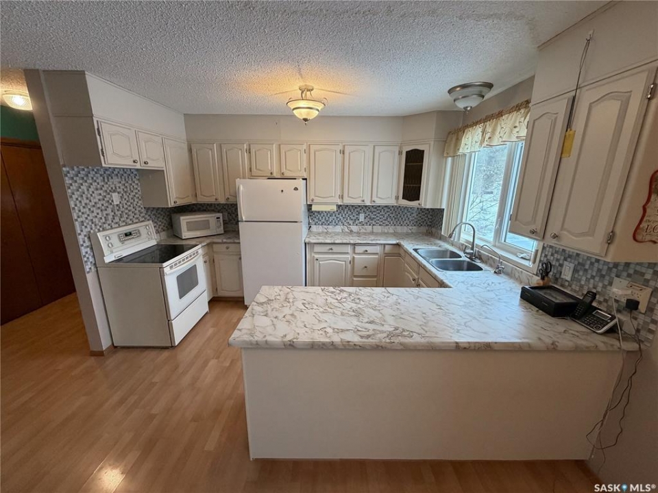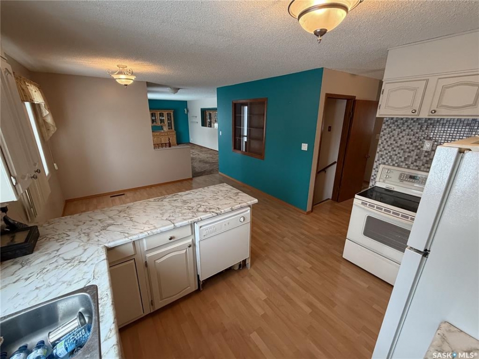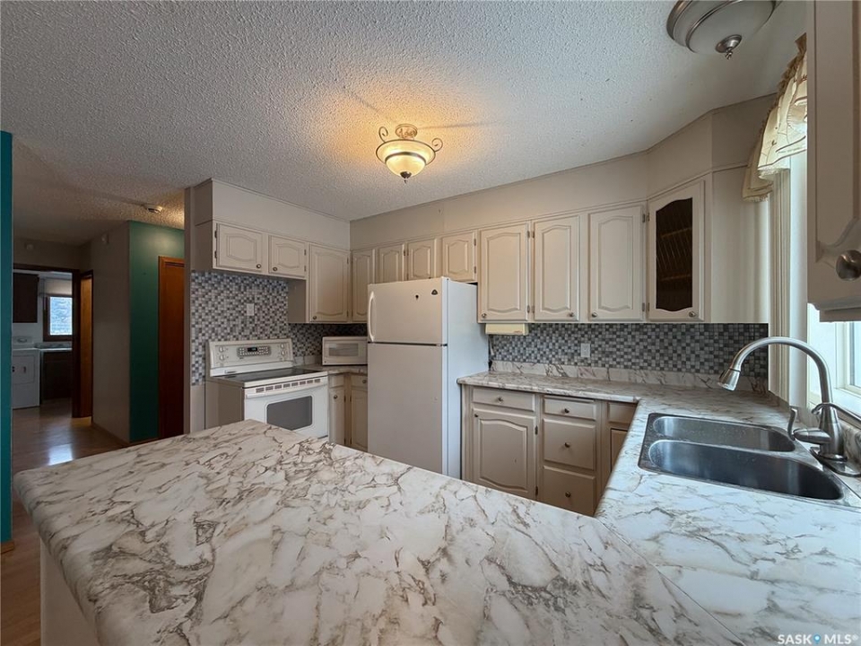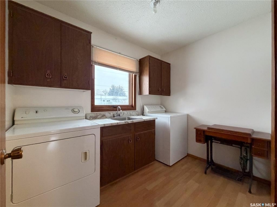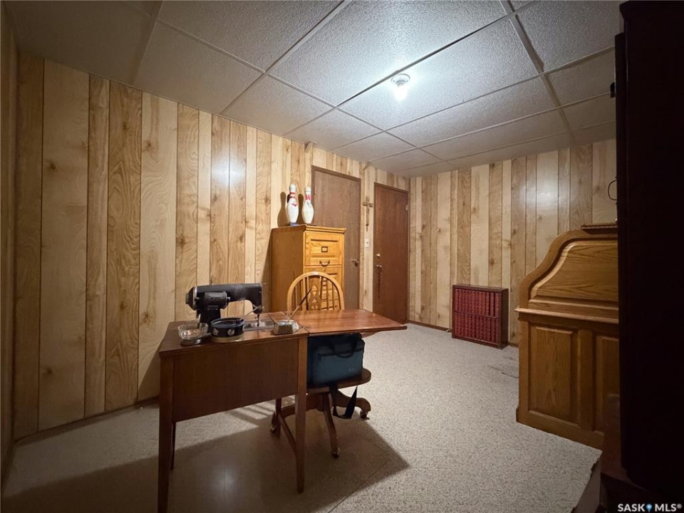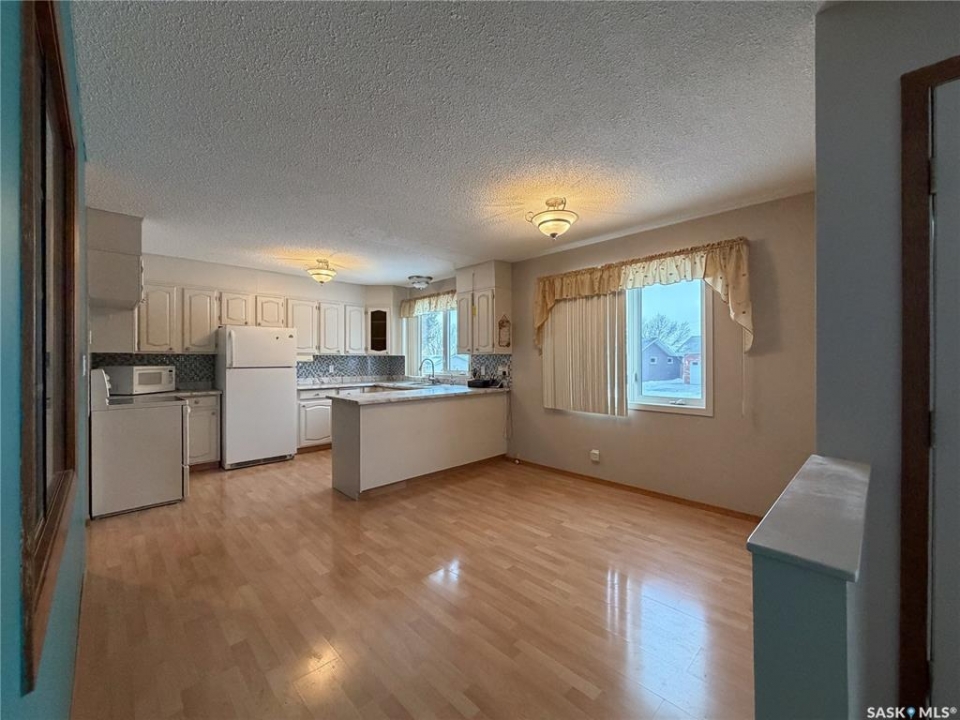 Welcome to 120 6th Street E in the welcoming community of Ponteix — a well-cared-for 1,628sqft bungalow with loads of practical features and room to grow. Sitting on a 9,600sqft lot with lane access, this home offers incredible garage and workshop space, plus multiple entries for added convenience. Step inside the front door and you're welcomed into a bright living room with triple-pane windows that flood the space with natural light. Just ahead is access to the two main floor bedrooms, each with comfortable layouts, 4-piece bathroom and a well-appointed main floor laundry room with a handy utility sink. To the right of the entry, the dining area features a built-in for display or storage, while the adjoining kitchen offers warm oak cabinetry and flows seamlessly to the back entry, which connects to the heated and insulated single attached garage(16x26). The basement is fully developed and ideal for extended family living, guests, or hobbyists. There's a family room with a cozy gas fireplace, a 4-piece bathroom, a dedicated cold storage room, and two additional rooms that can serve as a den, office, or extra bedrooms (buyer to confirm egress). There's also a utility room and loads of storage space. What truly sets this property apart is the garage setup: in addition to the attached garage, there's a heated and insulated double detached garage(26x26) with a long gravel drive from the street, and a massive unheated/uninsulated RV garage(16x40). The RV garage offers significant overhead storage, a manual door, 100 amp panel, and space for your largest toys or workshop plans. This home has been lovingly maintained and updated with key features such as a metal roof (approx. 2015), on-demand water heater (approx. 2020), HE furnace and water softener. A solid property with generous space inside and out — don't miss your chance to own a great home in the heart of Ponteix! Home sold is AS-IS condition, what you see is what you get.