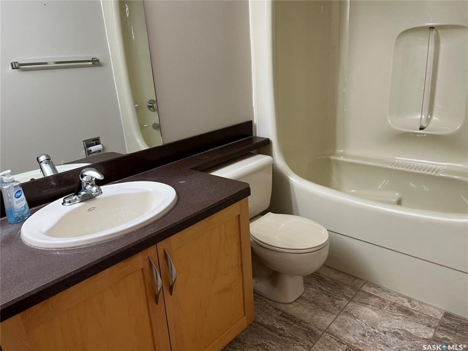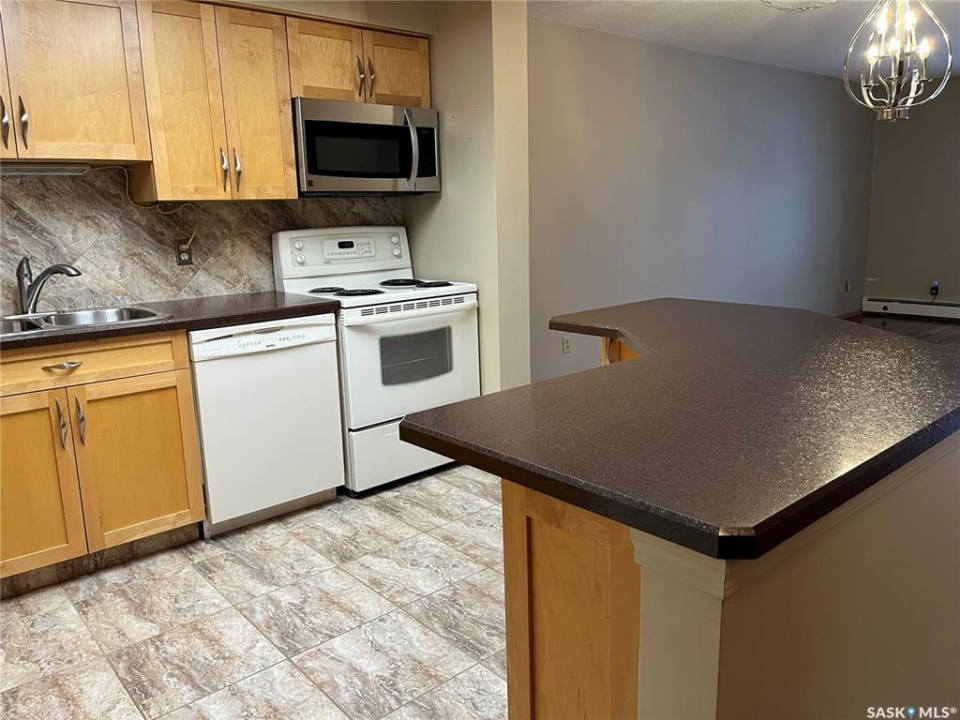 This wonderfully upgraded apartment style condo is full of recent upgrades of maple cabinets in kitchen & baths, ceramic tile & laminate flooring. Open floor plan with island style kitchen open to dinette & living room that features patio doors to balcony with outdoor storage room. Good sized bedroom, NE windows & 2 pce ensuite.The den/office/guest room has French Doors to the main area There is storage galore with good sized Laundry/Utility room & yet another storage room off the hallway, 5'5"x4'10", and a keyed storage room on this floor as well. Feature morning twilight through the main living area & you living your best life in the Spring & Summer on your balcony whilst birds chirp & twitter happily amongst the trees away from the traffic, noise & dust. There is an Amenities Room for social gatherings & Happy Hour, a parking stall very close to the NW building entrance & 16 visitor parking spaces. This property will not disappoint.
