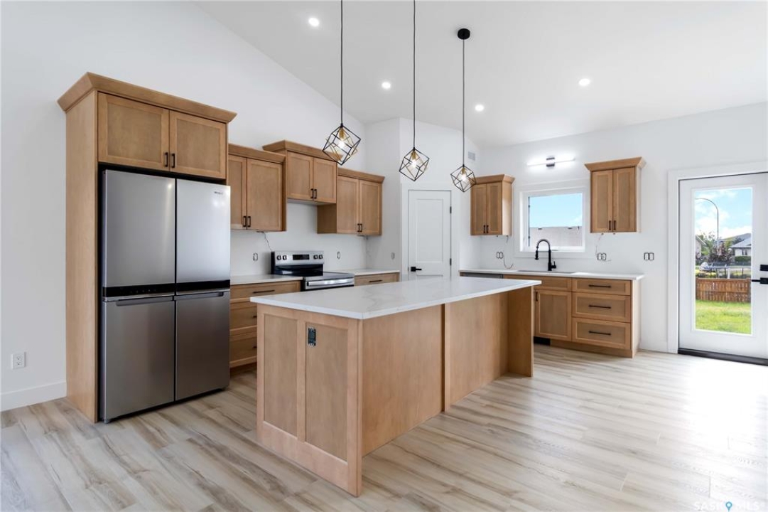 A Fresh Start in Waldheim — Where Space, Comfort & Small-Town Peace Come Together Just 30 minutes from Saskatoon, tucked into the growing and welcoming community of Waldheim, this beautifully crafted 1,399 sq ft bungalow by Armour Homes LTD is ready to become someone's next chapter. Whether you're dreaming of more space, a calmer pace, or a home that finally feels like you, this one delivers both comfort and elegance in every detail. The moment you step inside, the home feels open, uplifting, and thoughtfully designed. Soaring 13-foot ceilings in the kitchen and living area instantly create a feeling of luxury and openness, while the 9-foot ceilings in the bedrooms bring softness and coziness—offering the perfect balance of sophistication and comfort. Large windows allow sunlight to move through the space beautifully, creating a warm and inviting atmosphere from morning coffee to evening unwinding. Modern finishes like quartz countertops, stainless steel appliances, luxury vinyl plank flooring, and porcelain tile elevate the home while keeping maintenance easy and stress-free. Brand new washer and dryer will be added or a credit of $2000 for new washer and dryer. With three spacious bedrooms and two full bathrooms, there's room to grow, host, or simply enjoy life comfortably. The generous lot offers space for gardens, fireside evenings, pets, kids—or simply room to breathe. The concrete driveway is already complete, and the builder offers the option to finish the basement and deck so the space can evolve with you. Living here means enjoying the quiet charm of small-town living without giving up convenience. Waldheim offers community, safety, fresh air, and room to live the lifestyle you've been imagining—while Saskatoon remains an easy drive when needed. If you've been searching for a home that feels new, inspiring, and deeply comfortable — this one is worth experiencing in person. ?? Contact your agent today to schedule a private showing .