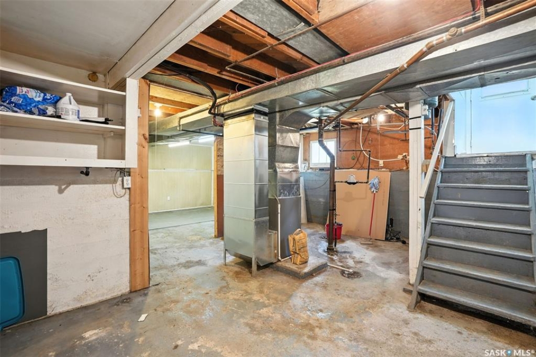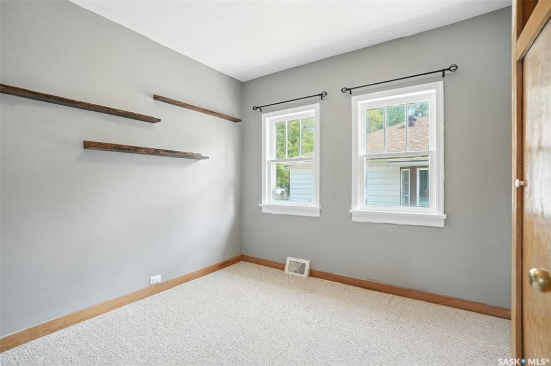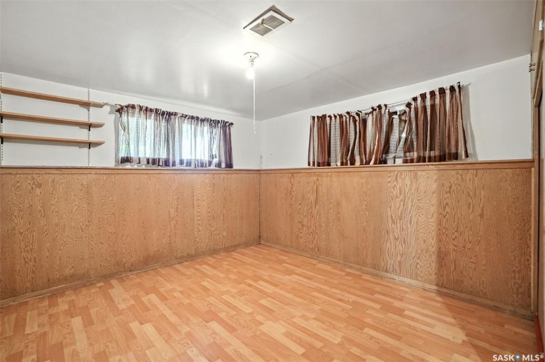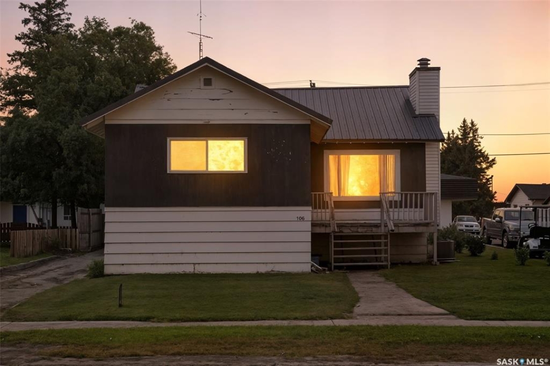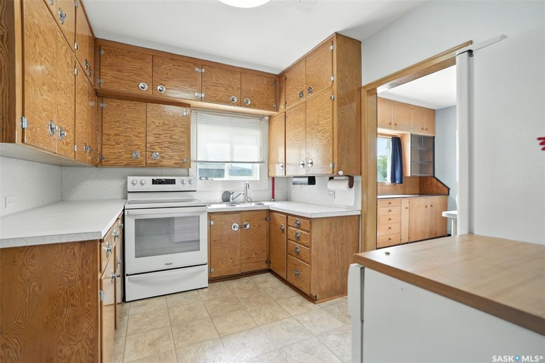 This well kept bungalow in the quiet town of Nokomis is move in ready and priced to sell! Step in the front door to a foyer accessing hall to kitchen, living room, bathroom and 2 bedrooms. A spacious living room is L shaped to include dining area with built in mid century storage. Kitchen is compact with plenty of cupboards plus fridge, stove and portable dishwasher. Laundry is in mudroom off back porch. There's a side entrance accessing the basement or mudroom. Updated back deck accesses unheated back porch to mudroom. Basement is partially finished with workout area, bedroom and cold storage room Furnace is HE with central air, and water heater is HE on demand. Mature yard has perennial beds, and detached garage has additional workspace/storage area. Nokomis has a medical clinic, bar, drugstore, grocery and hardware stores, Co-op Agro, restaurants, K-8 school, rec center and more!! Call today for your viewing appointment!