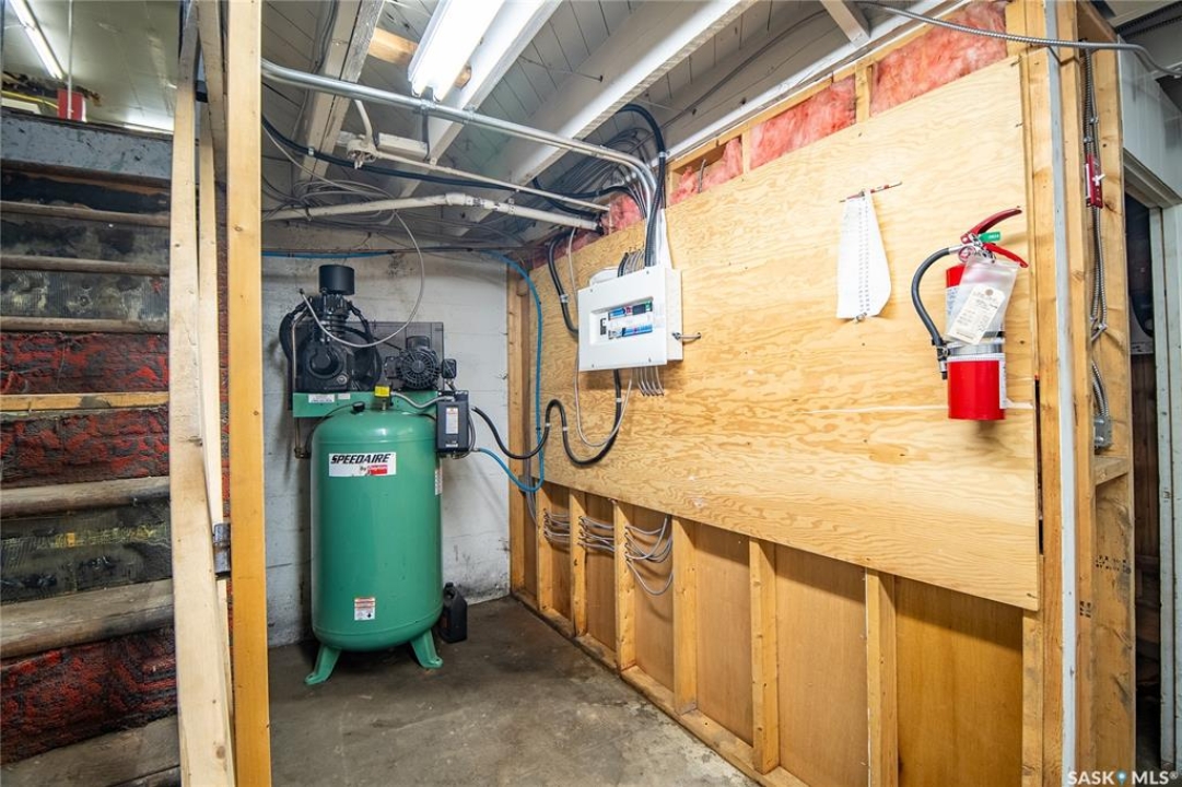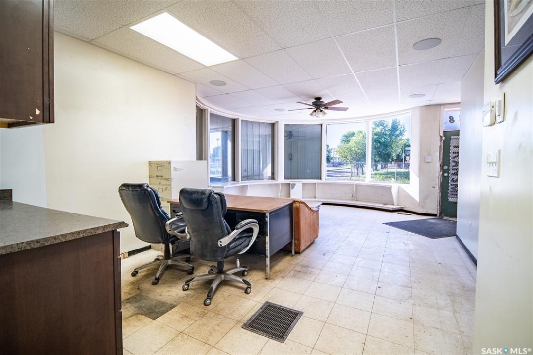 An exceptional location to launch or expand your business. Situated along busy 6th Ave, this versatile commercial building offers outstanding visibility and endless potential — ideal for automotive services, detailing, small-scale auto sales, or a variety of entrepreneurial ventures. The property features a fully fenced compound with ample parking for multiple vehicles, making it perfect for operations that require outdoor storage or customer parking. Step inside and you'll appreciate the bright bay windows that enhance the reception area, creating a welcoming first impression. The interior includes a office space, a bathroom, and a well-equipped shop complete with a car lift, compressor, and indoor parking for up to three vehicles with overhead heating and 3 -10x10 doors, providing great versatility. . A basement level provides valuable additional storage space. A strong location, flexible layout, and ready-to-use shop amenities make this a standout opportunity for the right business. (Equipment not guaranteed to be in working order)