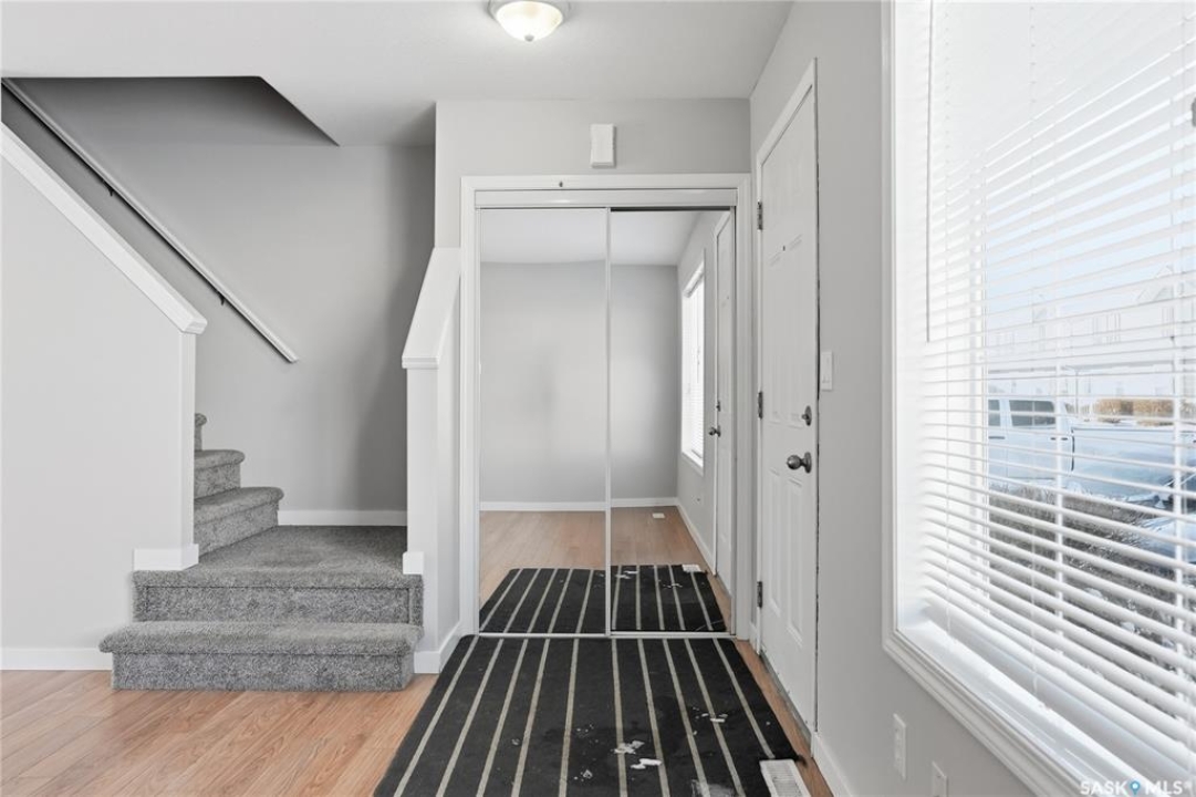 Welcome to this well-kept 2-storey townhouse offering 1,080 sq ft of functional living space in the sought-after Silverspring neighbourhood. This 3-bedroom, 1.5-bath unit features spacious bedrooms with oversized closets, a full 4-piece bathroom upstairs, and a convenient 2-piece bath on the main floor. The finished basement adds valuable extra living space with a cozy family room or home office, and laundry area, and plenty of storage. Located in, desirable well-maintained complex with excellent access to shopping, schools, the University of Saskatchewan, river trails, and the Forestry Farm and just a short drive to the downtown business core. Ideal for investors or buyers looking for a turn-key property with all the work already done. Includes two electrified parking stalls conveniently located right outside the front door.
