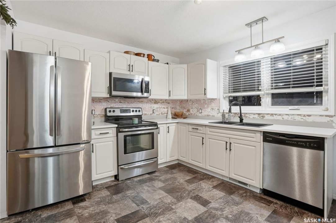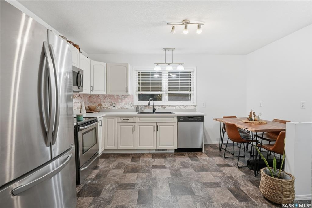 Welcome to 600 Mullin Ave E, a spectacular 3-bedroom, 2-bathroom home nestled in the highly sought-after Arnheim Place neighborhood. This property boasts convenient access to the ring road and Arcola Ave, making commuting a breeze, while being within walking distance of beautiful parks and reputable schools. This charming residence has seen numerous upgrades over the years, making it an ideal choice for first-time homebuyers. Notable enhancements include Tile backsplash(to be completed prior to possession) Quartz counter top (2025) a stylish mudroom with built-in bench and storage (2022), fresh interior paint upstairs (2022), a striking Board & Batten feature wall (2022), updated kitchen cabinet hardware (2022), and beautifully landscaped front and backyard (2021), complete with a lovely pergola. The main floor offers an inviting open-concept living area featuring a two-sided gas fireplace that separates the living room and primary bedroom. The spacious kitchen provides ample storage, complemented by a large secondary bedroom and a tastefully upgraded 4-piece bathroom. The basement is nearly fully developed, showcasing a generous recreation room, a third bedroom, and an additional upgraded bathroom, perfect for guests or family gatherings. The expansive yard has been meticulously maintained, providing a serene space to unwind and enjoy summer evenings. Additionally, the property features an oversized single garage with extra parking available beside it. Don't miss the opportunity to make this wonderful home your own!
