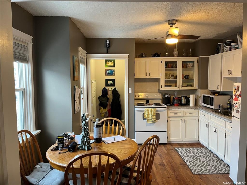 This 758 sq. ft. Bungalow, with 4 Bedrooms & 2 Baths, in Midtown, features a spacious white Kitchen, with combined dining area. The main bathroom has been totally redone and upgraded, completed just this December, 2025. The large living room with Southern exposure brings in that natural daylight. PVC windows throughout. The basement has been fully developed with the 3pc bathroom completed in 2023, along with a new power vented water heater in 2023 also. Central Air was put in,in 2024. The furnace is a high eff furnace. The beautifully, manicured, backyard is fully fenced, with new back deck constructed in 2024, and the front deck was built in 2025. To complete this package is a single detached garage with Lane / lane suite access. Great Home for that first time Homebuyer or revenue investment Call your Realtor Come have a look!