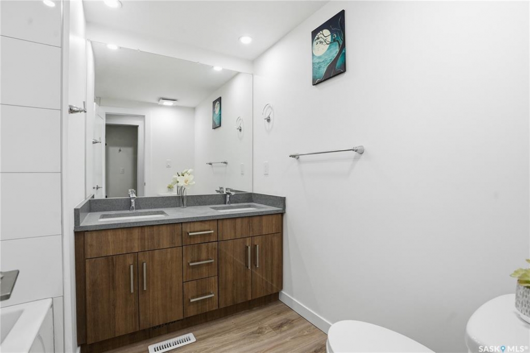 A backyard that feels like your own private park! This beautifully renovated mobile home sits on one of the best lots in the entire community, backing directly onto green space, ball diamonds, and a gorgeous park setting. It's rare to find this much space and privacy on Saskatoon's east side, especially at this price point. Inside, you'll find over 1,200 sq. ft. of bright, modern living space that's been updated from top to bottom. Everything's been done from the newer furnace, air conditioner, and windows to the sleek kitchen with quartz counters, tile backsplash, soft-close cabinets, and stainless steel appliances. The open layout feels warm and welcoming with luxury vinyl plank flooring, pot lighting, and a cozy electric fireplace that ties it all together. There's also an oversized family room, perfect for an office, playroom, or extra lounge space. The main bathroom features dual sinks and the primary bedroom has a stylish feature wall that adds character. Outside, enjoy two new decks, one for morning coffee, one for evening BBQs and a yard so big it honestly feels like your own park. Lot fees cover water, sewer, snow removal, garbage pick-up, and park maintenance, so you can just move in and enjoy. If you're looking for something move-in ready with unbeatable space, style, and location, this is a must-see. Homes like this, especially with a yard like that, don't come around often!