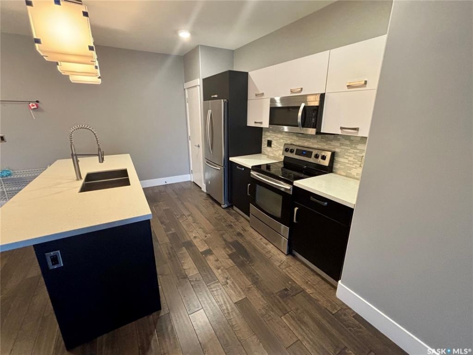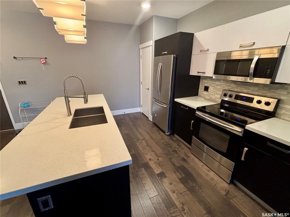 TriBeCa in one of Saskatoon's most desirable and vibrant areas. This amazing building really draws attention when you see it. Great proximity to U of S, Broadway and Downtown. Featuring engineered hardwood floors in living and dining area, heated tile floors in bathrooms, individual furnace, central air, stainless steel appliances, quartz counter tops, large balcony with glass railings, N/G bbq hook up and heated underground parking. 2 bedroom with access to balcony from primary bedroom, large en suite with two closets.