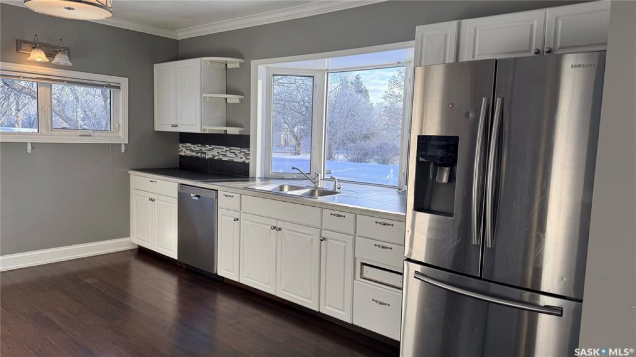 Welcome to this tastefully updated 936 sq. ft. bungalow, offering a perfect blend of comfort and style in a peaceful small-town setting. Situated on a spacious double lot, this bright and airy home features 3 bedrooms, 2 bathrooms, and a functional layout ideal for families, first-time buyers, or those looking to downsize. The fully finished basement adds valuable living space, perfect for a rec room, home office, or guest suite. Additional highlights include a double car garage, a partially fenced yard great for pets or outdoor entertaining, and plenty of room to grow. Move-in ready with modern updates throughout, this home combines charm, convenience, and space—all in a tranquil community setting.