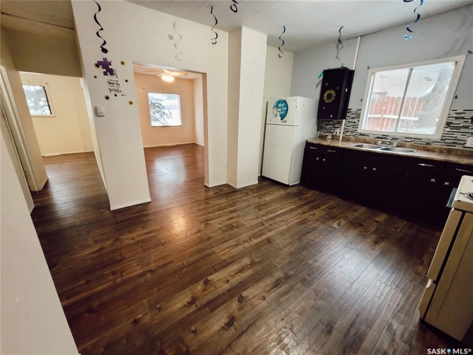 Welcome to 1513 14th Street West in Prince Albert's West Flat neighborhood, an affordable three bedroom home with a single attached garage and a functional, family friendly layout. Inside, the home features updated flooring and a spacious kitchen with plenty of cupboard space that opens nicely to a large living room. The layout offers a practical mud room entrance, two generously sized bedrooms located above the garage, one additional bedroom on the main floor, and a formal dining area ideal for everyday meals or entertaining. The basement is partially finished and provides a convenient opportunity to add a second bathroom, with the seller stating that a toilet sewer drain is present but was previously sealed off. Updated ABS plumbing is also present in the basement for the main sewer drain. Outside, the large partially fenced backyard includes two off street parking options, adding extra convenience. This property offers solid value for buyers looking for space, functionality, and an accessible price point - great for investors looking for a rental property or home buyers with affordability in mind.