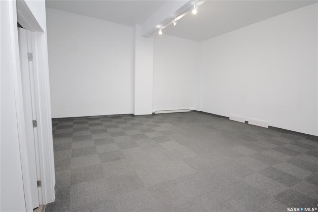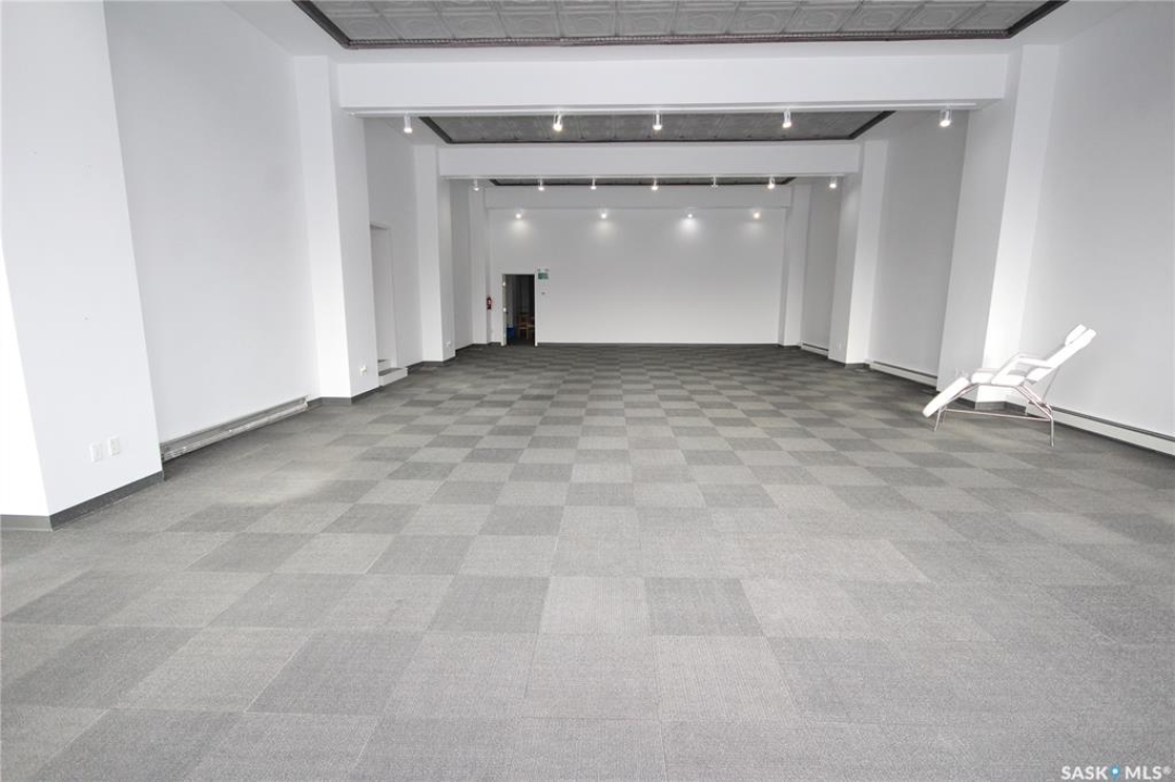 This is one of the nicest commercial spaces in the city with 14' ceilings highlighted by beautiful architectural metal panels offering a unique and upscale vibe. It offers large scale windows facing Broadway St for soothing natural light and high visibility for signage. The space lends itself to a variety of uses from store front space, office space, event space, coffee house, boutique, clinic space, etc. with your exclusive use of the front 1628 sq ft plus the back office, lunchroom and washroom space shared with Moda staff. There is ample on street parking and public parking lot access across the street. The Landlord has installed new high efficient natural gas forced air heat and central air conditioning for maximum comfort. Note: If you need the full 2500 sq ft space exclusively there is the option to rent the entire space - see MLS SK025949 for details.