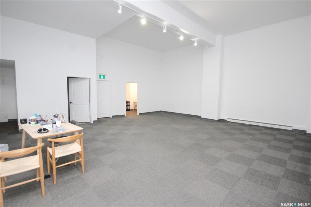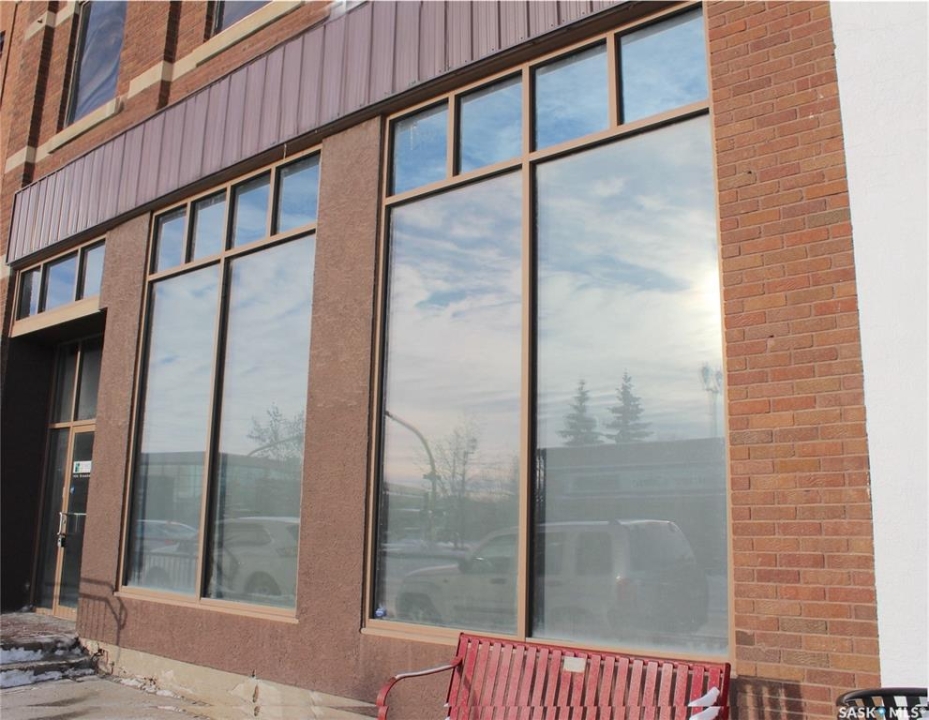This is one of the nicest commercial spaces in the city with 14' ceilings highlighted by beautiful architectural metal panels offering a unique and upscale vibe. The 2500 sq ft open concept space lends itself to a variety of uses from store front space, offices, event space, coffee house, boutique, clinic space, etc. It offers large scale windows facing Broadway St for soothing natural light and high visibility for signage. The front open space is 1628 sq ft with the back area offering 678 sq. ft additional space plus a lunchroom and washroom. There is ample on street parking and public parking lot access across the street. The Landlord has installed new high efficient natural gas forced air heat and central air conditioning for maximum comfort. Note: If you don't need all this space there is an option to lease only the front 1628 sq ft exclusively and sharing the back office/lunchroom/washroom with the Moda clinic staff see MLS SK025948.