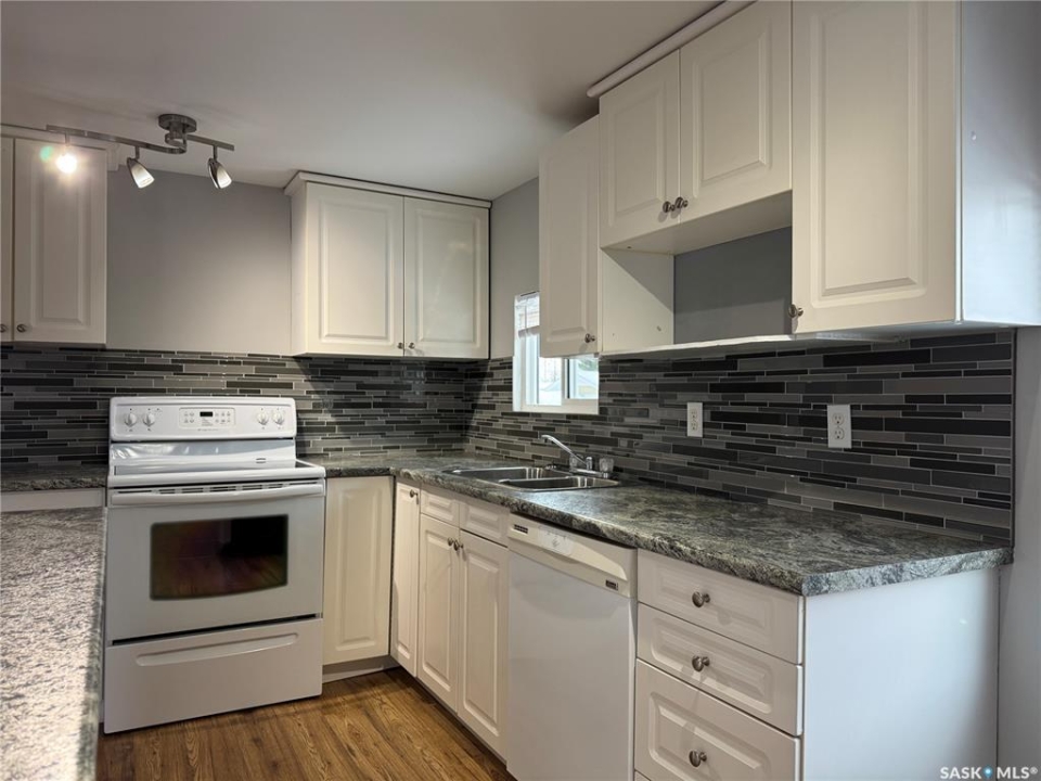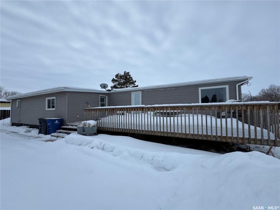 Welcome to 308 Tesky Crescent in Wynyard, Saskatchewan — an affordable home ownership opportunity on a 6,365 sq ft owned corner lot, located in a quiet cul-de-sac. This 2-bedroom, 1-bathroom mobile home offers 1,280 sq ft of above-grade living space and a roomy layout. A key highlight of this home is the large front room featuring its own exterior access. This space truly sets the property apart, offering many practical options for today's lifestyle — ideal for a home-based business, master bedroom, playroom, studio, or flexible family space. The private entrance and generous size allow it to function independently from the main living area, making it a great fit for buyers seeking room for work, creativity, or family needs at home. The main living room is bright and welcoming, open to the kitchen which offers plenty of cabinetry and workspace. Main-floor laundry is conveniently located in the spacious laundry/mud room. Included appliances are the fridge, stove, washer, dryer, and built-in dishwasher. The property provides gravel driveway parking for up to 4 vehicles, established lawns front and back, and is located close to Carlton Trail College, Wynyard Composite High School and Wynyard Golf Course, offering easy access to education and recreation. Whether you're looking to create space for family or explore a home-based venture, 308 Tesky Crescent delivers versatility, space, and value on a lot you own. Book your showing today!