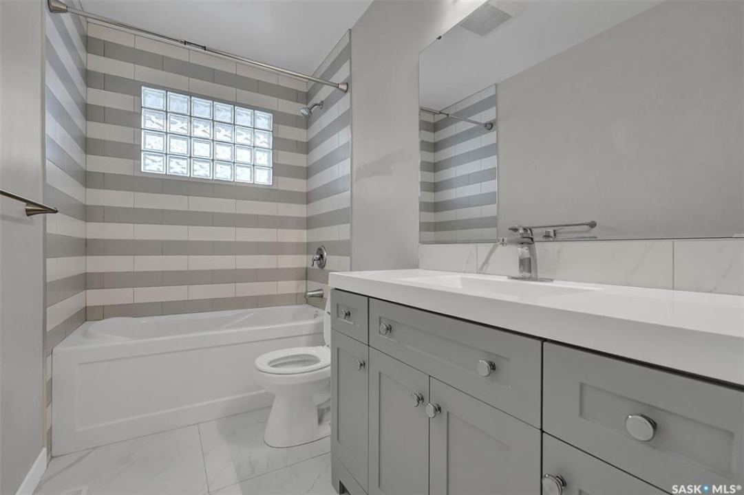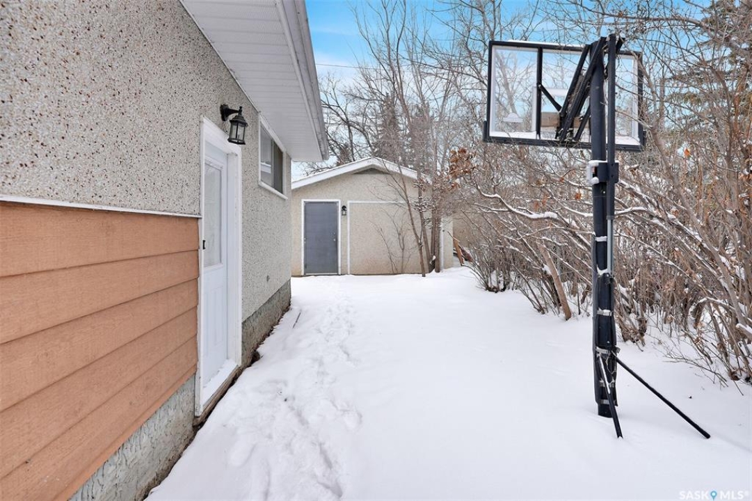 Welcome to this well-maintained bungalow in the desirable Whitmore Park neighborhood, close to schools and south-end amenities. This beautifully upgraded home offers 5 bedrooms and 2 full bathrooms with numerous renovations, including new flooring throughout, two renovated bathrooms, fresh paint, updated doors, trim, and lighting. The main floor features a bright living room with large windows, a spacious dining area, and a kitchen with oak cabinetry, ample storage, tile backsplash, and newer stainless-steel appliances. Three good-sized bedrooms and a 4-piece bathroom complete the main level. The fully developed basement with separate entrance includes a large recreation room, two bedrooms with large windows, a 4-piece bathroom, and a den. The utility room offers plenty of storage. A detached heated garage, currently used as a workshop, completes the property. Move-in ready with recent upgrades including windows (2023), A/C (2023), shingles (2019), appliances and countertops (2022), washer & dryer (2022), and flooring (2022). Don't miss this great home!