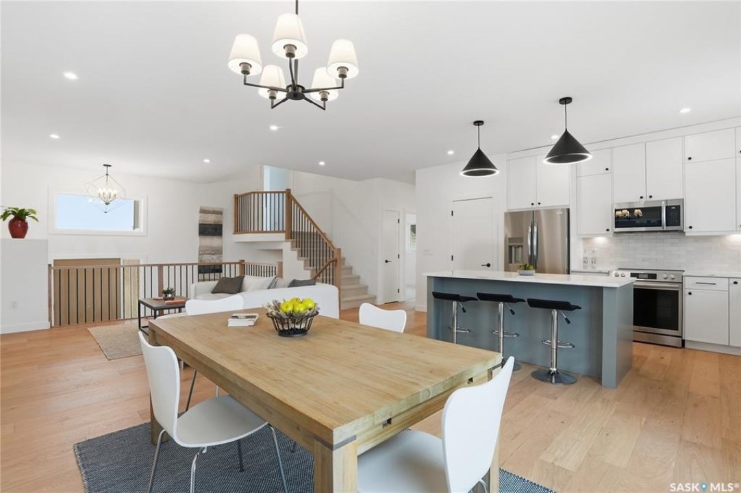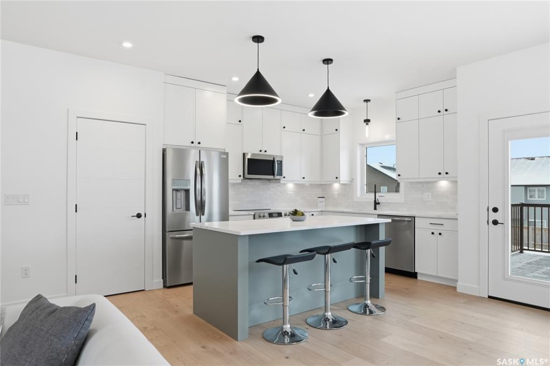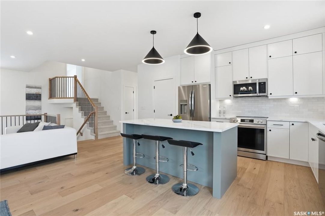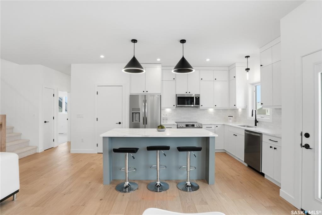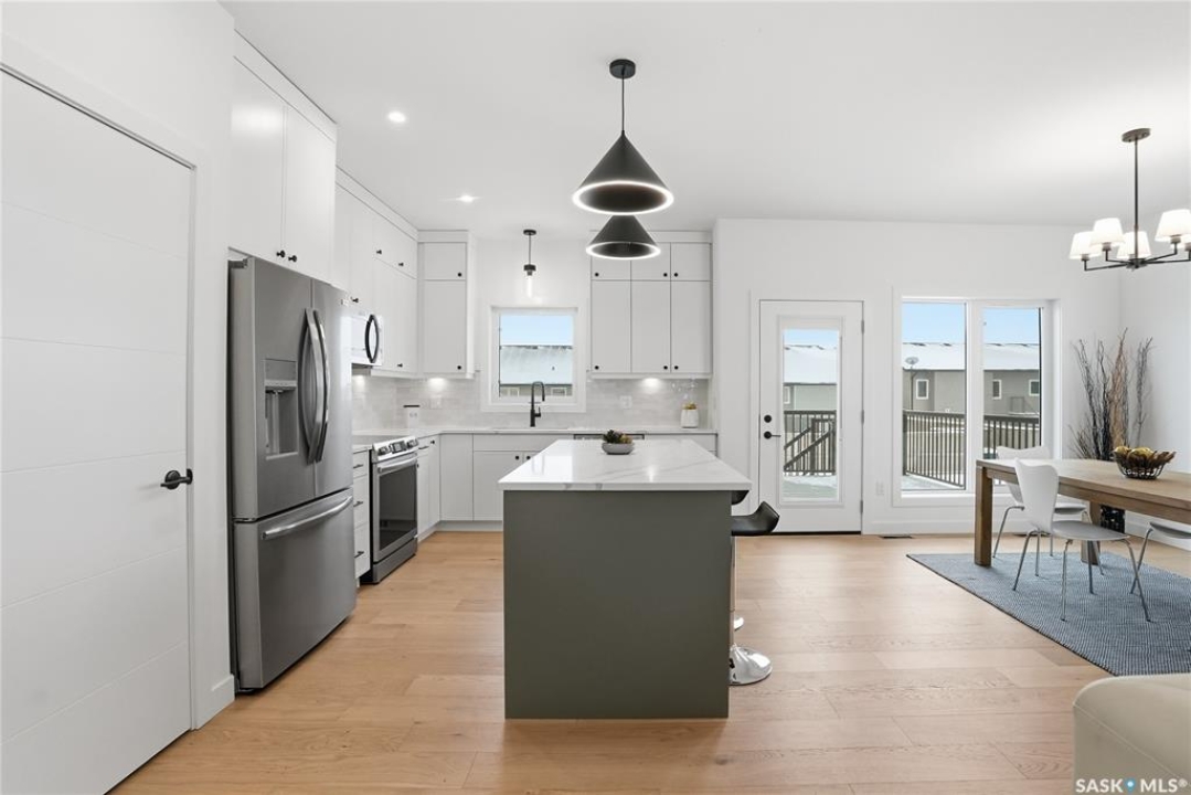 Say hello to 811 Ballesteros Crescent, where everyday living meets weekend adventure in Warman's Legends community. This Pawluk Homes modified bi-level brings undeniable presence with 1,494 square feet of polished living space, bold curb appeal, and a layout built for people who like their home to work as hard as they play. From the moment you walk in, the soaring ceilings, rich hardwood floors, and statement open staircase with custom maple railing set a confident, modern tone. The main living space is flooded with natural light and designed for connection, whether you're hosting friends or winding down after a long day, anchored by an awe-inspiring kitchen with quartz countertops, custom cabinetry, glass tile backsplash, and designer lighting that feels straight out of a magazine. The primary bedroom is your personal recharge zone, complete with a walk-in closet and sleek ensuite, while two additional bedrooms and a full four-piece bath give you room to grow, host, or work from home. Downstairs is wide open and ready for whatever comes next—think gym, games room, extra bedrooms, or a full-on theatre setup, with development quotes available to bring it all to life. Step outside and soak up the sun in the south-facing backyard, where a composite deck becomes your go-to spot for morning coffee, sunset drinks, and summer barbecues. The triple attached garage is a lifestyle upgrade all on its own, offering serious space for trucks, boats, sleds, bikes, tools, and toys, fully insulated, finished, and roughed in for heat so it's ready for all seasons. Best of all, you're minutes from Legends Golf Course, parks, and walking paths, with quick access to the highway, making spontaneous lake weekends, northern getaways, and outdoor adventures part of your regular routine. 811 Ballesteros Crescent isn't just a home, it's a launchpad for the life you want to live.
