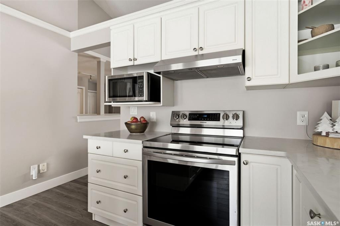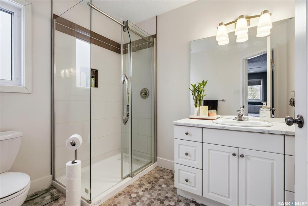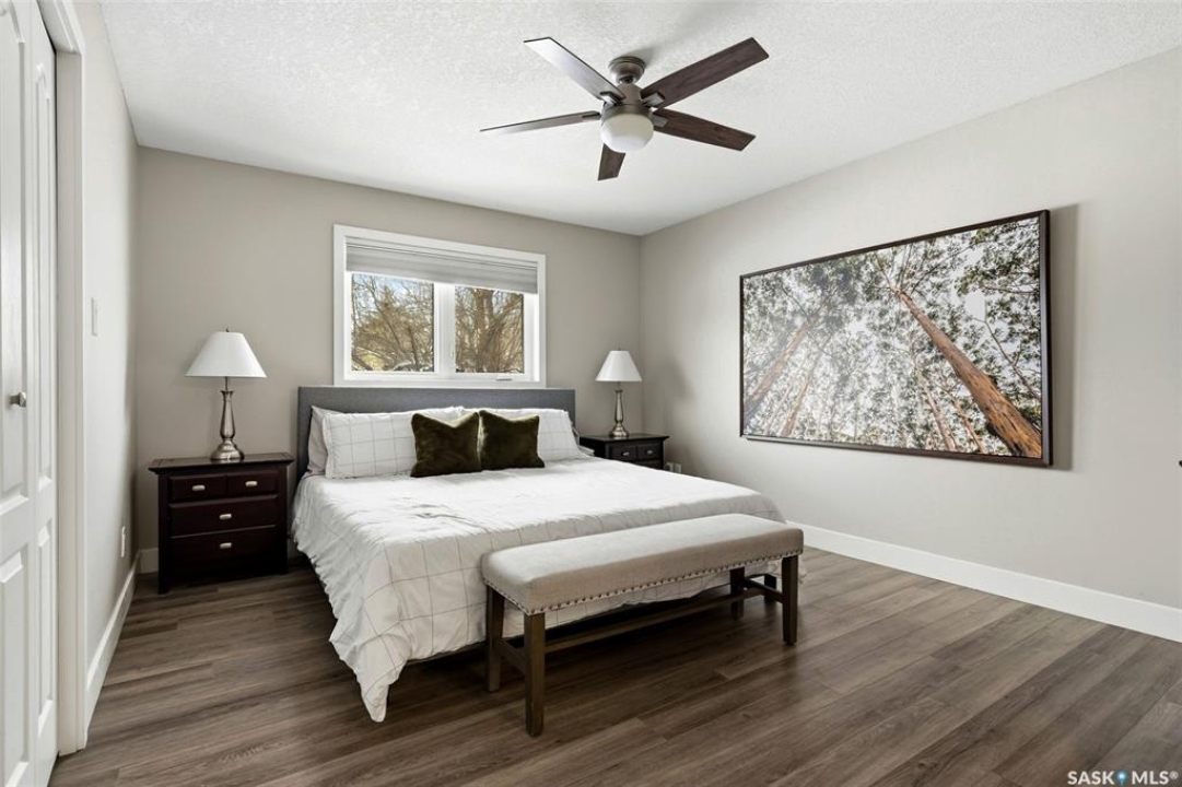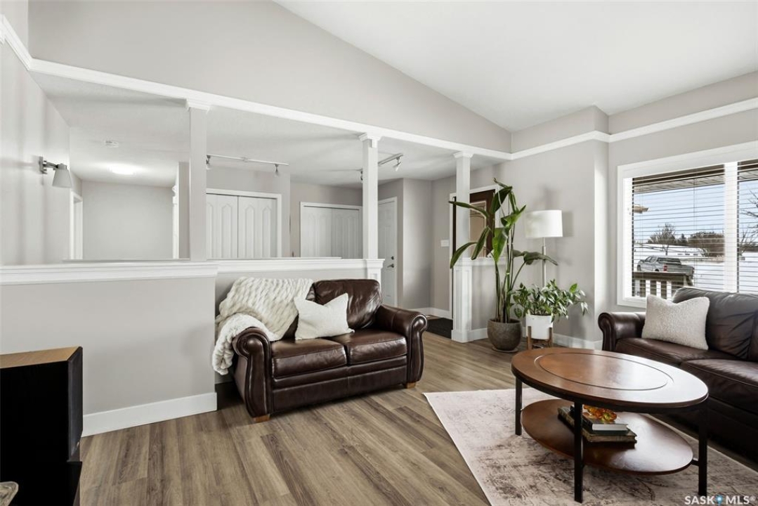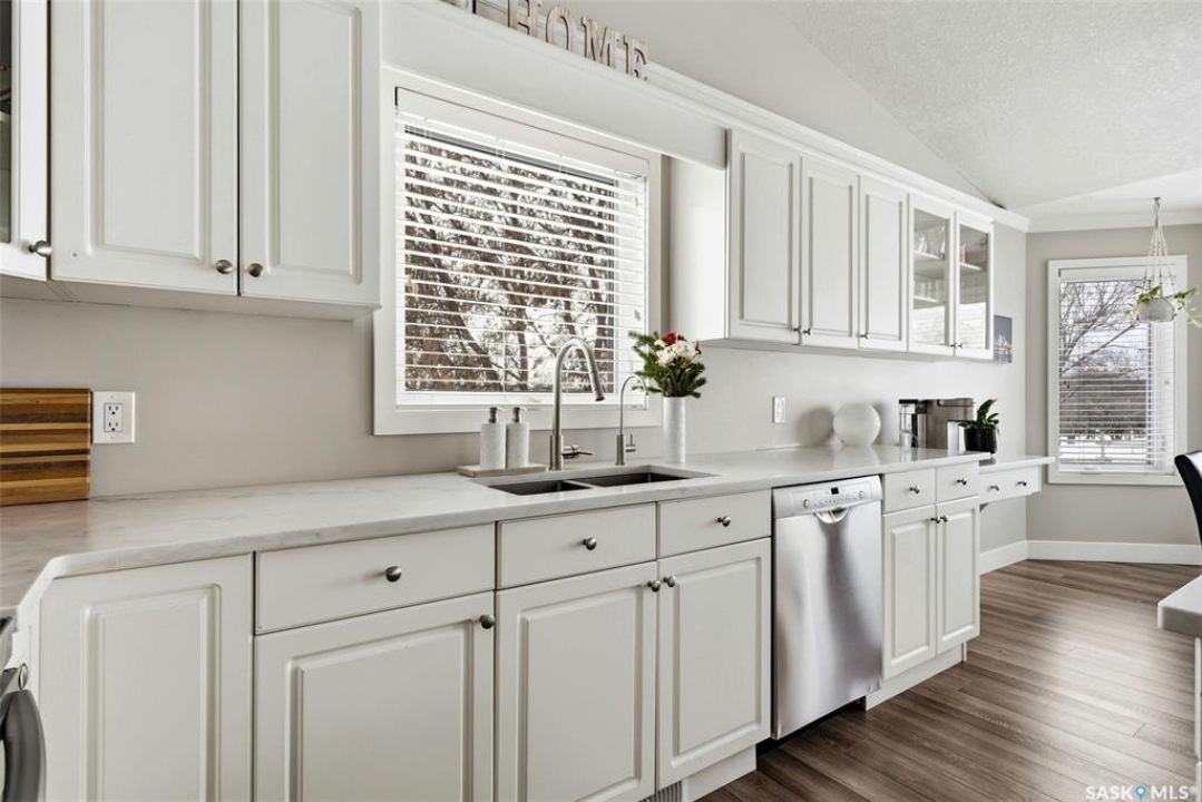 Welcome to a home where pride of ownership is immediately felt and where every detail has been thoughtfully curated for comfort. Perfectly positioned on a large, beautifully landscaped lot in a quiet bay in Lumsden, this 1,427 sq ft custom-built bungalow offers a rare combination of privacy and quality construction. With no rear neighbours, this is the kind of setting that you simply can't get in the city. Step inside and you're greeted by soaring vaulted ceilings that elevate the living room and kitchen, creating a bright, open atmosphere that feels both welcoming and refined. Updated PVC windows flood the home with natural light while enhancing energy efficiency and comfort year-round. The heart of the home, the kitchen and dining area is designed for entertaining, anchored by a large window that frames peaceful views of the deck and backyard. Updated quartz countertops with S/S appliances, and a central island make this space as functional as it is beautiful, perfect for hosting. The main floor features three generous bedrooms, including a private primary retreat with a recently updated custom tile shower. The main bathroom offers a deep soaker tub, perfect for unwinding at the end of the day. Updated vinyl plank flooring ties the space together with a modern, durable finish that's as practical as it is stylish. Downstairs, the fully developed walk-out basement offers a spacious recreation room, exercise area, two large bedrooms, a 4-pc bathroom and a laundry room. Built on a raised wood floor with a crawl space beneath, and supported by concrete piles, this lower level offers warmth, durability, and quality construction you can feel. The west-facing, two-tiered deck, invites you to soak in uninterrupted valley views, glowing sunsets, and the rare luxury of total backyard privacy. The double attached garage is insulated and heated and shingles/eavestrough were updated in 2025.