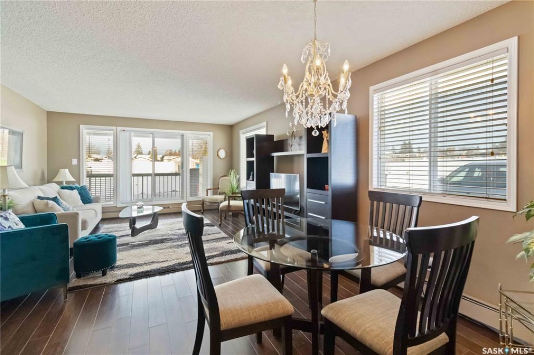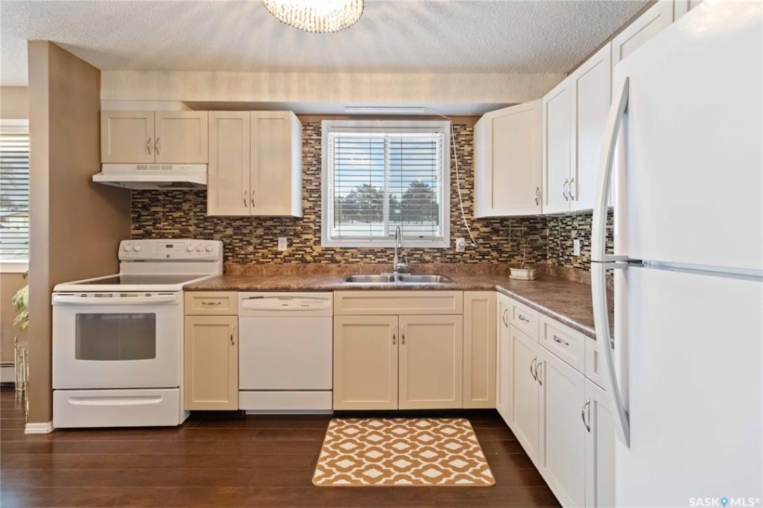Immaculate 1040 sq ft 2 bedroom corner unit condo has the added bonus of 2 large side windows making the unit very bright. The unit is move in ready! There is an open concept kitchen, dining, and living room. The kitchen has upgraded kitchen cabinets and ample counterspace. Off of the living room, you can access your spacious patio/deck area which houses your secure outdoor storage unit. The primary bedroom is a generous size with a 2 piece ensuite and walk in closet (5 ft X 6.5 ft). The second bedroom is perfect for a roommate, guests, or office/craft room. The unit features a 4 piece bath. The large laundry/storage room (8 ft X 7.25 ft) has a washer/dryer, freezer, and entertainment/book shelf unit in living room. The condo has a wall air conditioning unit and one electrified surface parking stall that can be viewed from the patio doors. The Parkside Place Building has an amenities room, exercise area (off of the amenities room) and visitor parking. Give your REALTOR � a call today to view this property.