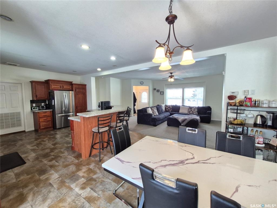 Looking for BIG square footage on a HUGE lot, super close to the amenities of Pangman? Look no further! This 2115 square foot home sits on a 200x130 lot, just across from the school and daycare, and just steps from downtown. Built in 2014, this home features 4 bedrooms, 2 baths, TWO living rooms, large porch and laundry area, and an attached, insulated and heated 2 car garage. The garage is a huge 30x36, and is ready for your finishing touches. The kitchen boasts beautiful cabinetry, plenty of counter space, and large island, with sit up counter space. There is plenty of natural light in all areas of this home. Contact for your tour today!