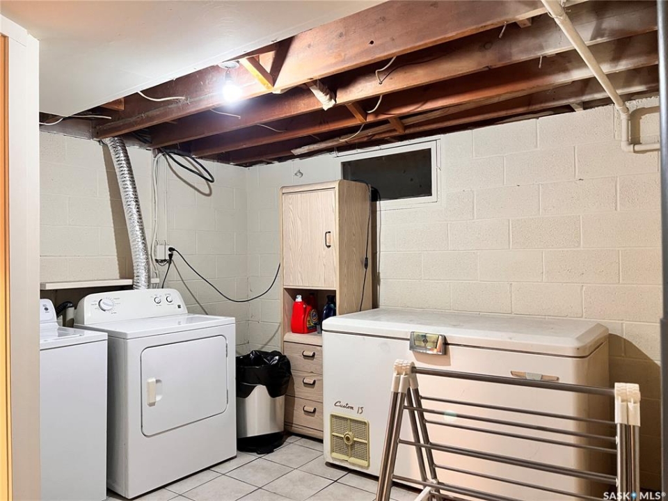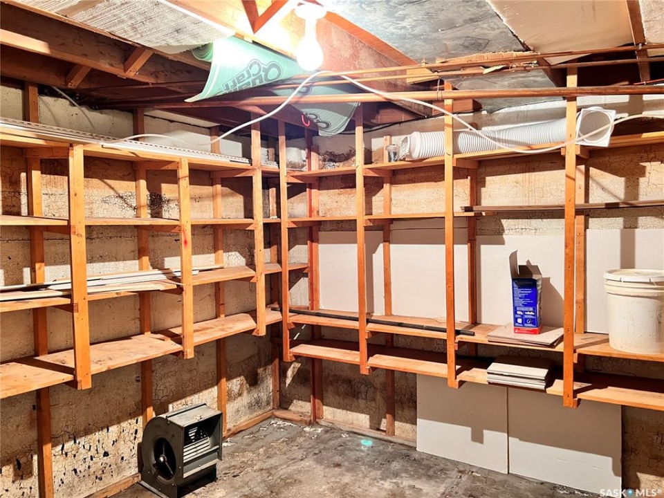 Embrace the small-town living with this inviting family home in Raymore, Saskatchewan. If you seek affordability without compromising on comfort, this residence could be your perfect match. Spanning 1034 sq.ft., this well-maintained home awaits its new owners to infuse it with their personal style. The original kitchen boasts ample cabinet and counter space with room to have a dining table. The living room is very cozy and has extra space to fit a larger dining table too. There are two main-floor bedrooms, and 1 full bathroom. The basement has been developed with 2 bedrooms and a 3 piece bathroom and a laundry areas. The larger bedroom could be used as a rec / games rooms. There is an unfinished room that could be used as a workshop or cold storage. This home boasts several value-added features, including newer shingles, some updated pvc windows and water softener. Outside is a generously sized yard that has a great slope to it and will help to keep the basement dry. There is a single car garage and a storage shed. Discover the charm of this welcoming community and explore the potential of this delightful family home. With its array of features and a warm, inviting atmosphere, this property invites you to experience the comfort and serenity of small-town living. Don't miss the opportunity to make it your own!