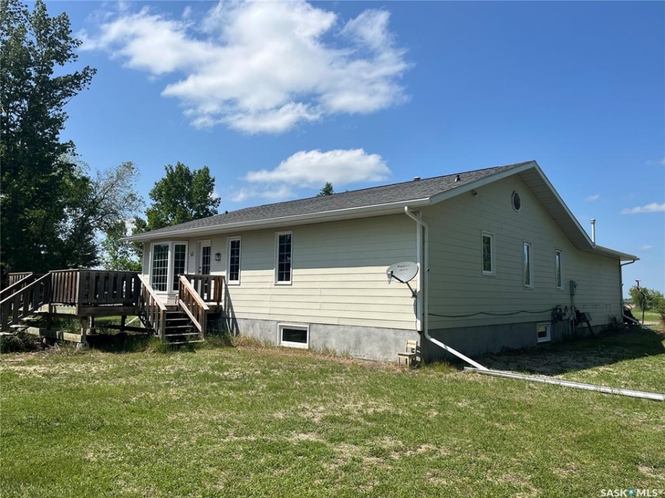 Two houses in one package This is a great opportunity to own a private quiet acreage on the edge of the town of Foam Lake. The property has two packages, one with a newer 1991 home and the other with a 1957 bungalow. The newer home is a 2,052 square foot house. It was a 1,526 square foot, 3 bedroom, bungalow that has had the former garage of 528 square feet claimed as more living space with a natural gas heater. The main floor has 3 bedrooms, 1 full bathroom, 2-piece ensuite, laundry in the mud room, large eat in kitchen, dining area, and sunken living room. The basement has a family room, office area, large room with entrance to former garage, 2 bedrooms, 1 bathroom, and a utility room. The home has had upgrades to eaves in 2022, shingles 2023, most windows 2023, some windows in 2001 and more. The basement is mostly finished with ceiling, some trim and some flooring to finish. The property offers a large private space while still being in the town limits. The views area excellent to the north and south, with no residential neighbour on the West side. The second home was built in 1957 with an addition in 1977. It features a beautiful deck overlooking an open field and an older garage that has been turned into a rec area/entertainment space. The house has 3 bedrooms and 2 baths with a large living room, dining room, kitchen and partially finished usable basement.