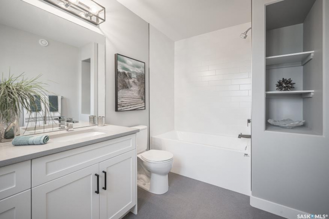 "NEW" TOWNHOUSE PROJECT [Phase 2] in Brighton. BACKING GREEN SPACE -- NO CONDO FEES. Ehrenburg built - 1566 SF 2 Storey. This home features - Durable wide Hydro plank flooring throughout the main floor, high quality shelving in all closets. Open Concept Design giving a fresh and modern feel. Superior Custom Cabinets, Quartz counter tops, Sit up Island, Open eating area. The 2nd level features 3 bedrooms, 4-piece main bath and laundry area. The master bedroom showcases with a 4-piece en-suite (plus dual sinks) and walk-in closet. BONUS ROOM on the second level. This home also includes a heat recovery ventilation system, triple pane windows, and high efficient furnace, Central vac roughed in. Basement perimeter walls are framed, insulated and polyed. Single attached garage with concrete driveway. Front landscaped and back deck included. PST & GST included in purchase price with rebate to builder. Saskatchewan New Home Warranty. Currently scheduled for an April 2026 possession.