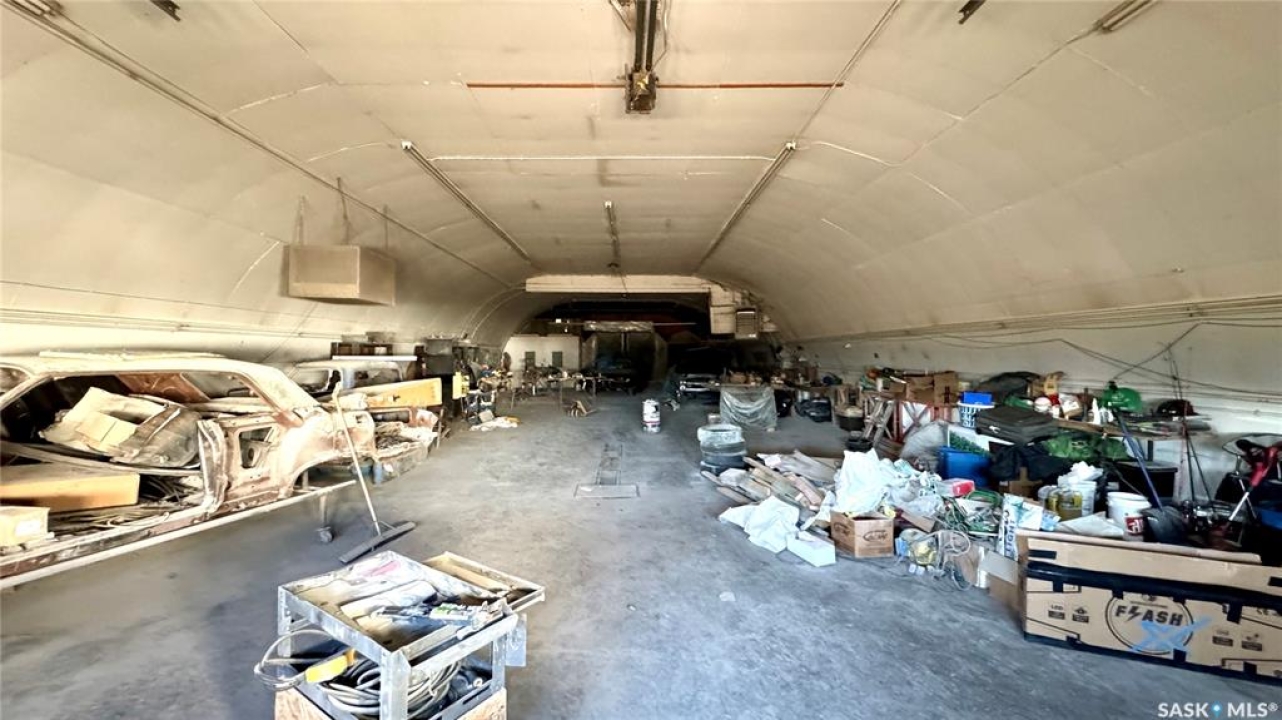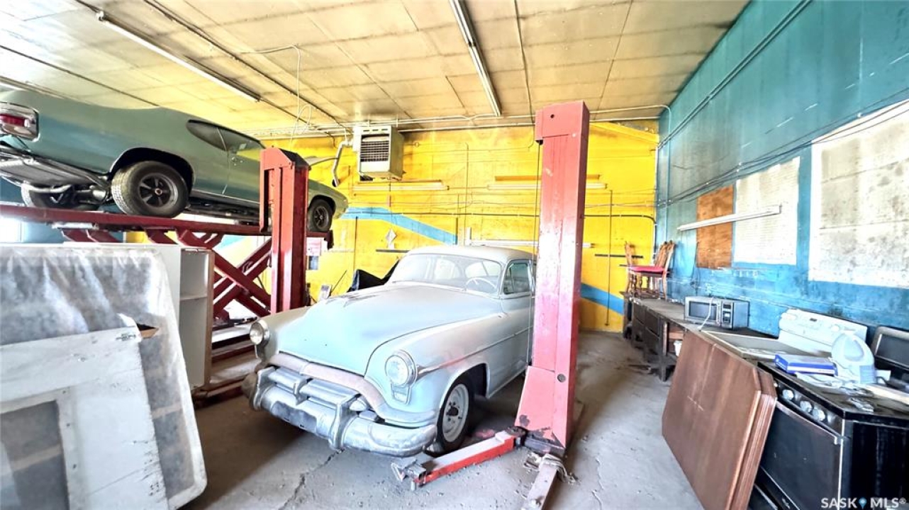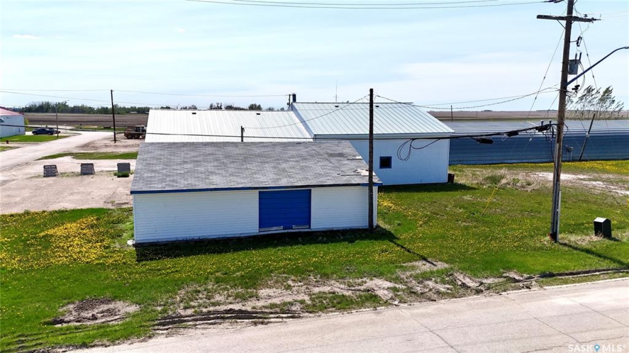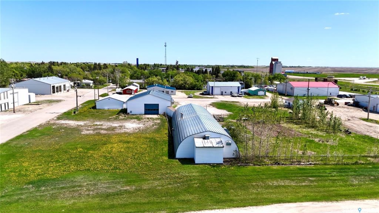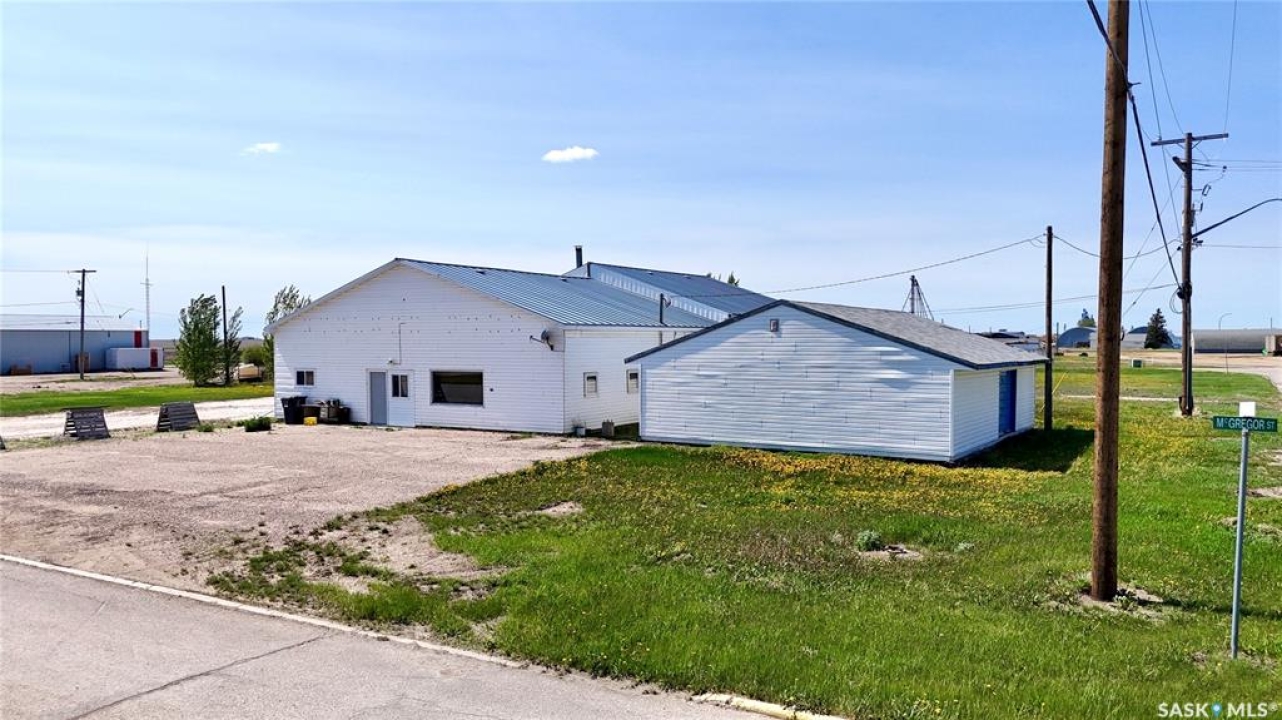 109 McGregor St – MULTI-USE COMMERCIAL PROPERTY IN Davidson, SK This versatile property spans 11 titled parcels in the heart of Davidson, offering a rare combination of COMMERCIAL SHOP SPACE, living quarters, and storage. Originally built in 1971 as a Ford dealership, the main building now features a renovated front area with a kitchen, living room, office space, and four lockable bedrooms - ideal for staff housing or a live/work setup. The rear workshop, built in 1973, includes a forced air furnace, TWO HOISTS (one drive-on, one post), a large air compressor, and a seamless metal snaplock roof (10 years ago). An overhead door at the back of the building provides convenient access to the shop area housing the hoists. Attached is a 1,464 sq ft COLD STORAGE building, perfect for additional equipment or material storage. Also on-site is a 40' x 120' Arch Rib/Quonset-style building, seamless metal snaplock roof, currently used privately as a PAINT AND BODY SHOP. It includes a paint booth, storage area, frame tie-downs, and a DEVILBISS heated air make-up unit that filters and heats air for the booth while venting exhaust. An overhead door provides vehicle access, with the booth located at the back of the structure. This Quonset is adjoined to a FENCED COMPOUND, ideal for secure outdoor storage. Whether you're expanding an automotive business, seeking mixed-use space, or looking for a centrally located investment, this well-equipped property delivers space, functionality, and long-term potential.