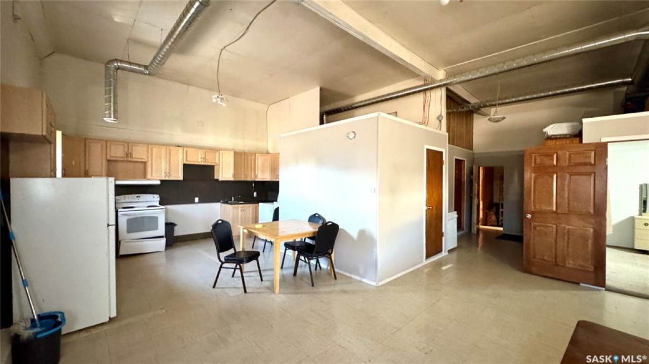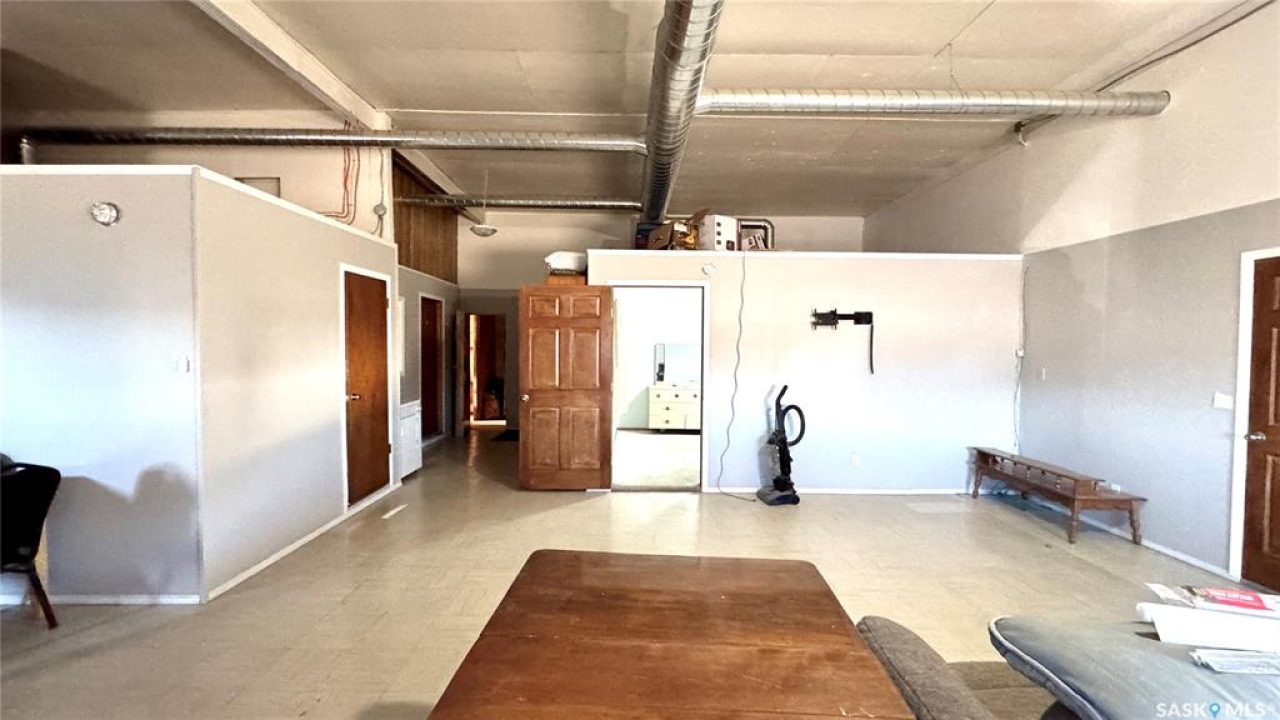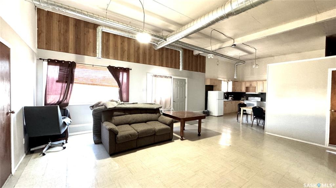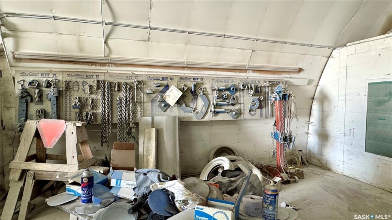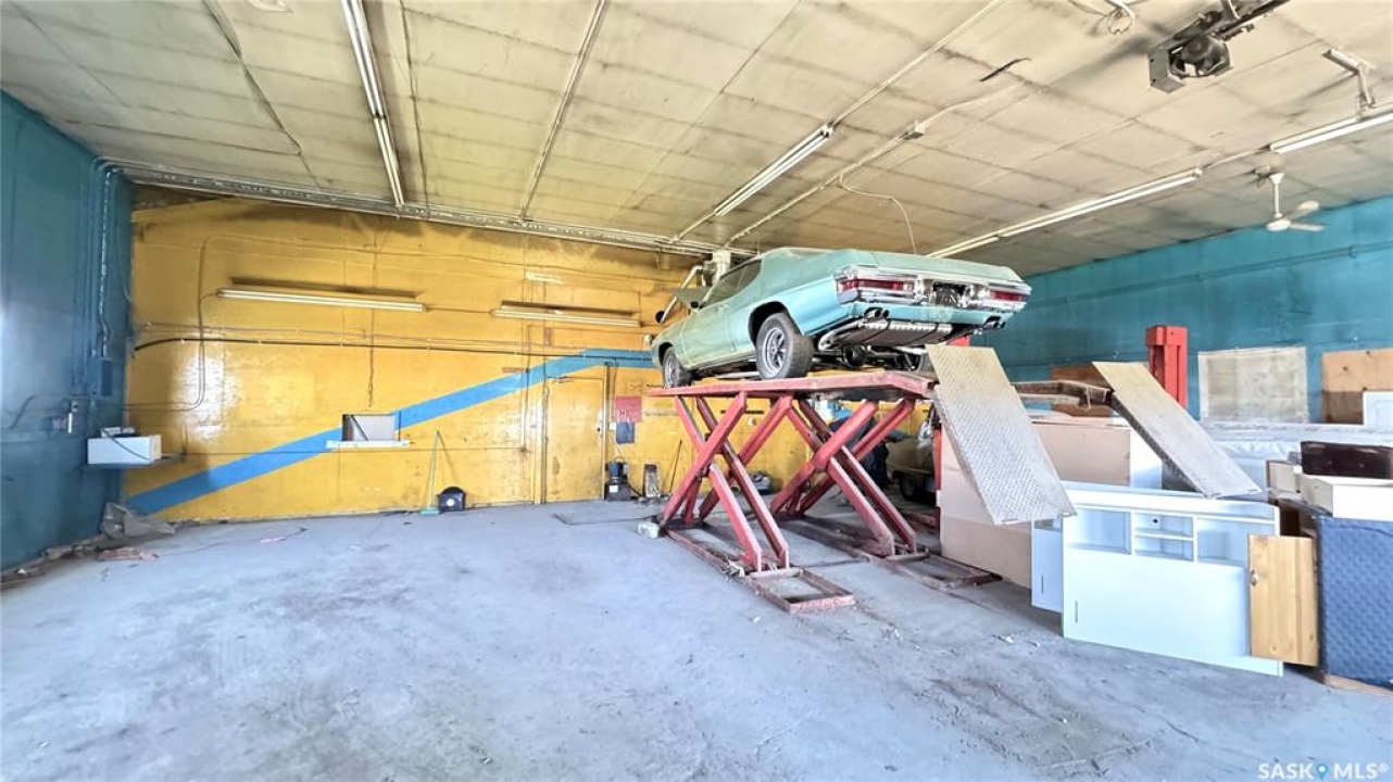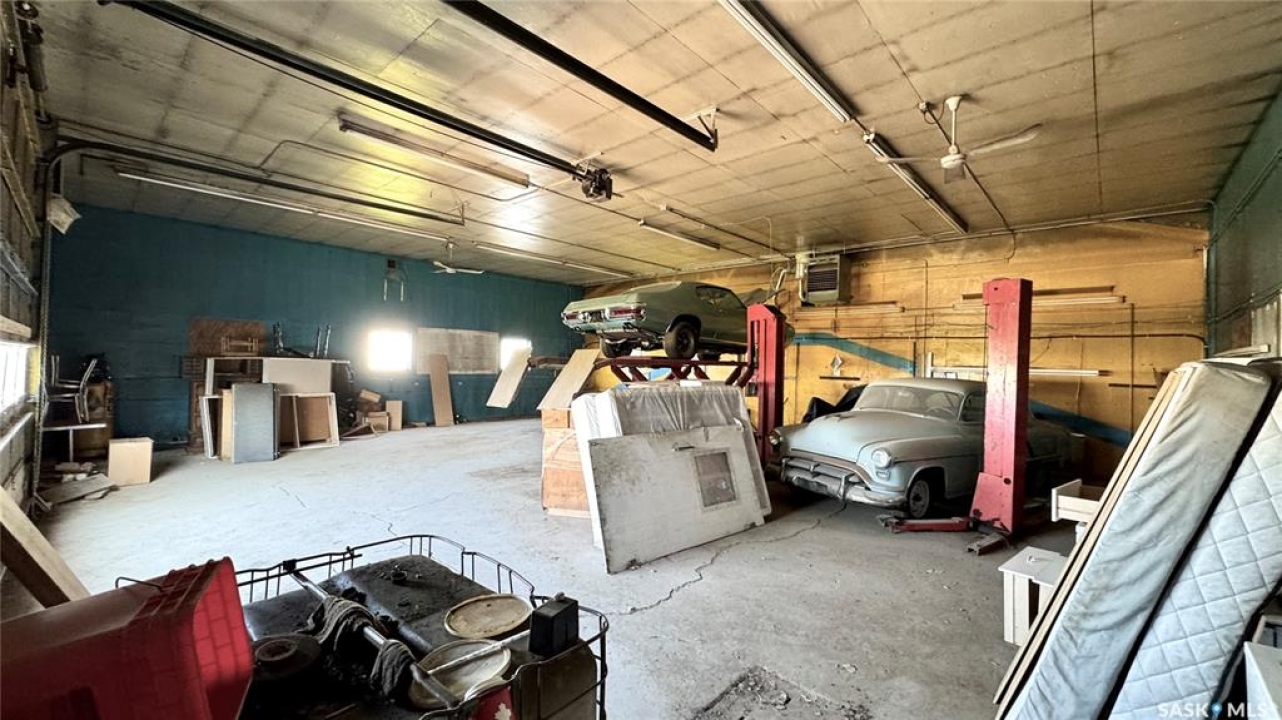 109 McGregor St – MULTI-USE COMMERCIAL PROPERTY IN Davidson, SK This versatile property spans 11 titled parcels in the heart of Davidson, offering a rare combination of COMMERCIAL SHOP SPACE, living quarters, and storage. Originally built in 1971 as a Ford dealership, the main building now features a renovated front area with a kitchen, living room, office space, and four lockable bedrooms - ideal for staff housing or a live/work setup. The rear workshop, built in 1973, includes a forced air furnace, TWO HOISTS (one drive-on, one post), a large air compressor, and a seamless metal snaplock roof (10 years ago). An overhead door at the back of the building provides convenient access to the shop area housing the hoists. Attached is a 1,464 sq ft COLD STORAGE building, perfect for additional equipment or material storage. Also on-site is a 40' x 120' Arch Rib/Quonset-style building, seamless metal snaplock roof, currently used privately as a PAINT AND BODY SHOP. It includes a paint booth, storage area, frame tie-downs, and a DEVILBISS heated air make-up unit that filters and heats air for the booth while venting exhaust. An overhead door provides vehicle access, with the booth located at the back of the structure. This Quonset is adjoined to a FENCED COMPOUND, ideal for secure outdoor storage. Whether you're expanding an automotive business, seeking mixed-use space, or looking for a centrally located investment, this well-equipped property delivers space, functionality, and long-term potential.