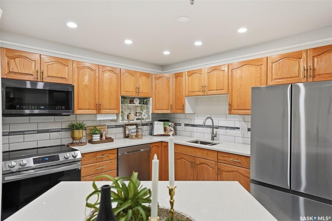 Welcome home to effortless, upscale living designed perfectly for the 55+ lifestyle in this beautifully renovated 1,175 sq ft 2-bedroom, 2-bath unit where modern comfort meets everyday convenience, featuring an open-concept layout with all-new flooring, fresh paint, quartz countertops, added pot lights, and a bright, welcoming atmosphere that instantly feels right, anchored by a stunning oversized island with quartz top, abundant cabinetry, and a walk-in pantry ideal for cooking, hosting, or simply enjoying a slower pace of life. A $10,000 Daikin wall air conditioner has been upgraded in the past year to keep the home cool and comfortable throughout the summer months, set within a quiet adult-oriented building that offers peace, privacy, and security while being just minutes from shopping, dining, and all essential amenities, thoughtfully designed for accessibility with a brand-new elevator and wheelchair access, flooded with natural light from large windows, offering generous storage both on the balcony and in underground parking, a spacious living room that opens directly to your balcony for easy indoor outdoor enjoyment, secure underground parking for comfort and peace of mind, and an overall layout that supports relaxed, low-maintenance living—this is the kind of home that lets you simplify without sacrificing style or space, so call your favourite REALTOR � today to experience it for yourself.