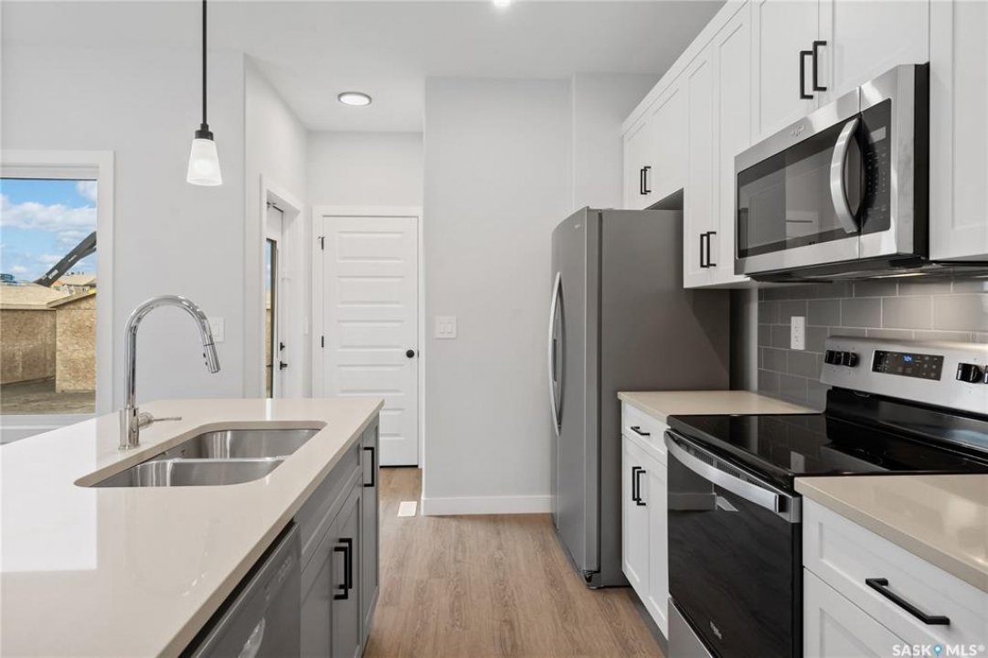Welcome to the Ashwood, premier builder Ehrenburg Home's latest offering in Eastbrook! A vibrant new area close to all amenities, schools and parks. Top quality construction and materials used throughout. Main floor layout is perfect for entertaining. Spacious front entry leads to a wide open floor plan. Large living room with stack stone feature wall with electric fireplace. Beautiful contemporary design. Kitchen features center island/eating bar, pantry, and quartz counters. Extra large eating area to accommodate family dinners. Handy 2 piece bath off the rear door. 2nd level boasts large primary suite with walk in closet and ensuite, two additional bedrooms, full bath and handy laundry room. Bsmt has side entrance for future legal suite development. Exterior walls are framed and insulated with roughed in plumbing. All Ehrenburg Homes offer a superior construction foundation with a 4" rebar reinforced slab and is built on piles. Rebar reinforced rear pad for future garage. Exterior front landscaping, and underground sprinklers (front only) are included. Sask new home warranty included. So many extras with an Ehrenburg Home call today for more details! PHOTOS FROM PREVIOUSLY STAGED BUILD