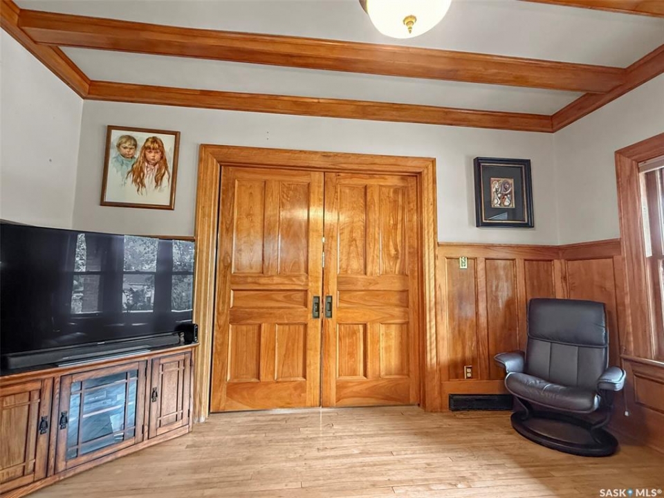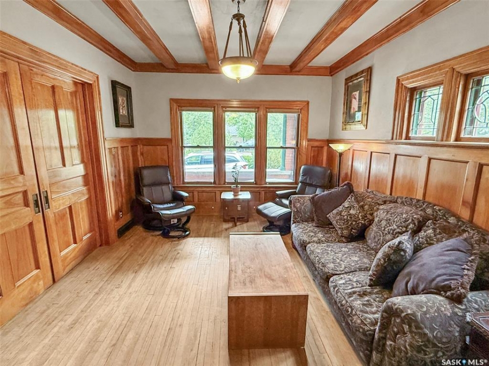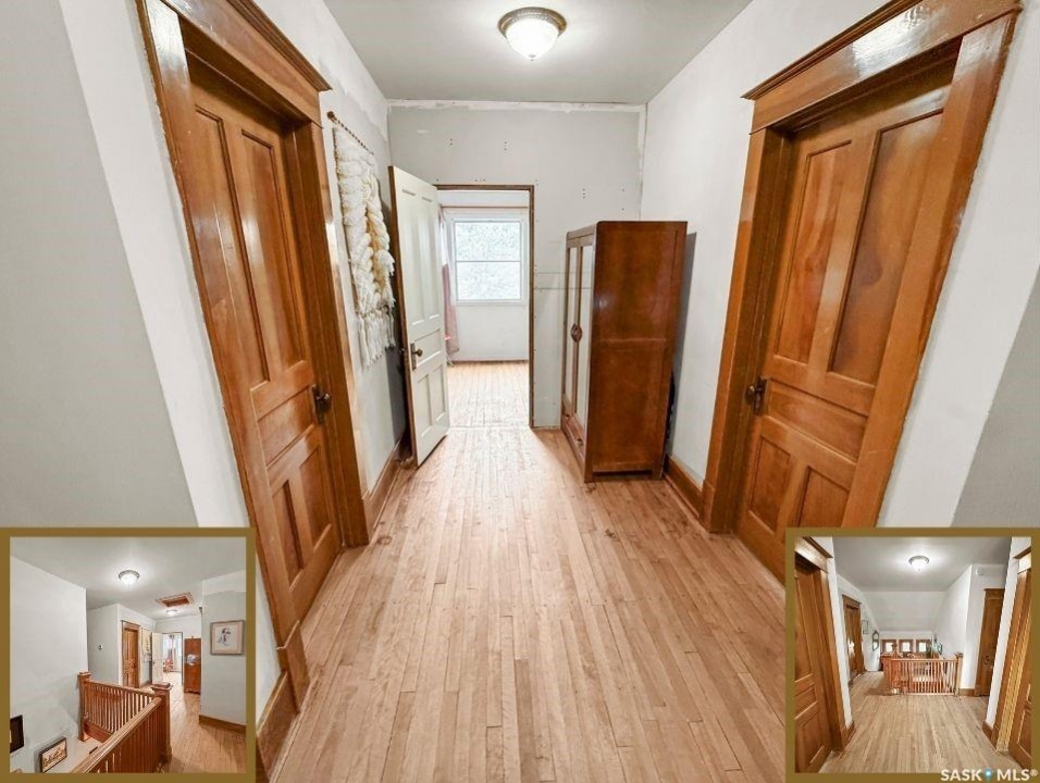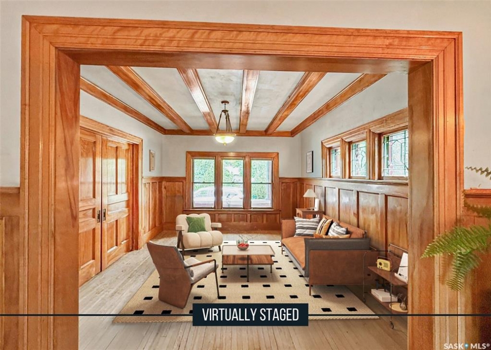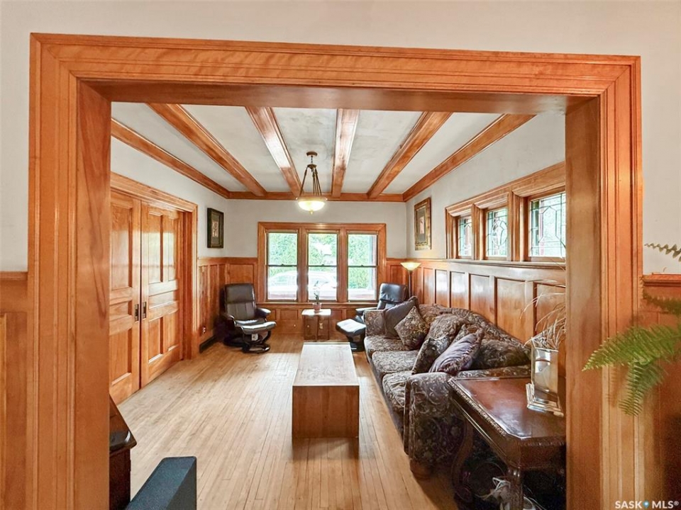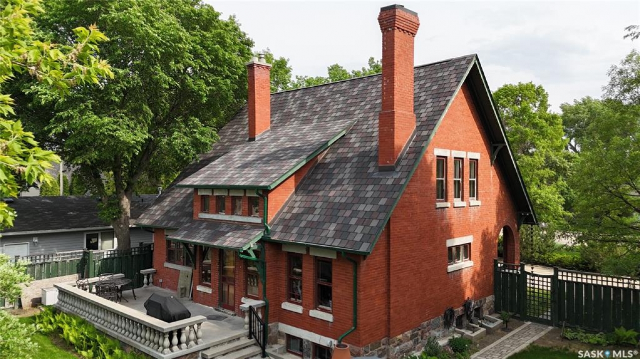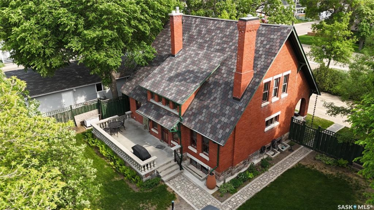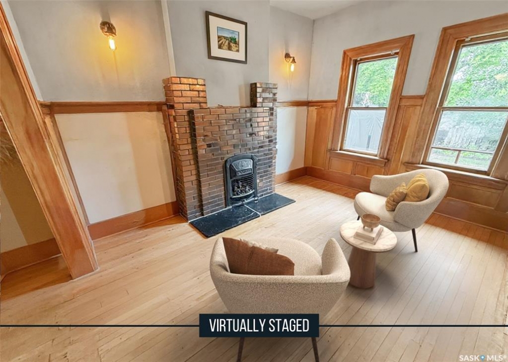 Welcome to Ashley Park Manor – a rare opportunity to own a beautifully restored piece of Swift Current history. Built in 1912 in the English Arts & Crafts style, this iconic double-brick home offers 2,104 sq ft of character-rich space, perfectly blending timeless charm with modern updates. Ideally located in the heart of Ashley Park, just steps from Elmwood Park and the Chinook Parkway, this home sits on a mature oversized lot with an inviting curved drive & rebuilt covered verandah. Lovingly refurbished inside and out: foundation fully reinforced, all-newer sewer & plumbing lines (including to the street), upgraded electrical throughout, lifetime shingles, & restored or rebuilt original windows. Heating equalized $90/m Inside you'll find original hardwoods and millwork (maple on main floor, fir on 2nd) wainscotting, leaded glass & decorative ceiling beams in the great room. The grand entry hosts a stately staircase, flanked by two sets of wood sliding doors opening to a formal dining room and a spacious living area with a sitting room behind that features a cozy gas fireplace with refaced brick. A 2-pc bath at the rear echoes the home's classic elegance. The kitchen includes a full stainless steel appliance package—featuring a premium BlueStar gas range—and awaits your finishing touches for cabinetry, flooring, and trim. Upstairs offers three bedrooms, including a spacious primary with dual closets and access to a sunny second-level sunroom—perfect for a future ensuite. The main 4-pc bath blends vintage charm with modern comfort, featuring classic hex tile alongside fully updated contemporary fixtures and finishes. The lower level features a clean mechanical area with high-efficiency furnace, on-demand hot water, reverse osmosis, softener, air filter, laundry, and ample storage. The peaceful yard includes stonework, concrete patio, NG BBQ hookup, and storage sheds. A true Swift Current landmark—restored with care and ready for its next chapter.