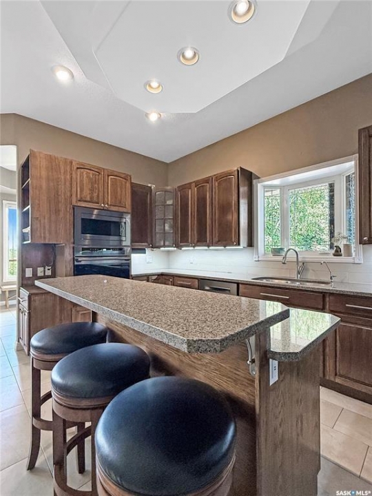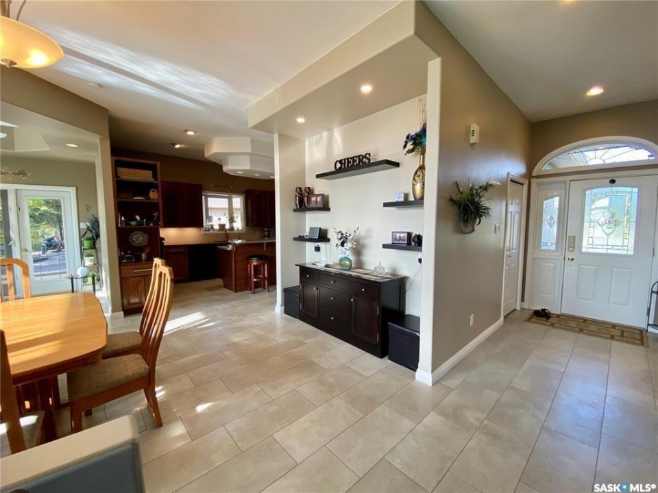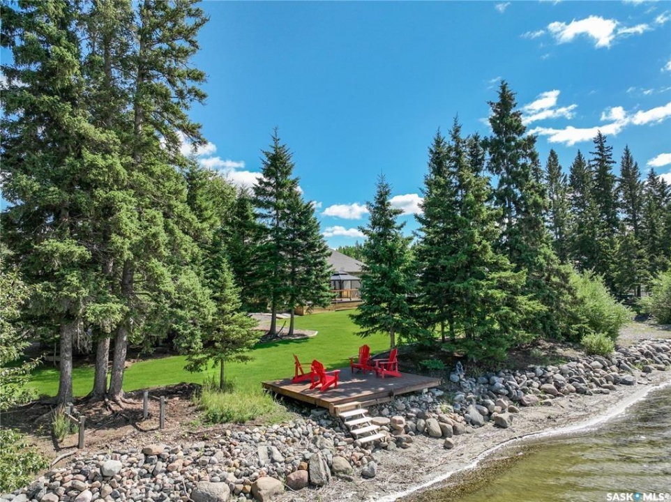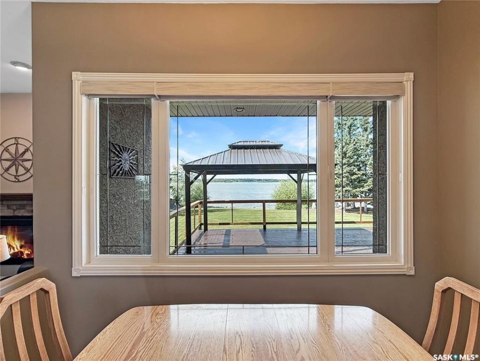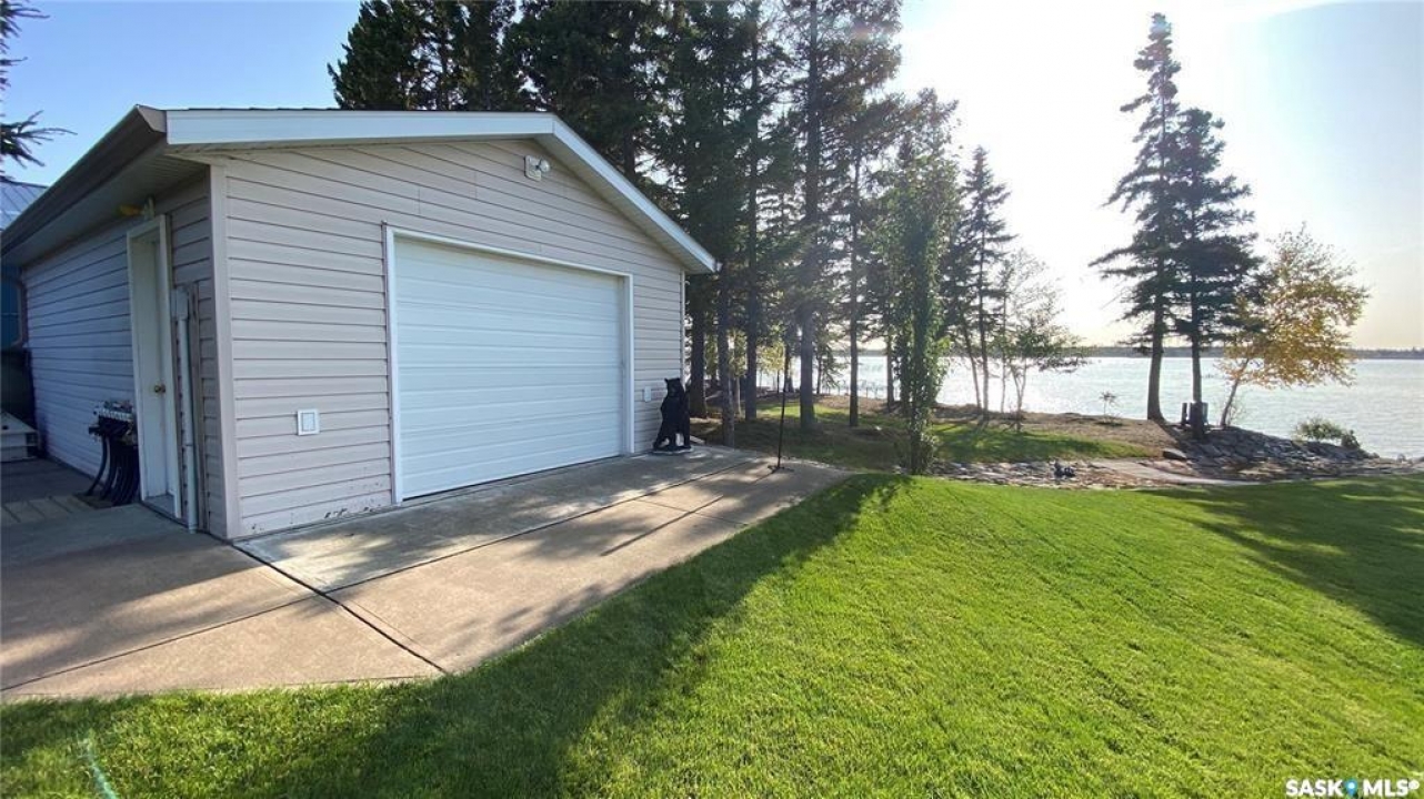 A spectacular 2455sqft bungalow featuring 4 bedrooms, 3 bathrooms, and a 5-car garage, perfectly positioned on pristine 1.08-acre waterfront lot overlooking the serene beauty of Torch Lake. This meticulously maintained home reflects exceptional craftsmanship and attention to every detail. The open-concept layout, soaring 10' ceilings, and abundant natural light create a warm, inviting atmosphere. A spacious foyer leads to a cozy living room with natural gas fireplace and a stylish dining area-both enjoying stunning water views. The gourmet kitchen features custom cabinets, quartz countertops, a large island with induction cooktop, built-in dishwasher, and walk-in pantry. The elegant sunroom, wrapped in windows, offers panoramic lake views and opens to an oversized deck-partially covered, ideal for a screened room or hot tub. The primary suite features a 3-piece ensuite and walk-in closet. Also on the main level is a spacious family room with soaring 12' ceilings, a large fourth bedroom, a second 3-piece bathroom, a versatile freezer room/office space, and a laundry room complete with sink. The heated 5 car garage/shop is a dream workspace-fully equipped with custom shelving, built-in tool chest, air compressor, and EV charging outlets, ready for any project or passion. It offers 1,884 sq. ft. of space, including a 50'x30' main garage with three 9' doors, plus a 16'x24' side shop with its own door. All finished with 12' metal-paneled ceilings. There's also a single detached garage by the water, ideal for extra storage and housing the automated sprinkler system. Additional highlights include a 4' crawl space for extra storage, a natural gas furnace and boiler combo, water softener, private well, septic system, new fencing, a dock platform, gravel U-shaped driveway, stamped concrete entryway, and a firepit with seating area. With 221' of west-facing shoreline, you own right to the water-perfect for sunsets and creating your own private lakeside oasis.