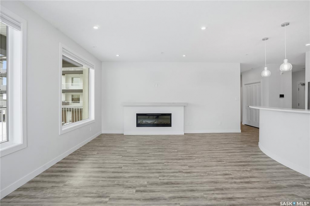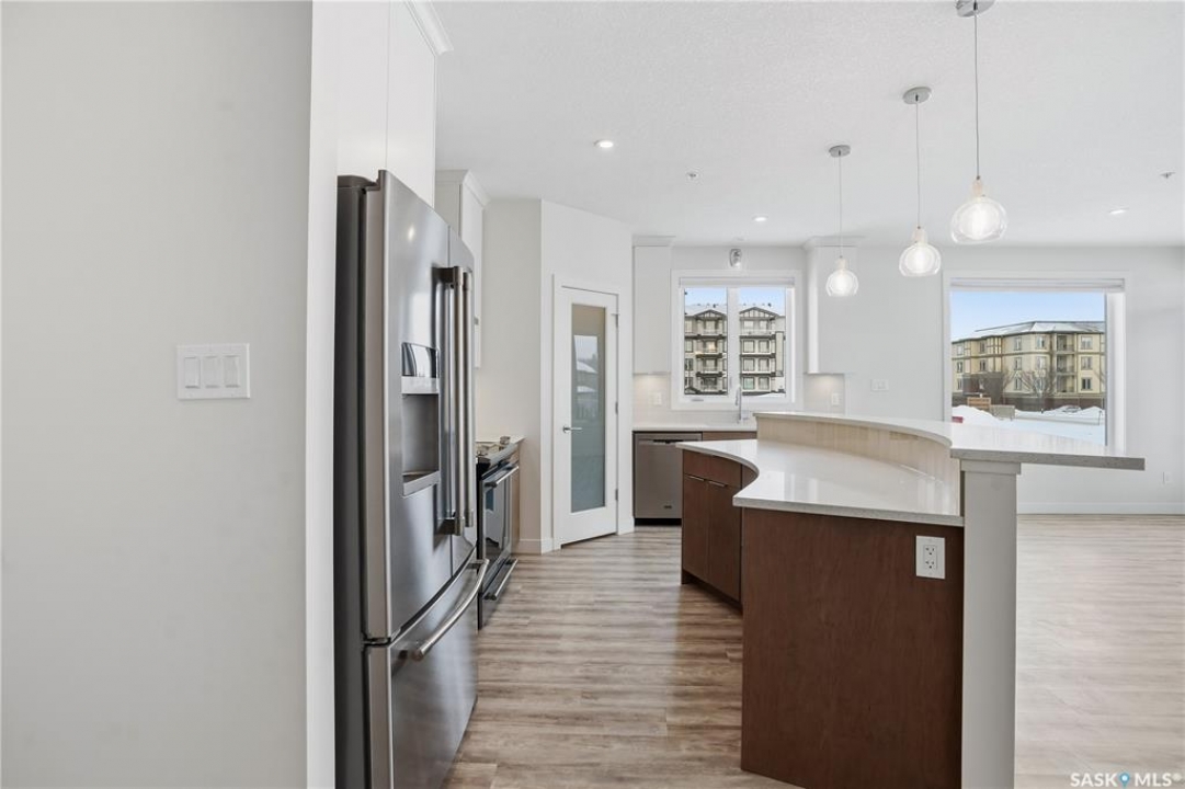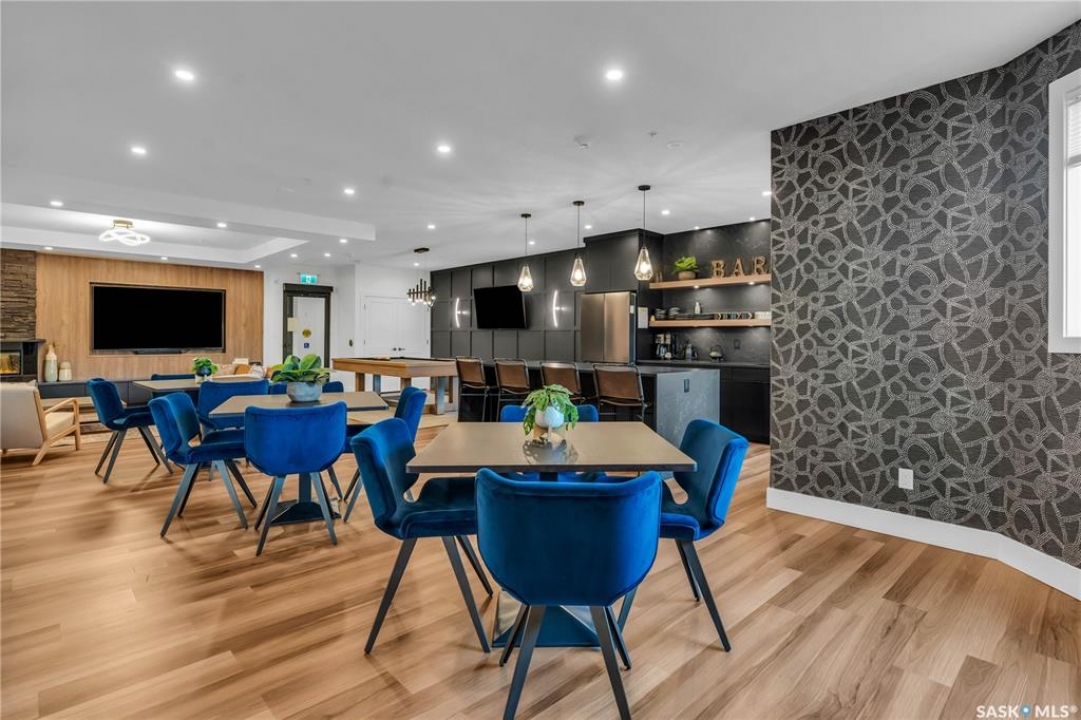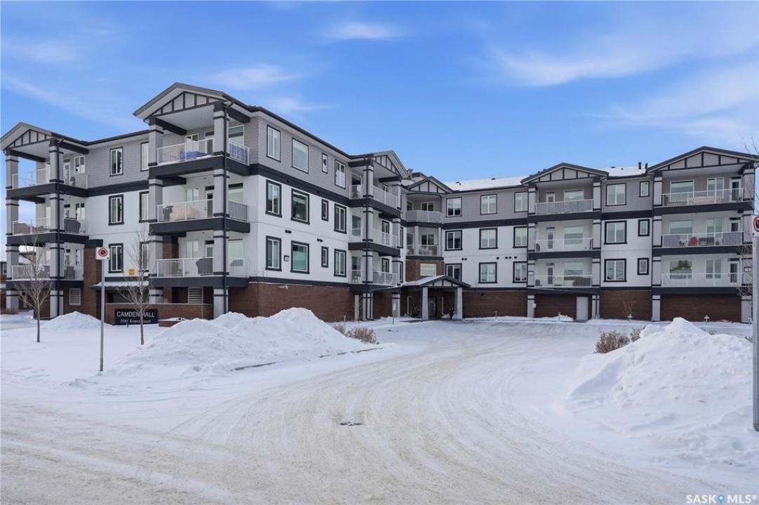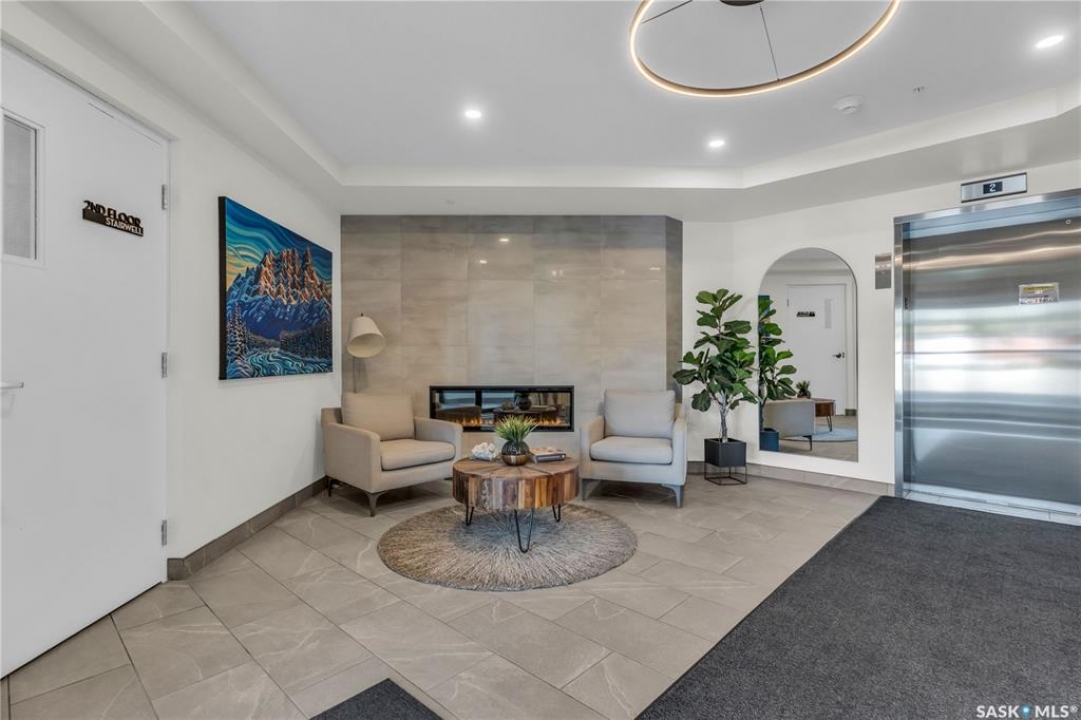 Where luxury meets convenience — welcome to Camden Hall, located in the prestigious Evans Court development just steps from Wascana Park. Offering a lifestyle designed for both young professionals and empty nesters, Camden Hall combines modern elegance with desirable amenities, including an owner's lounge, fitness facility, and heated underground parking. This next-to-new (completed in 2022) corner-unit condo spans 1,141 sq. ft. The inviting foyer leads to an open-concept living space featuring 9-foot ceilings, large windows, and a cozy fireplace — all accented by recessed pot lighting. An oversized, private, northeast-facing balcony with a natural gas BBQ hook-up extends the living area outdoors. The stunning kitchen boasts full-height cabinetry to the ceiling, two-tone finishes, under-cabinet lighting, quartz countertops, a tiled backsplash, stainless steel appliances, and a corner pantry complete with lighting, electrical, and a microwave. The primary suite offers a spacious walk-in closet with built-in shelving and a spa-inspired ensuite featuring dual sinks, quartz countertops, and a walk-in shower with a seat. The second bedroom provides ample closet space, while a full 4-pc main bath adds comfort and versatility. Additional highlights include elegant top-down, bottom-up window coverings, in-suite laundry, an on-demand water heater, hot water forced-air heating, an underground parking stall with locked storage, same-floor access to the owner's lounge (featuring TVs, a fireplace, a pool table, kitchen, and dining area), a private gym/fitness facility, and convenient garbage/recycling chutes. Camden Hall is known for its impeccable maintenance and prime location. Don't miss your chance to experience luxury living in this exceptional community — in one of Regina's most sought-after neighbourhoods. Contact your REALTOR � today to book your private showing.