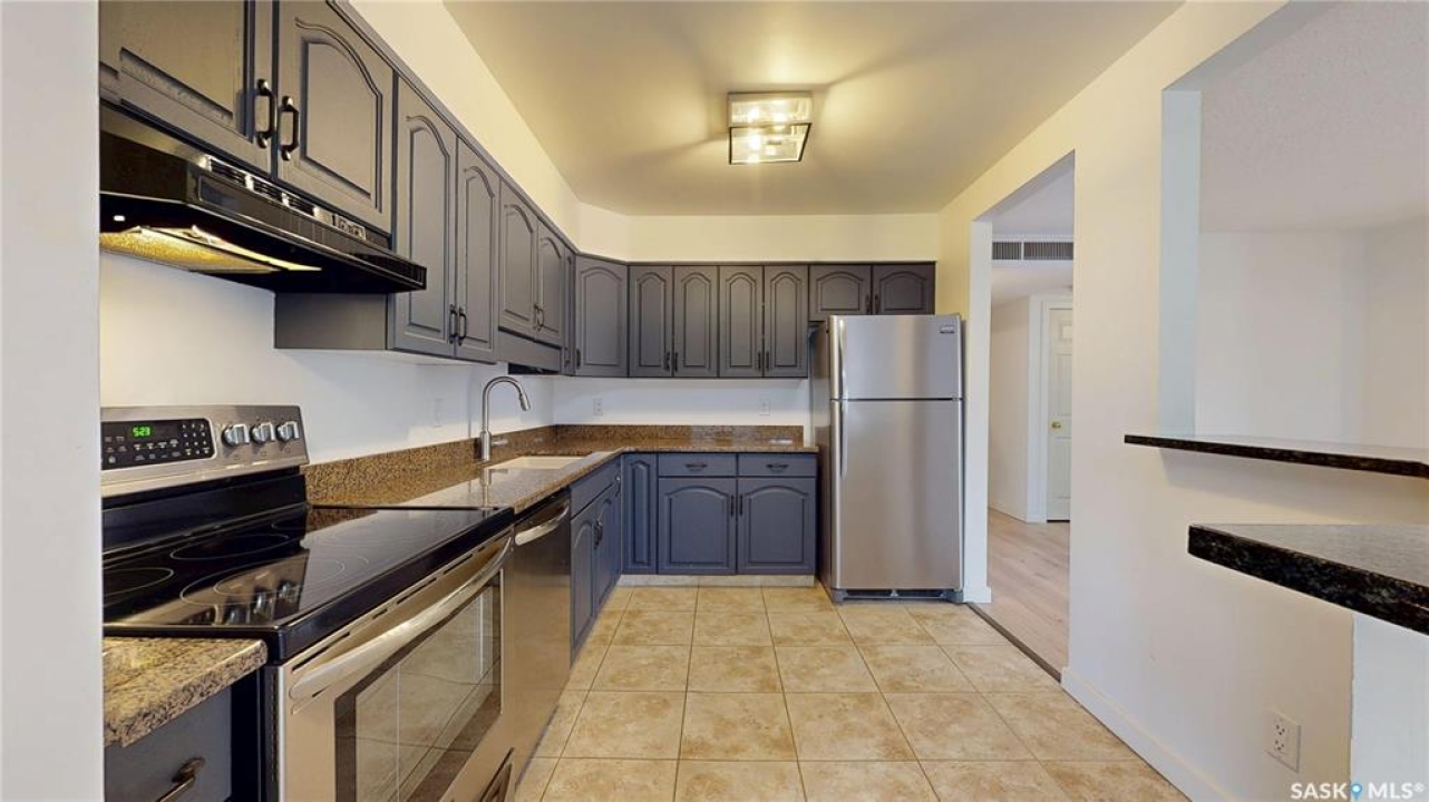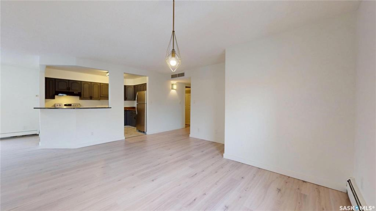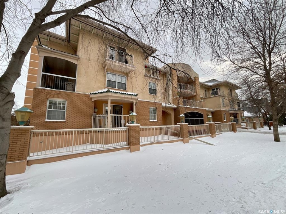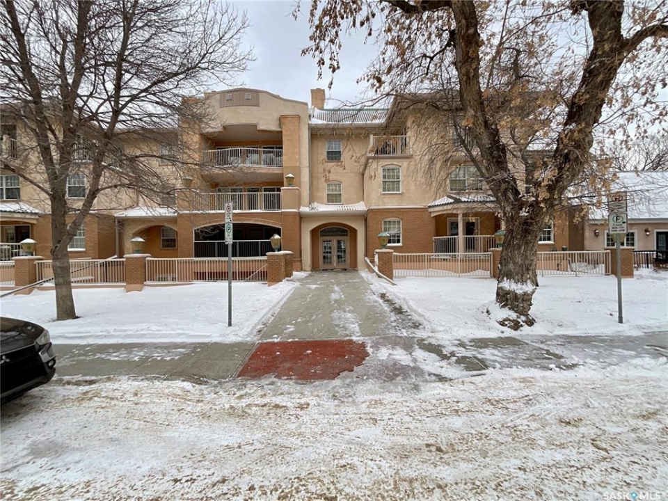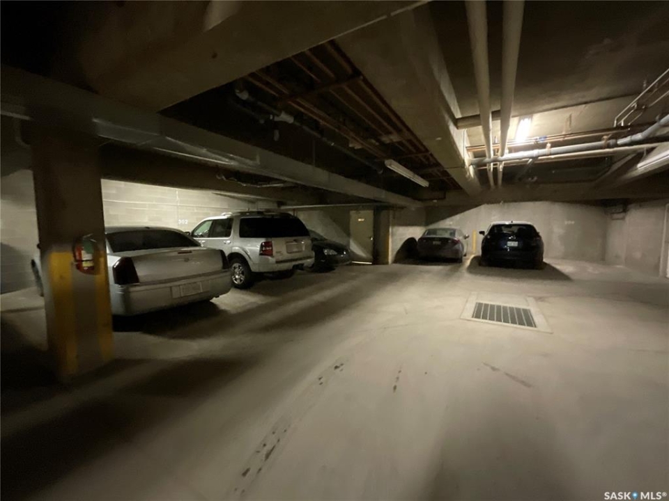 Welcome to your dream condo in the desirable Transition Area, ideally located in the heart of the city close to shopping (including unique boutiques), restaurants, groceries, and beautiful Wascana Park which has so much to offer. This top-floor, 1091 sq. ft., updated one-bedroom, two-bath home includes a secure heated underground parking stall for your convenience. Entering into to a spacious foyer there is plenty of room for all your belongings. The open layout flows effortlessly, perfect for entertaining or comfortable everyday living. The bright and welcoming living space features not one but two private balconies, bringing the outdoors in. The kitchen has been thoughtfully refreshed with a modern feel (includes fridge, stove, dishwasher, and hood fan), while the large primary bedroom offers dual closets and an updated 3-piece ensuite. The main bathroom has also been tastefully updated. Finishing this home is a separate laundry room with extra storage space. This is a beautifully maintained complex where pride of ownership shows in the hallways, exercise area, and social amenities room. Condo fees include heat and water — a excellent value in a fantastic location. This is a great home at a great price — come see this gorgeous condo today!