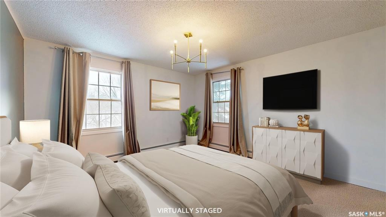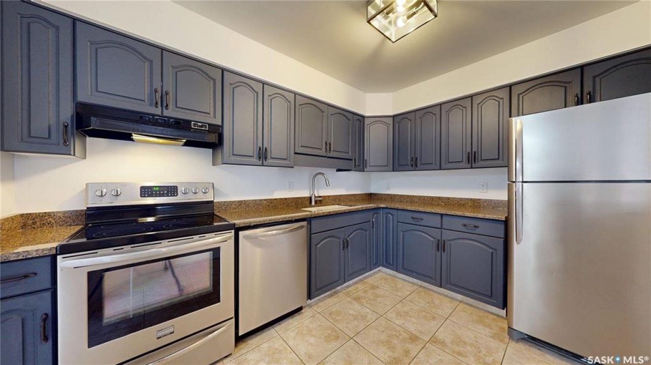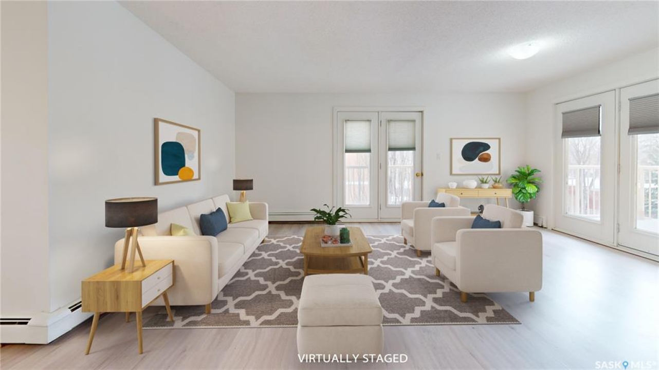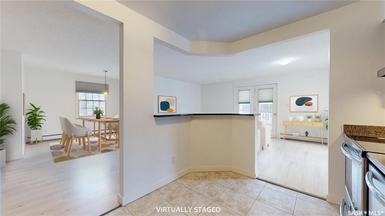 Welcome to your dream condo in the desirable Transition Area, ideally located in the heart of the city close to shopping (including unique boutiques), restaurants, groceries, and beautiful Wascana Park which has so much to offer. This top-floor, 1091 sq. ft., updated one-bedroom, two-bath home includes a secure heated underground parking stall for your convenience. Entering into to a spacious foyer there is plenty of room for all your belongings. The open layout flows effortlessly, perfect for entertaining or comfortable everyday living. The bright and welcoming living space features not one but two private balconies, bringing the outdoors in. The kitchen has been thoughtfully refreshed with a modern feel (includes fridge, stove, dishwasher, and hood fan), while the large primary bedroom offers dual closets and an updated 3-piece ensuite. The main bathroom has also been tastefully updated. Finishing this home is a separate laundry room with extra storage space. This is a beautifully maintained complex where pride of ownership shows in the hallways, exercise area, and social amenities room. Condo fees include heat and water — a excellent value in a fantastic location. This is a great home at a great price — come see this gorgeous condo today!