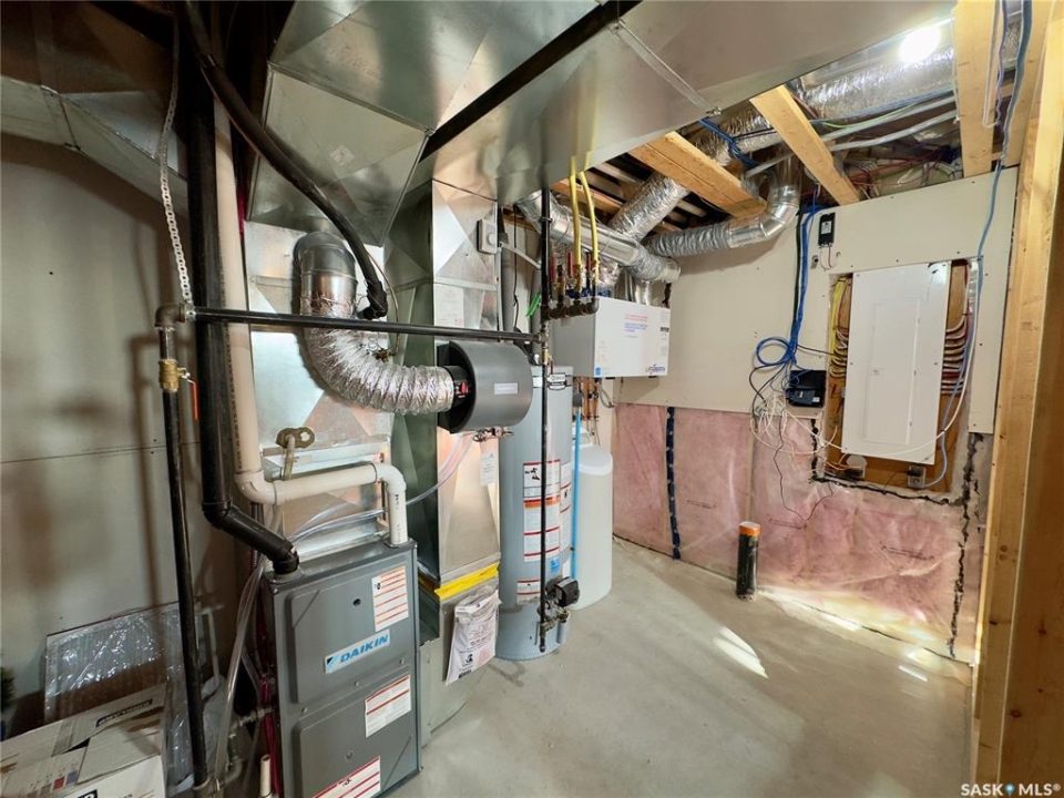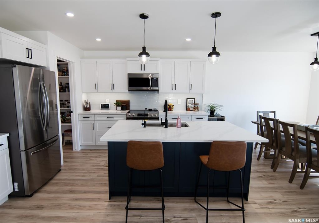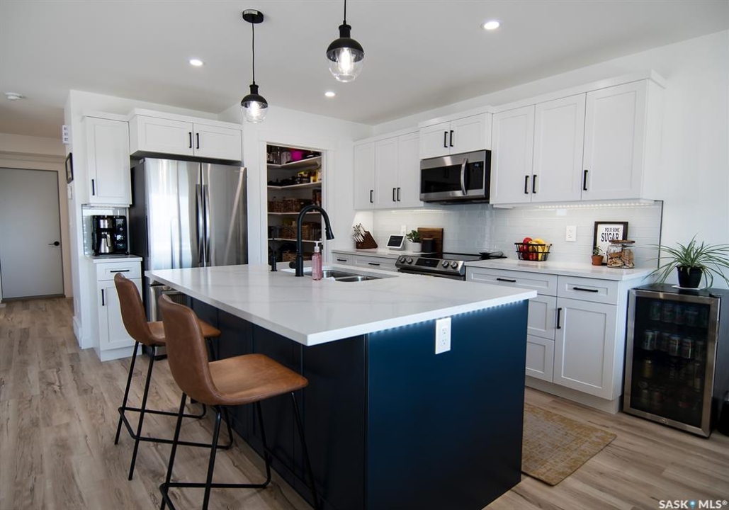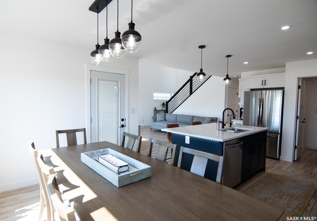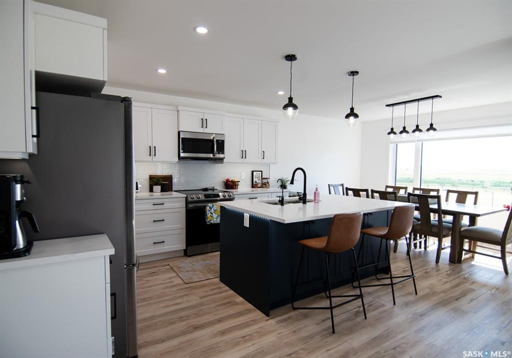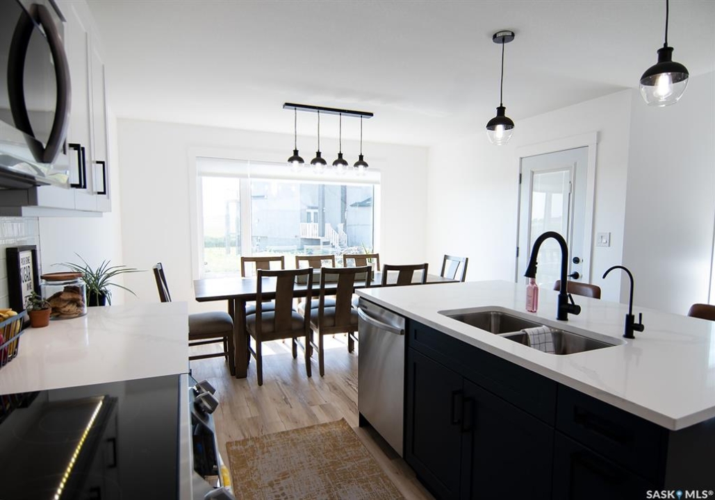 Welcome to this stunning 2-storey custom built home located in the desirable neighbourhood of the Greens on Gardiner! With only one owner and built on piles, this home features a functional layout with modern aesthetic finishes. As you enter the home you are greeted with 17' high ceilings and large windows allowing ample daylight in. The open concept layout makes it perfect for hosting and entertaining family and friends. Making your way through the spacious living room, you will find a kitchen full of stainless steel appliances, two-tone cabinetry with plenty of cabinets, modern backsplash and a walk through pantry for some additional storage. Off the kitchen you have a large size dining area with a door that leads to your spacious 16'x10' deck that has a privacy fence and natural gas hookup. Making your way up the second level you will find three bedrooms and two full bathrooms. The primary bedroom features a nice size walk-through closet to the primary en-suite which offers custom tile work in the shower, and a large vanity with a getting ready seating area. Not far down the hall you also have two very nice sized bedrooms with large windows in each. Some other nice features this home has includes a high-efficiency furnace, water softener, reverse osmosis system, xeriscaped front yard, fully insulated garage, rough in gas hookup and electrical for a future garage heater, triple pane low-e windows throughout, roughed-in plumbing in the basement with the bathroom and a bedroom framed and roughed in electrical in the basement. This home blends comfort and convenience while being in close proximity to schools and all the amenities the Greens has to offer!