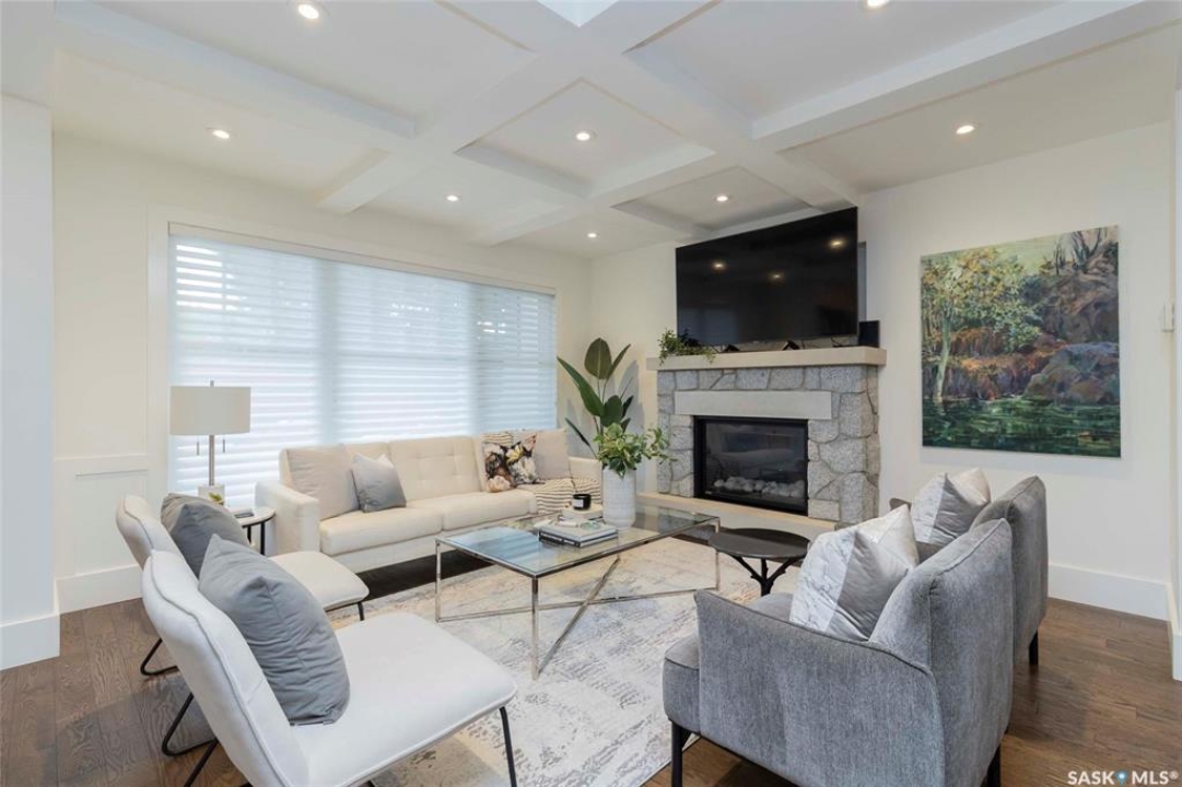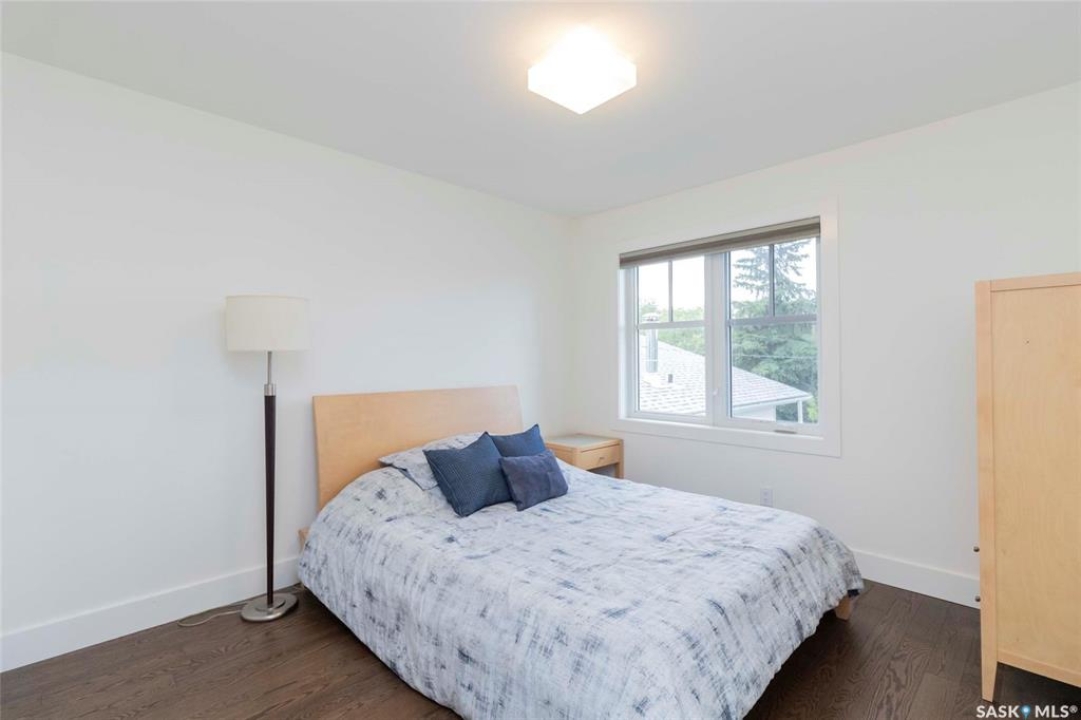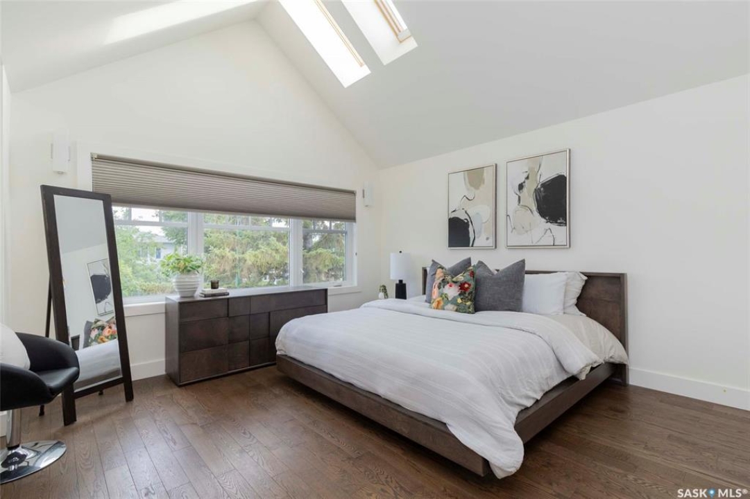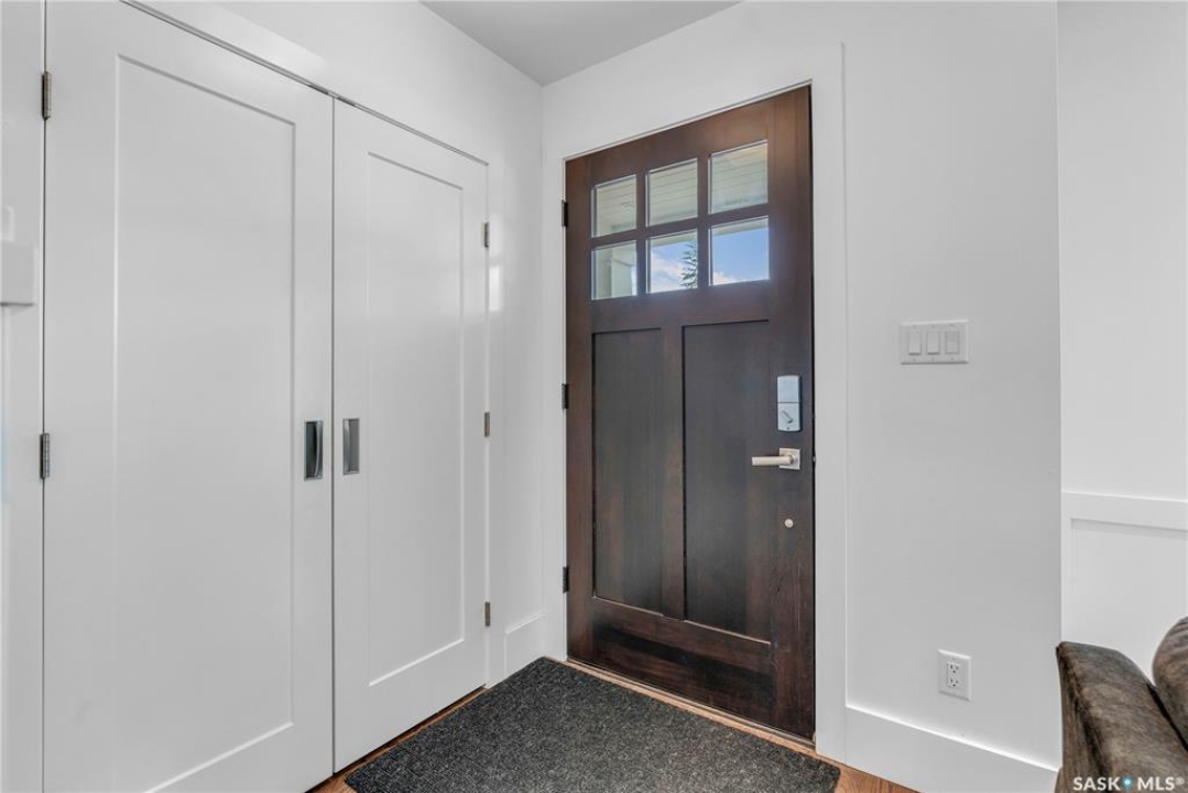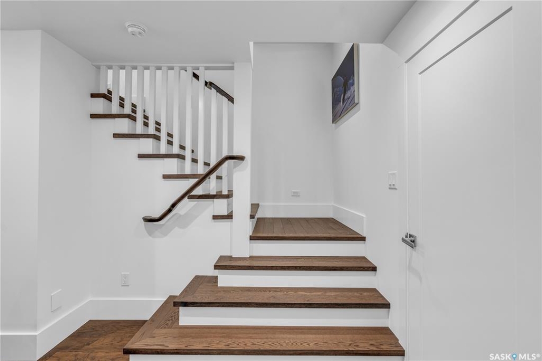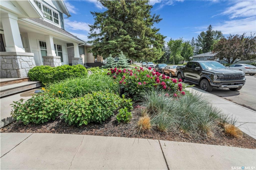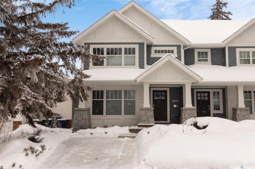 Welcome to 1315A 11th St E, a thoughtfully designed Craftsman-style home that blends timeless elegance with modern energy efficiency. This home is built with high quality finishes, and you can see it in the details. The main floor boasts a chef's kitchen with custom cabinetry, a large island topped with 2" bluestone, and premium appliances including a gas range, and Miele speed and steam ovens. The bright living room features coffered ceilings, a gas fireplace with masonry surround, and large south-facing windows. Upstairs, the primary suite includes vaulted ceilings, skylights, and a spa-inspired ensuite with a walk-in tile shower. The bathrooms feature floating bluestone vanities, with a jet tub in the main bath. The spacious secondary bedrooms offer ample storage with built-in shelving and in-closet lighting. The basement is filled with natural light thanks to oversized windows and timber-framed window wells, and includes a home office, family room, and generous storage. Oriented to maximize passive solar gain, the home features natural materials, radiant in-floor heating on all levels, dual insulation (spray foam and reflective), and an offset stud wall system to eliminate thermal bridging. The professionally landscaped yard is finished with bluestone tile, LED lighting, and low-maintenance micro-drip irrigation. A heated, insulated double garage provides space for two vehicles, plus an additional driveway in front and parking behind the garage. A rare blend of beauty, efficiency, and craftsmanship in a prime location!