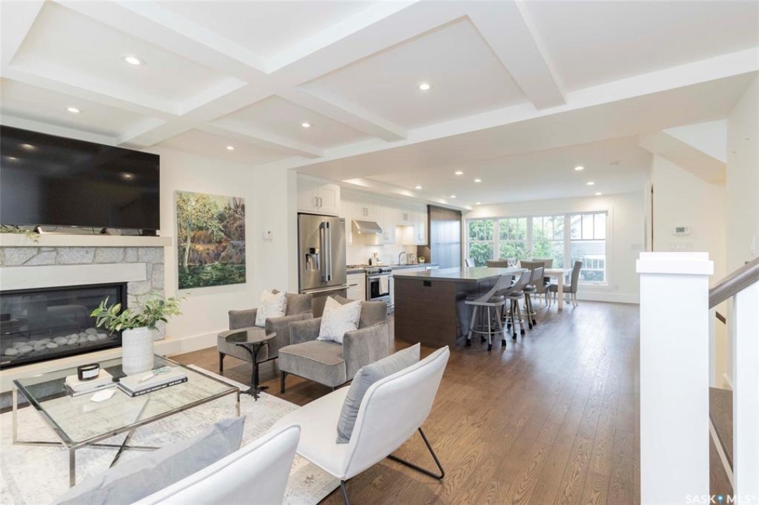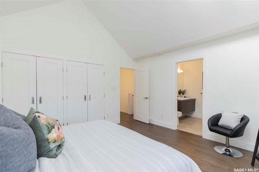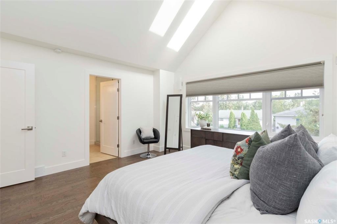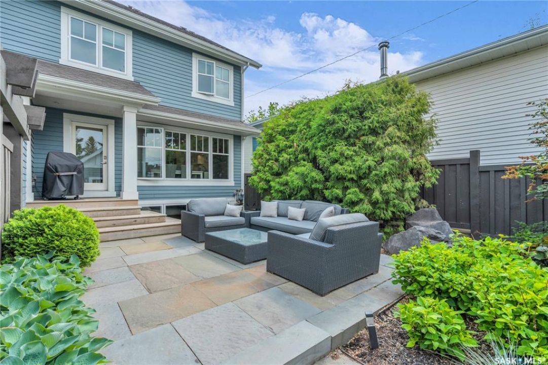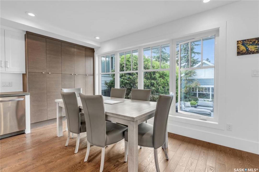 Welcome to 1315A 11th St E, a thoughtfully designed Craftsman-style home that blends timeless elegance with modern energy efficiency. This home is built with high quality finishes, and you can see it in the details. The main floor boasts a chef's kitchen with custom cabinetry, a large island topped with 2" bluestone, and premium appliances including a gas range, and Miele speed and steam ovens. The bright living room features coffered ceilings, a gas fireplace with masonry surround, and large south-facing windows. Upstairs, the primary suite includes vaulted ceilings, skylights, and a spa-inspired ensuite with a walk-in tile shower. The bathrooms feature floating bluestone vanities, with a jet tub in the main bath. The spacious secondary bedrooms offer ample storage with built-in shelving and in-closet lighting. The basement is filled with natural light thanks to oversized windows and timber-framed window wells, and includes a home office, family room, and generous storage. Oriented to maximize passive solar gain, the home features natural materials, radiant in-floor heating on all levels, dual insulation (spray foam and reflective), and an offset stud wall system to eliminate thermal bridging. The professionally landscaped yard is finished with bluestone tile, LED lighting, and low-maintenance micro-drip irrigation. A heated, insulated double garage provides space for two vehicles, plus an additional driveway in front and parking behind the garage. A rare blend of beauty, efficiency, and craftsmanship in a prime location!