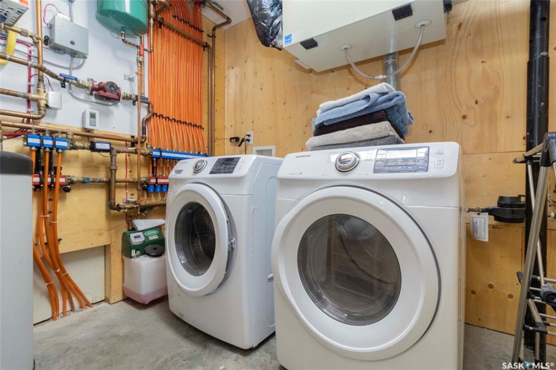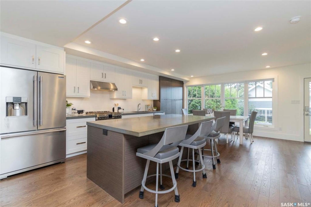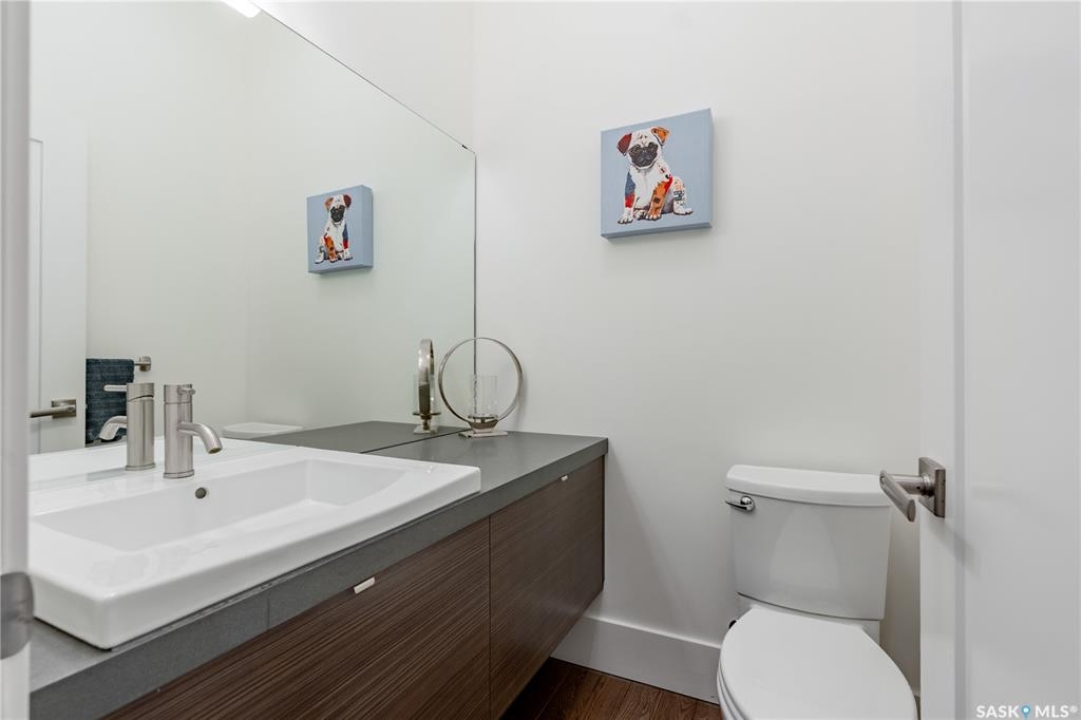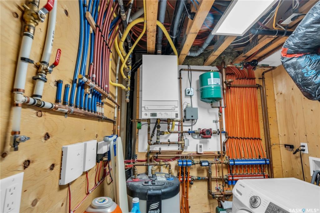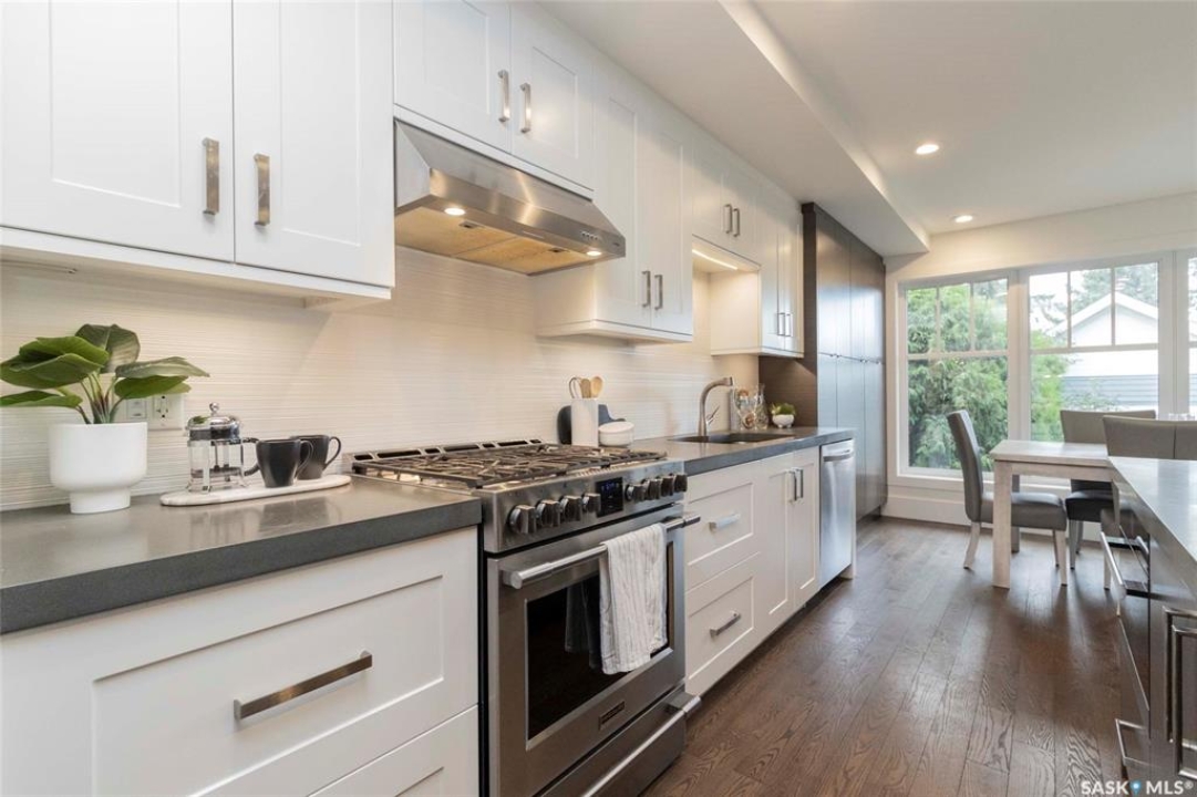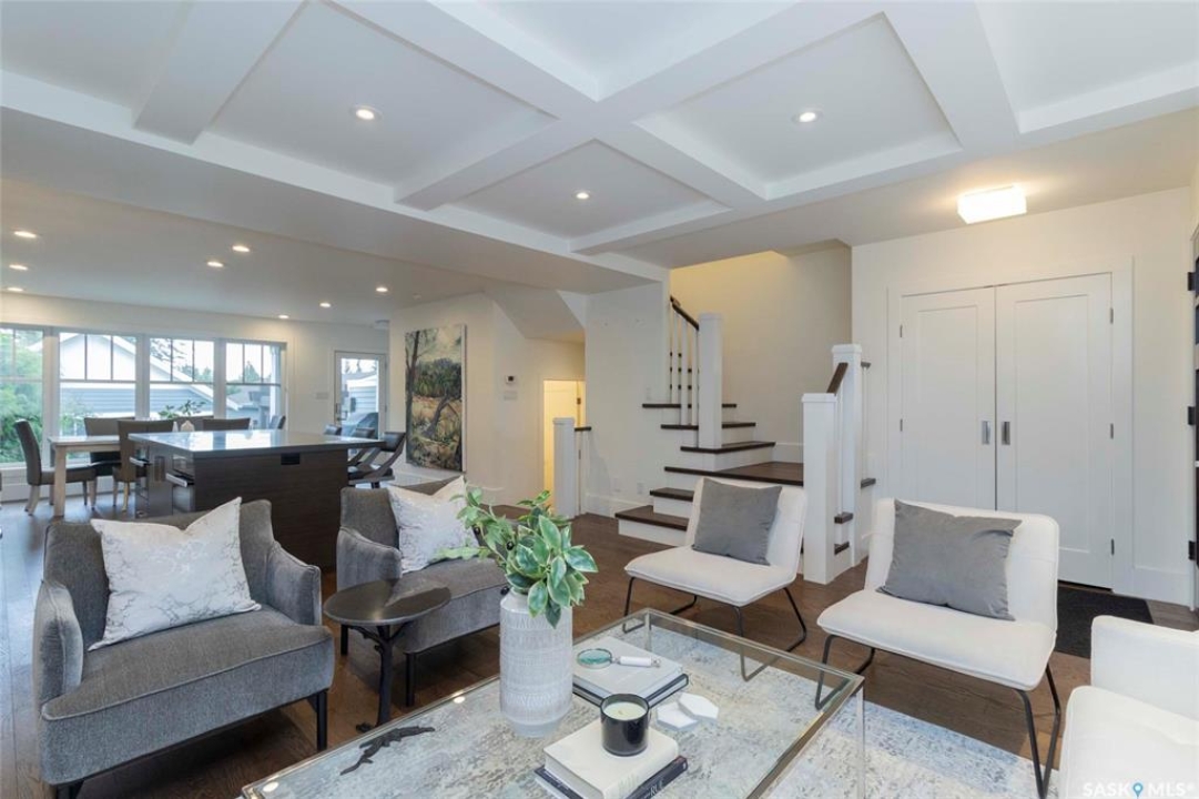 Welcome to 1315A 11th St E, a thoughtfully designed Craftsman-style home that blends timeless elegance with modern energy efficiency. This home is built with high quality finishes, and you can see it in the details. The main floor boasts a chef's kitchen with custom cabinetry, a large island topped with 2" bluestone, and premium appliances including a gas range, and Miele speed and steam ovens. The bright living room features coffered ceilings, a gas fireplace with masonry surround, and large south-facing windows. Upstairs, the primary suite includes vaulted ceilings, skylights, and a spa-inspired ensuite with a walk-in tile shower. The bathrooms feature floating bluestone vanities, with a jet tub in the main bath. The spacious secondary bedrooms offer ample storage with built-in shelving and in-closet lighting. The basement is filled with natural light thanks to oversized windows and timber-framed window wells, and includes a home office, family room, and generous storage. Oriented to maximize passive solar gain, the home features natural materials, radiant in-floor heating on all levels, dual insulation (spray foam and reflective), and an offset stud wall system to eliminate thermal bridging. The professionally landscaped yard is finished with bluestone tile, LED lighting, and low-maintenance micro-drip irrigation. A heated, insulated double garage provides space for two vehicles, plus an additional driveway in front and parking behind the garage. A rare blend of beauty, efficiency, and craftsmanship in a prime location!