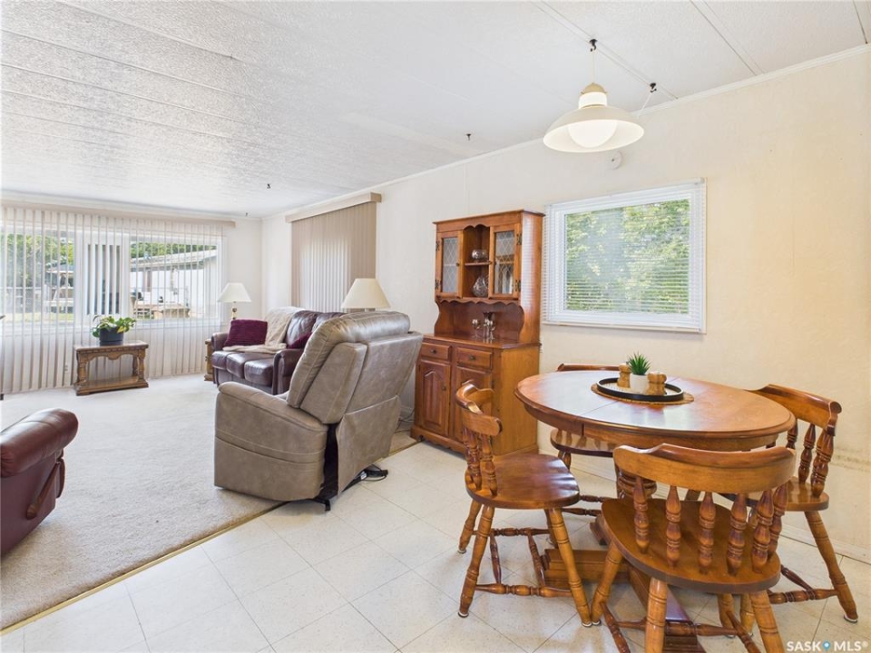 Welcome to this beautifully maintained 2-bedroom, 1-bath mobile home in Eastview Trailer Park! Bright, clean, and move-in ready, this home offers an affordable opportunity to step into homeownership or downsize in comfort. With a spacious layout, great natural light, a well-cared-for interior, and a carport, this property is perfect for someone looking for low-maintenance living in a quiet community. Quick possession is available and it comes with most of the furniture pictured. Literally turn the key, move in and make it your own! Contact your favourite realtor to book a showing now!