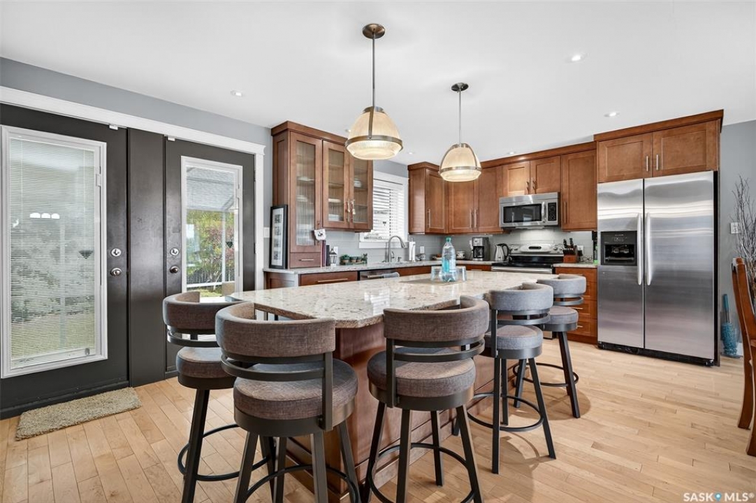 One Owner, Custom Built 5-level split offering an impressive 1,957 sq ft of thoughtfully designed living space. Located in the highly sought-after Sunningdale area, this home showcases craftsmanship and foresight well beyond its year built. As you enter the main level features an open-concept design that seamlessly blends functionality and style. A spacious living room with large windows fills the space with natural light and creates a warm, welcoming atmosphere. The generous dining area flows effortlessly into the renovated kitchen, which is a true highlight — complete with stone countertops, stainless steel appliances, an eat-in island, abundant cabinetry, and an area that could be a coffee bar. Perfect for both everyday living and entertaining. Upstairs is a rare find….4 bedrooms all on one level. There are three bedrooms, a 4pc main bathroom and a spacious primary bedroom with a 3-piece ensuite and a large walk-in closet. As you walk into the 3rd level you enter a warm, inviting family room featuring a cozy wood-burning fireplace, with convenient access to the double attached garage with radiant heat, laundry area, 3pc bathroom and the access to the fully fenced backyard — ideal for gatherings and outdoor enjoyment. The next level offers a generous games or recreation room, providing endless possibilities for a home gym, playroom, or entertainment area. On the fifth and final level, you'll find a large versatile room with plenty of storage space, the utility area, and potential for relocating the laundry if desired. Outside, enjoy a beautifully landscaped and fully fenced yard complete with underground sprinklers, 2 sheds and a screened-in three-season deck with composite decking (which also has access off the kitchen), perfect for relaxing or entertaining while staying sheltered from the elements. This property perfectly blends quality construction, tasteful updates, and a functional multi-level layout.