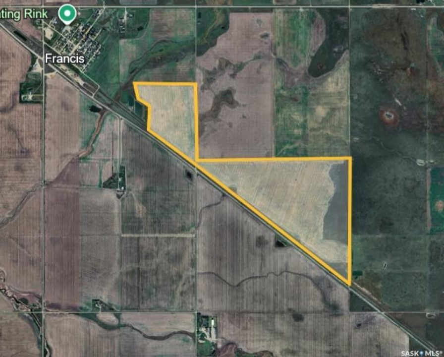 This is an excellent package of grain land located directly SE of Francis on the north side of the highway. Flat, clay land with no stones. This is a perfect opportunity to add some high quality grain land to your portfolio. The land is ready for the new owner to farm in 2026.
