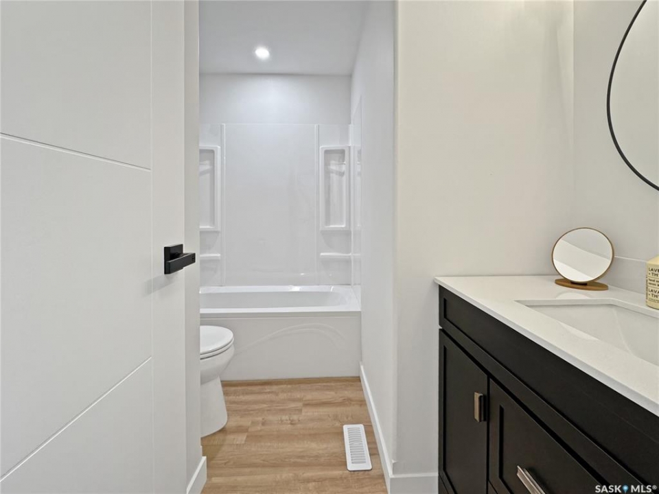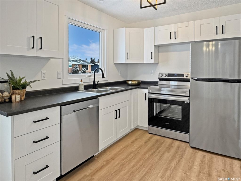 This beautifully updated 4-bedroom, 2-bathroom home offers extensive renovations and a true move-in-ready experience. The main floor welcomes you with a bright, spacious living room highlighted by a large window that fills the space with natural light. The entire main level has been refreshed with new paint, trim, baseboards, flooring, doors, and updated windows, creating a modern and cohesive feel throughout. Three bedrooms are located on the main level, along with a renovated four-piece family bathroom. The brand-new kitchen is both functional and stylish, featuring ample cabinetry, a built-in dishwasher, pantry storage, and a dedicated coffee bar. Added convenience comes with main-floor laundry and additional built-in cupboard space. The lower level has also been updated and includes fresh paint, new baseboards, carpet, a renovated three-piece bathroom, and an additional bedroom—perfect for guests, teens, or a home office. Outside, you'll find a large, fully fenced backyard ideal for kids, pets, or entertaining. Central air conditioning adds year-round comfort. Most renovations were completed in 2025, including exterior paint, basement windows, new flooring throughout, kitchen upgrades, light fixtures, fresh paint, new dishwasher, shingles, and more. This is a fantastic opportunity to own a thoroughly updated home—schedule your private showing today.