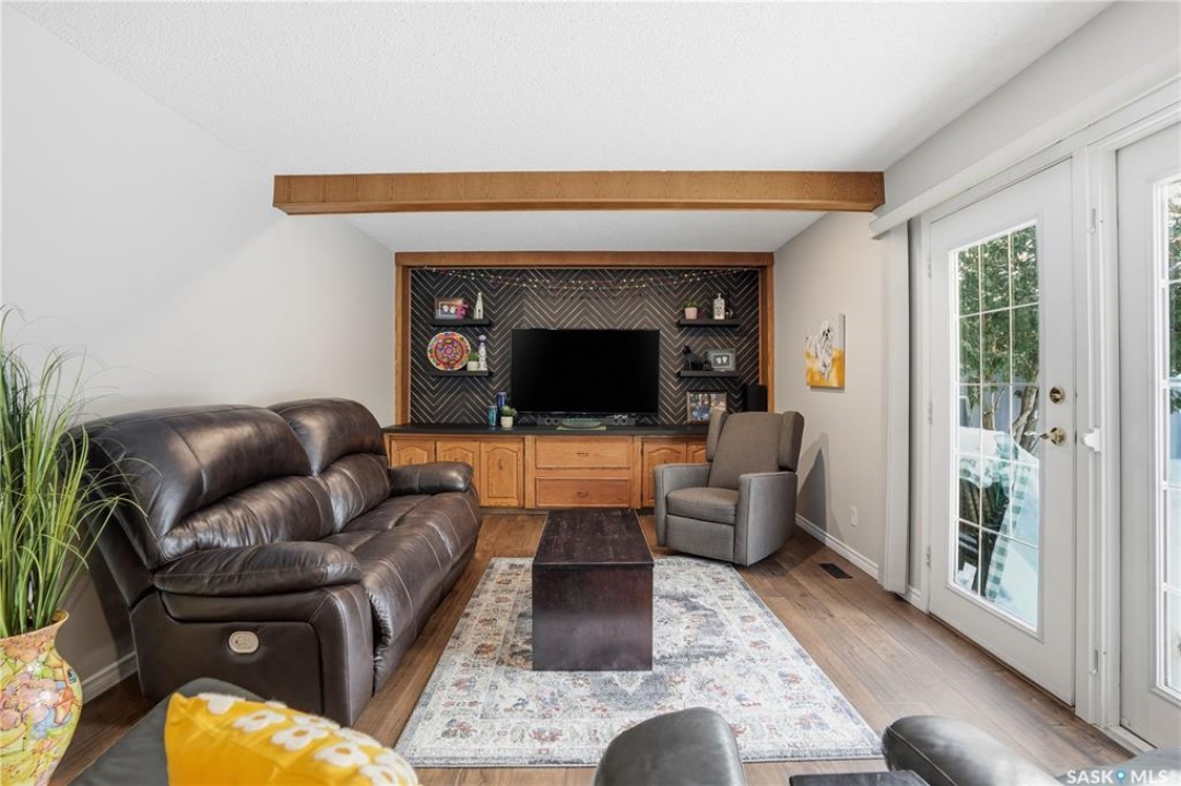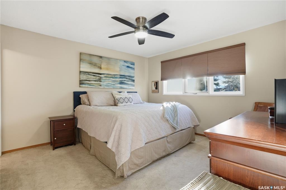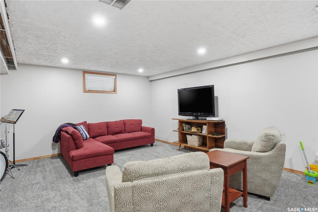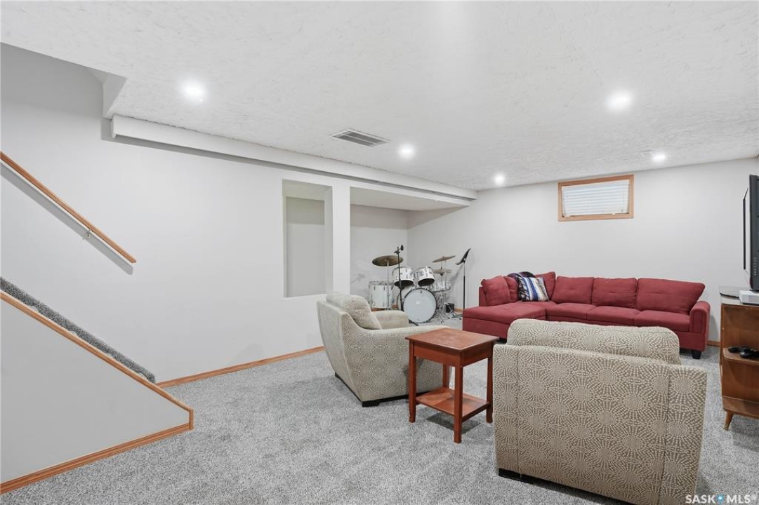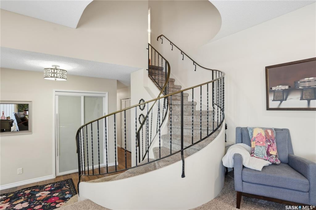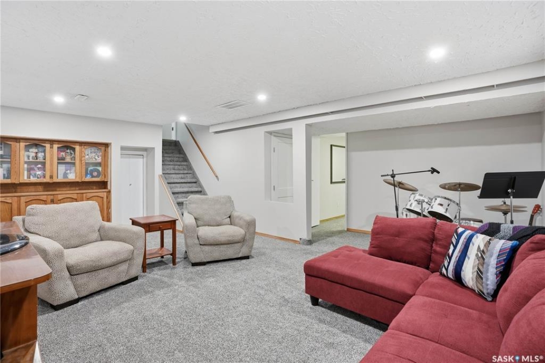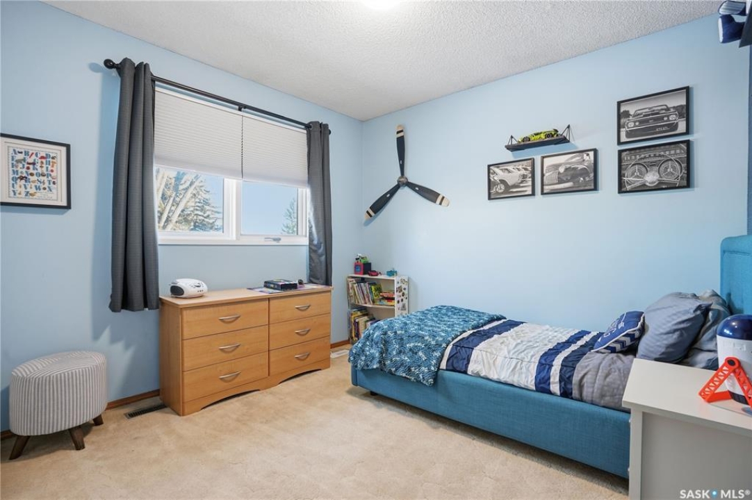 Perfectly located in Regina's sought-after Albert Park neighbourhood, this exceptional family home is within walking distance to elementary schools and directly across the street from the South Leisure Centre, spray park, and Optimist skating rink—a dream location for active families. This 1,913 sq. ft. two-storey split offers 4 bedrooms, 3 bathrooms, and a double attached garage, with all four bedrooms conveniently located on the second level. The inviting main floor features a spacious entryway and a large formal living room highlighted by a stunning feature wall. The beautifully renovated kitchen showcases new cabinetry, granite countertops, and a tiled backsplash, with a window overlooking the backyard and outdoor pool. Adjacent to the kitchen, the dining room stands out with elegant wainscoting, playful wallpaper, and a striking light fixture—perfect for entertaining. The cozy family room includes a built-in entertainment centre and patio doors leading to the backyard oasis. Completing the main floor are a 2-piece bathroom, laundry area, and direct access to the garage. A striking curved staircase leads upstairs to four generously sized bedrooms and a 4-piece bathroom. The primary bedroom offers a walk-in closet and private 2-piece ensuite. The basement provides additional living space with a recreation room and den, currently used as a home gym. Notable upgrades include two high-efficiency furnaces, on-demand water heater, underground sprinklers, and a new boiler system for the heated outdoor pool. The fully fenced backyard is designed for summer enjoyment, featuring an additional pool fence, patio area, and bar—your own private retreat. This is the perfect place to call home for families looking for space, comfort, and an unbeatable location.
