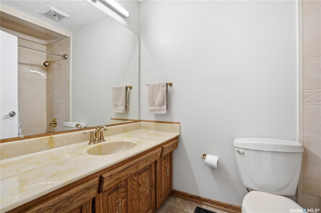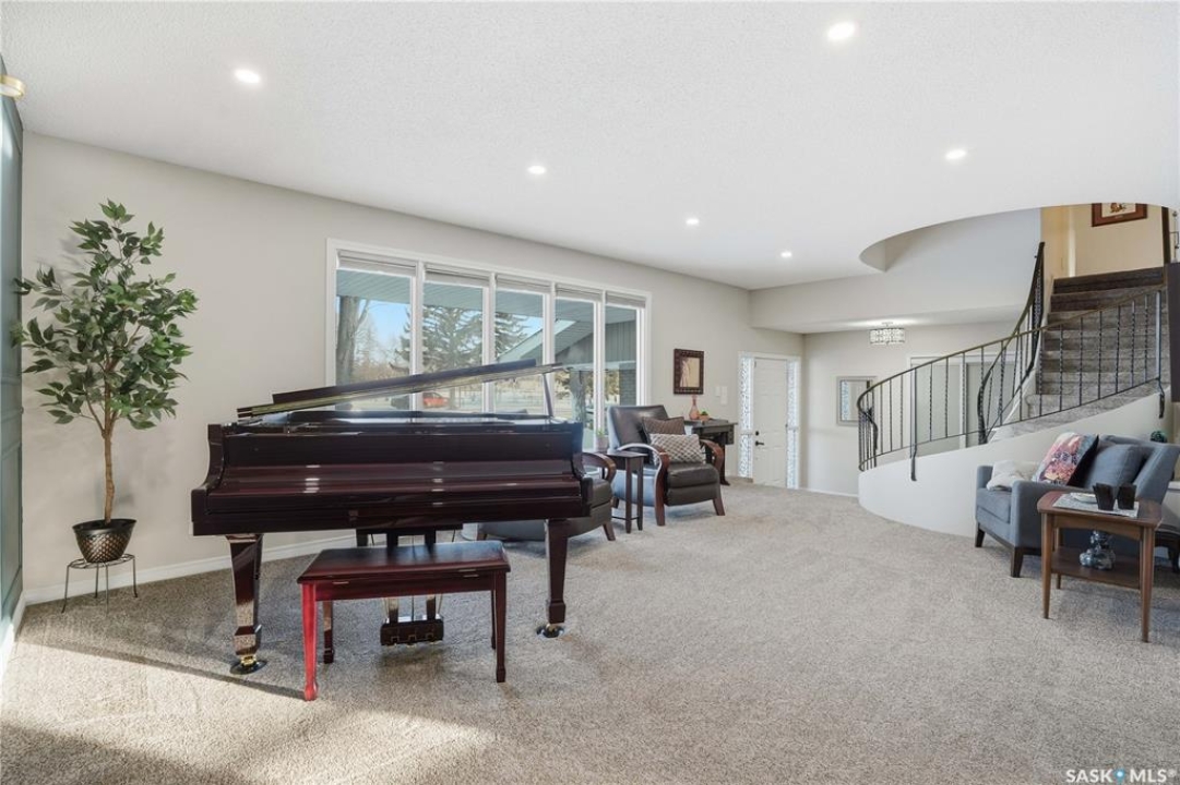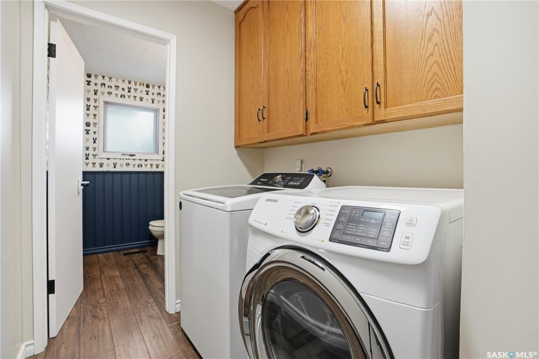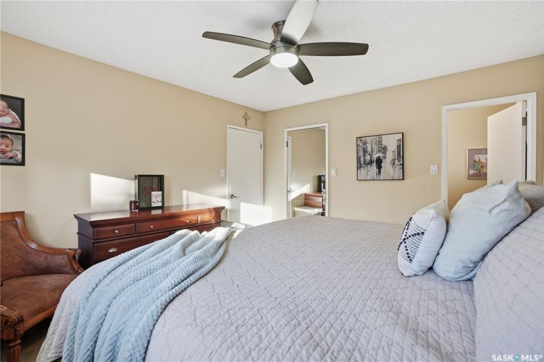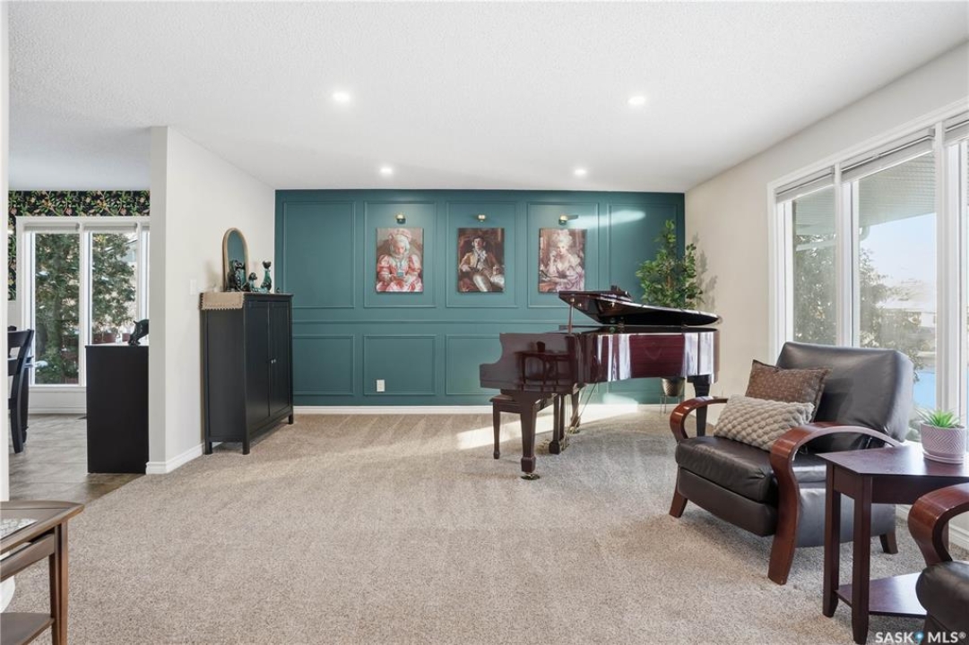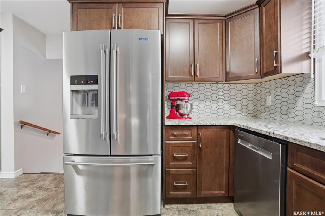 Perfectly located in Regina's sought-after Albert Park neighbourhood, this exceptional family home is within walking distance to elementary schools and directly across the street from the South Leisure Centre, spray park, and Optimist skating rink—a dream location for active families. This 1,913 sq. ft. two-storey split offers 4 bedrooms, 3 bathrooms, and a double attached garage, with all four bedrooms conveniently located on the second level. The inviting main floor features a spacious entryway and a large formal living room highlighted by a stunning feature wall. The beautifully renovated kitchen showcases new cabinetry, granite countertops, and a tiled backsplash, with a window overlooking the backyard and outdoor pool. Adjacent to the kitchen, the dining room stands out with elegant wainscoting, playful wallpaper, and a striking light fixture—perfect for entertaining. The cozy family room includes a built-in entertainment centre and patio doors leading to the backyard oasis. Completing the main floor are a 2-piece bathroom, laundry area, and direct access to the garage. A striking curved staircase leads upstairs to four generously sized bedrooms and a 4-piece bathroom. The primary bedroom offers a walk-in closet and private 2-piece ensuite. The basement provides additional living space with a recreation room and den, currently used as a home gym. Notable upgrades include two high-efficiency furnaces, on-demand water heater, underground sprinklers, and a new boiler system for the heated outdoor pool. The fully fenced backyard is designed for summer enjoyment, featuring an additional pool fence, patio area, and bar—your own private retreat. This is the perfect place to call home for families looking for space, comfort, and an unbeatable location.